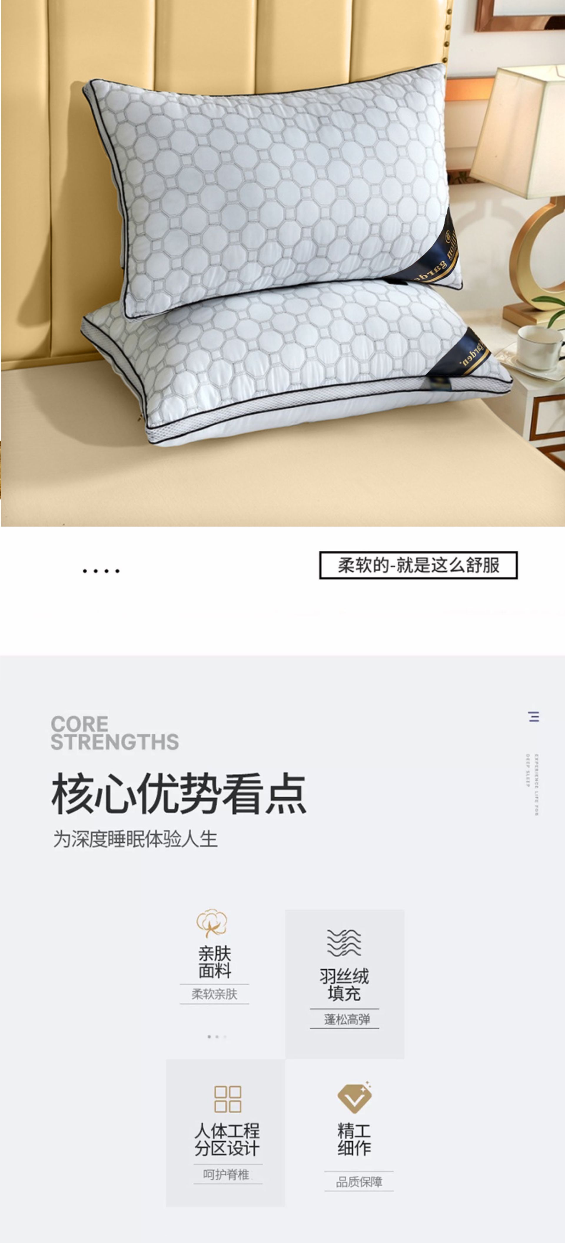 별 등급 가정용 베개 코어 전체 헤드 베개 싱글 깃털 벨벳 호텔 깃털 벨벳 성인 높은 탄성 베개 48x74cm스토어 가기