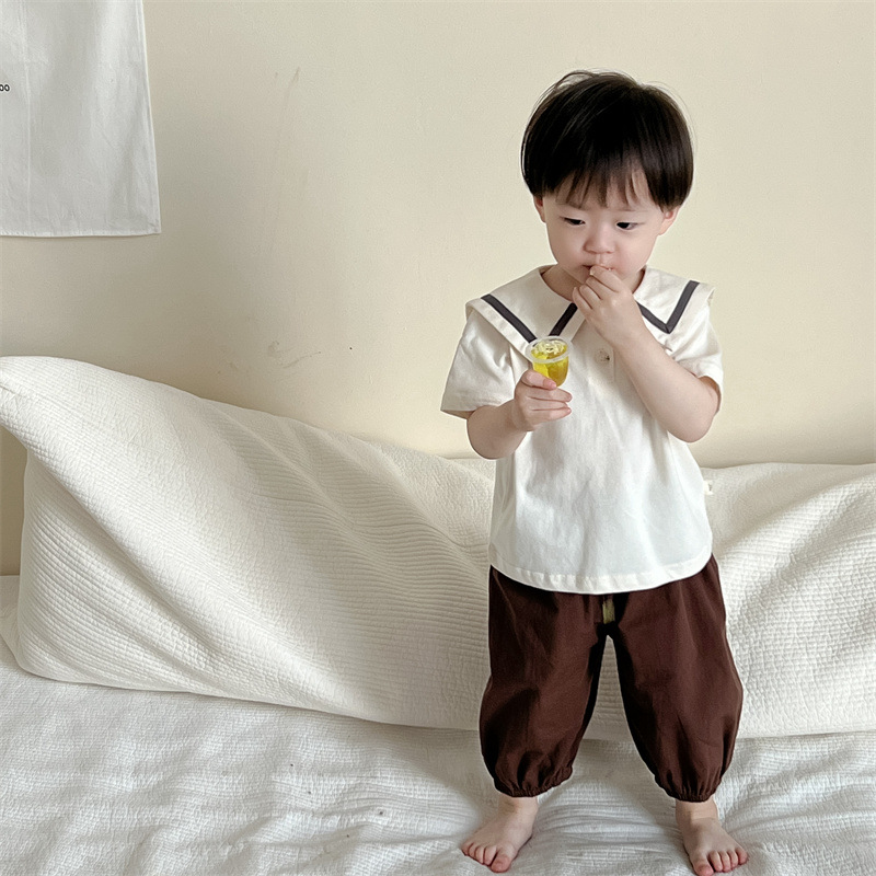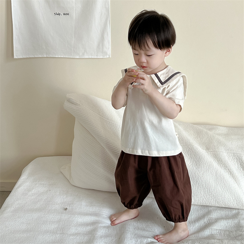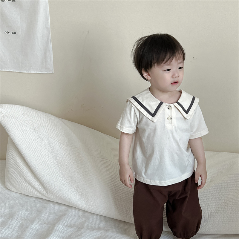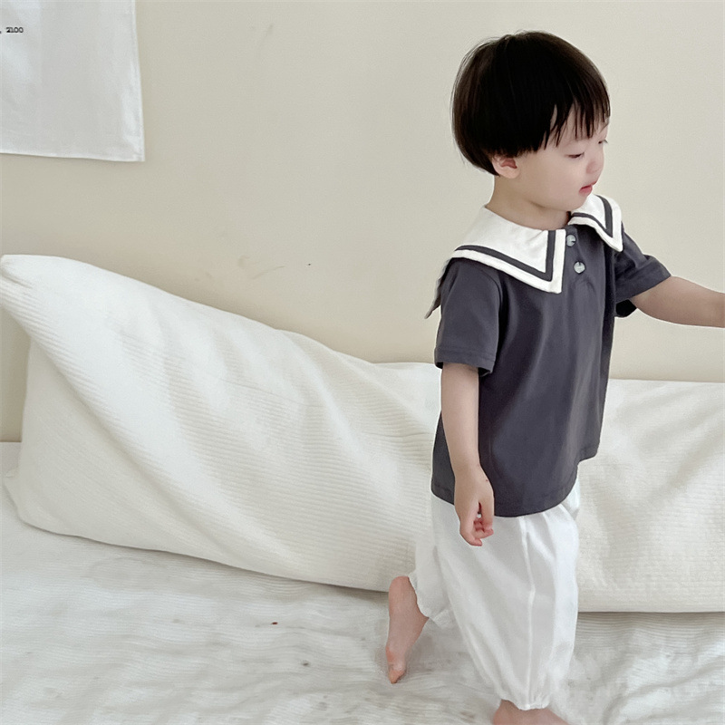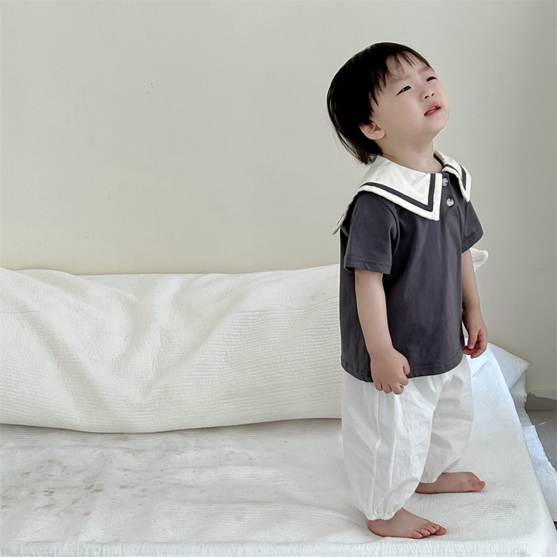 아기의 여름 옷 얇은 한국 스타일 아동복 소년 반팔 엘 티셔츠 세트 어린이 여름 서양식 여름 옷