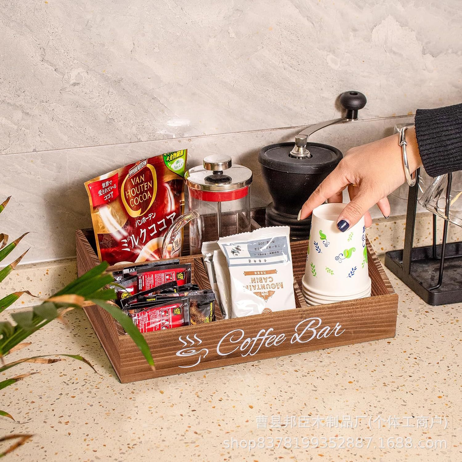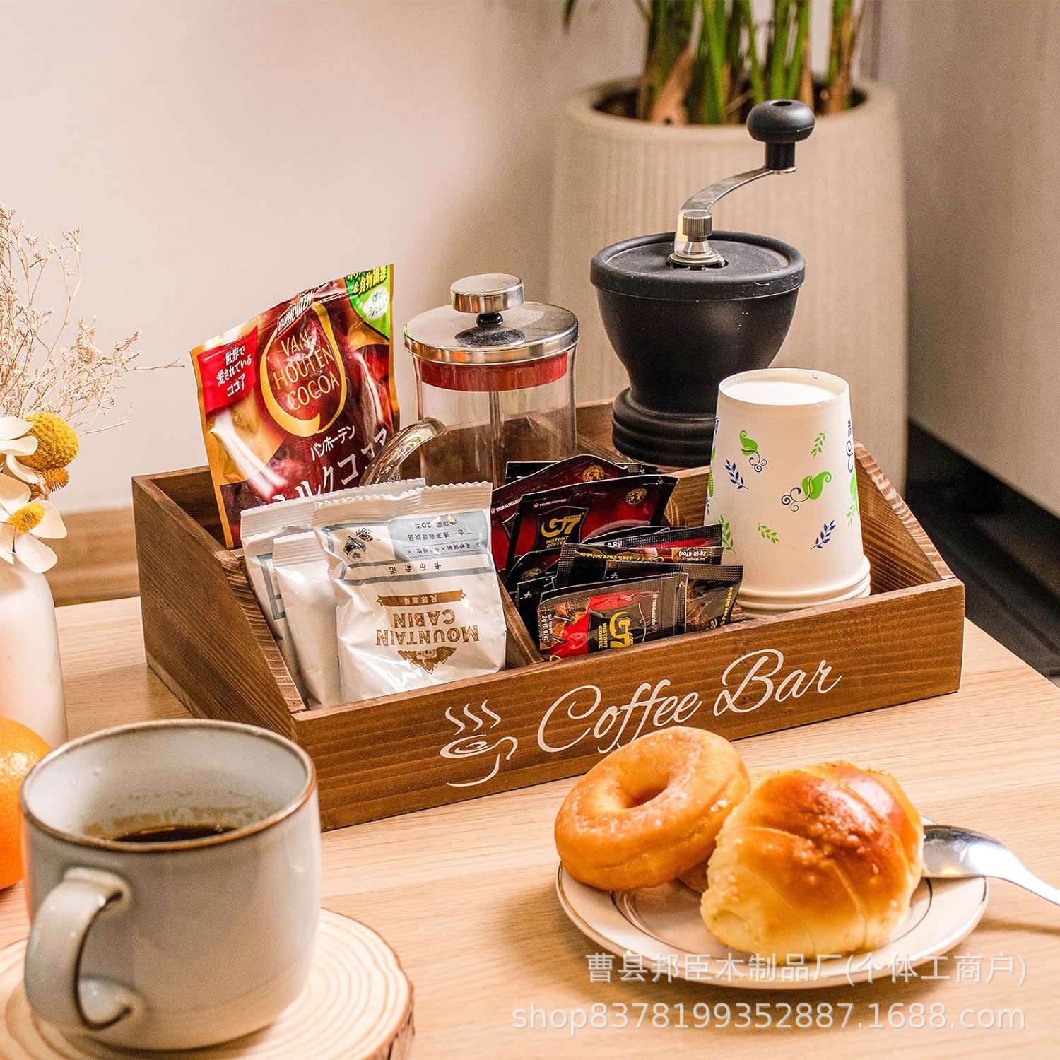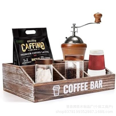 나무 커피 바 액세서리 상자 데스크탑 저장 상자 파티션 커피 캡슐 마무리 랙 믹서 시럽 보관 바구니스토어 가기