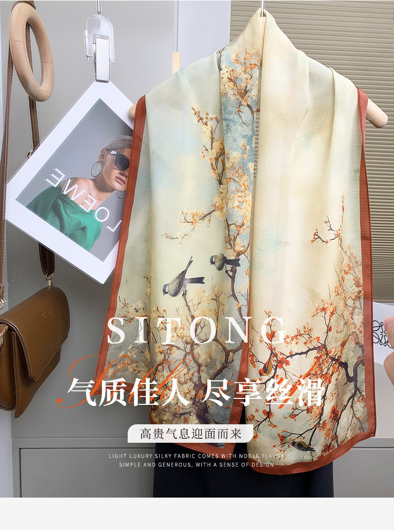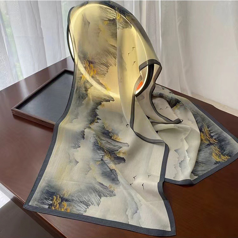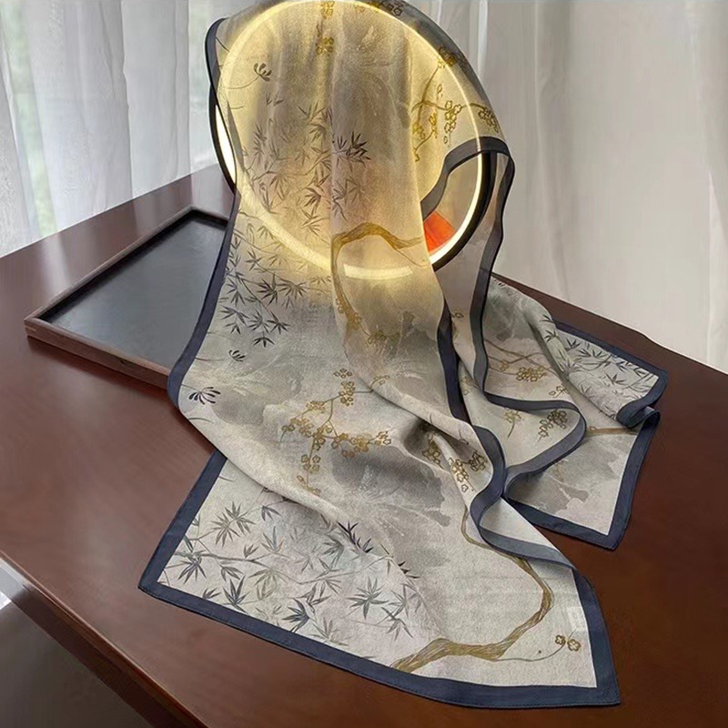 고급 국가 스타일 인쇄 된 뽕나무 실크 긴 스카프 디자인 센스 기질 실크 목도리 스카프 트렌디스토어 가기