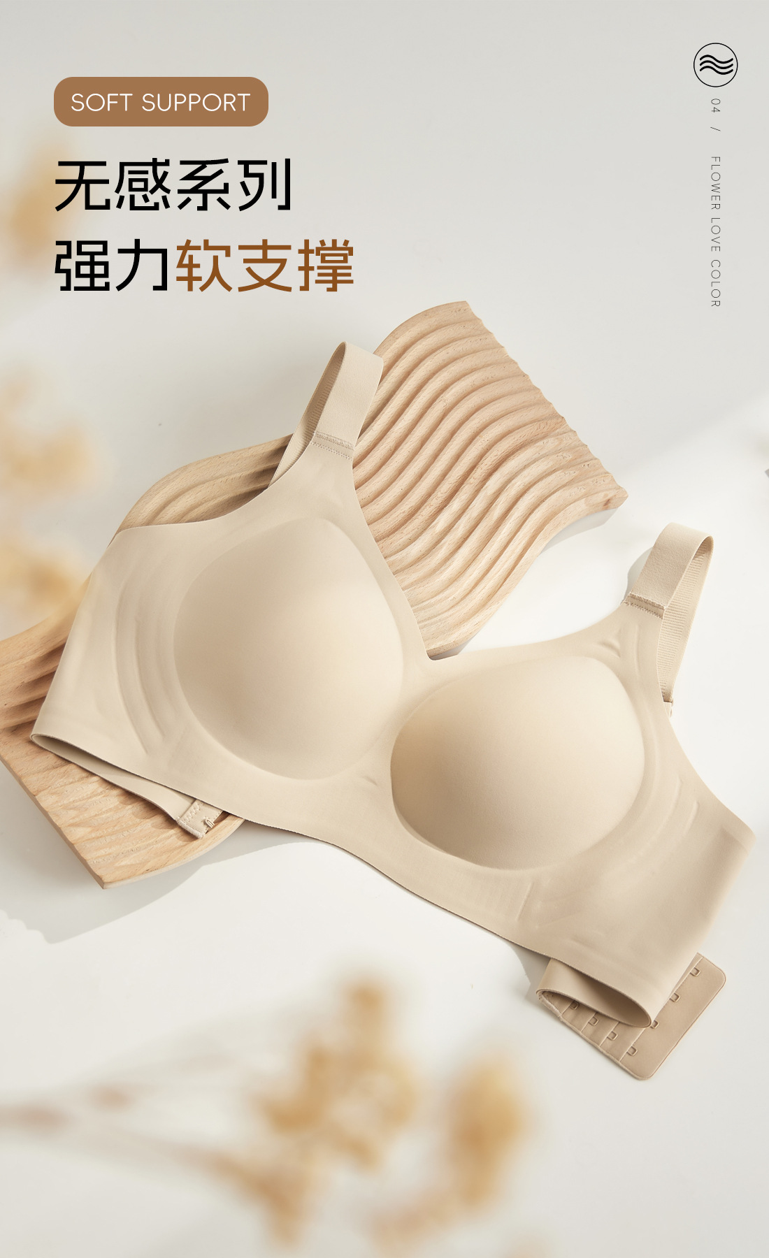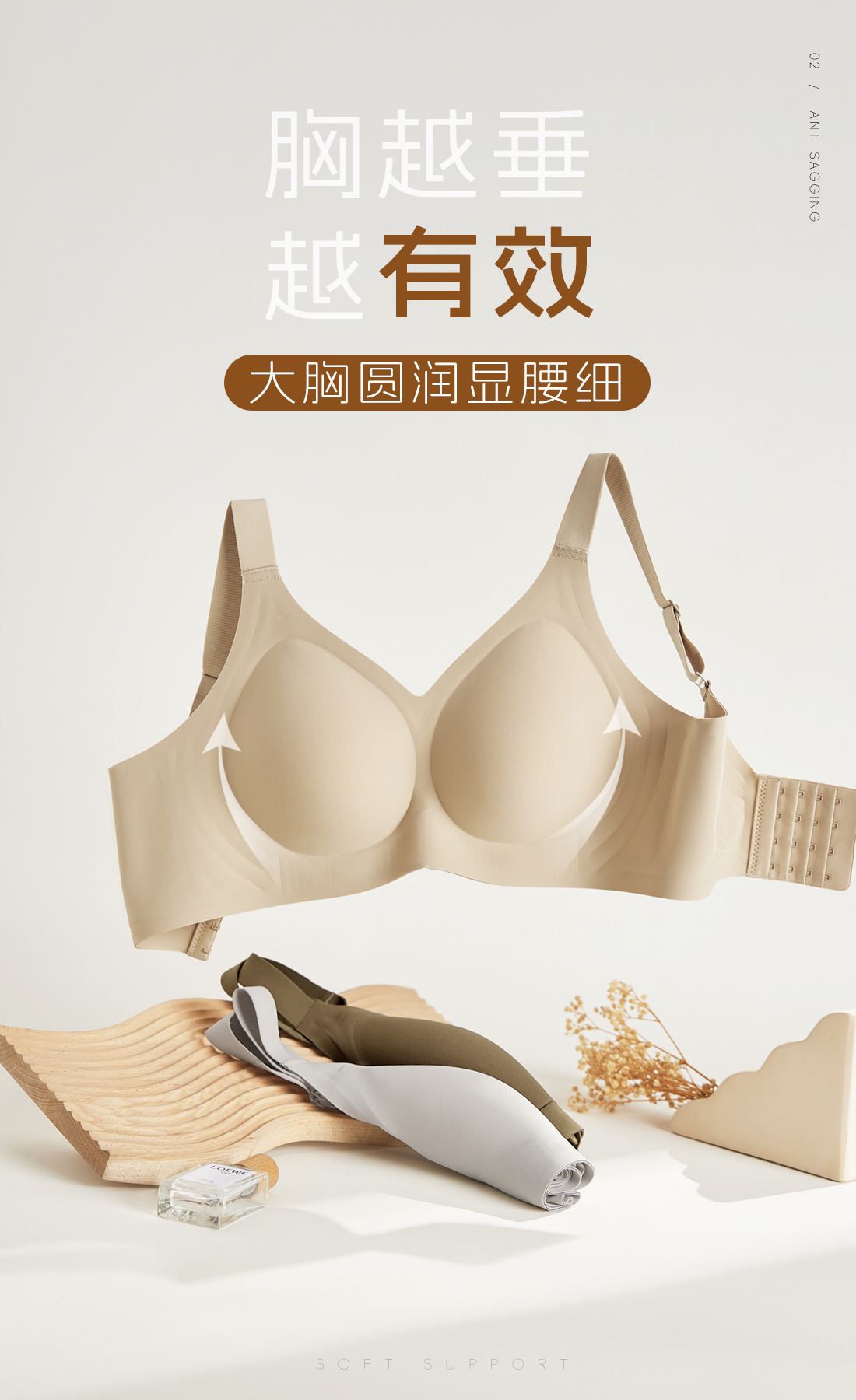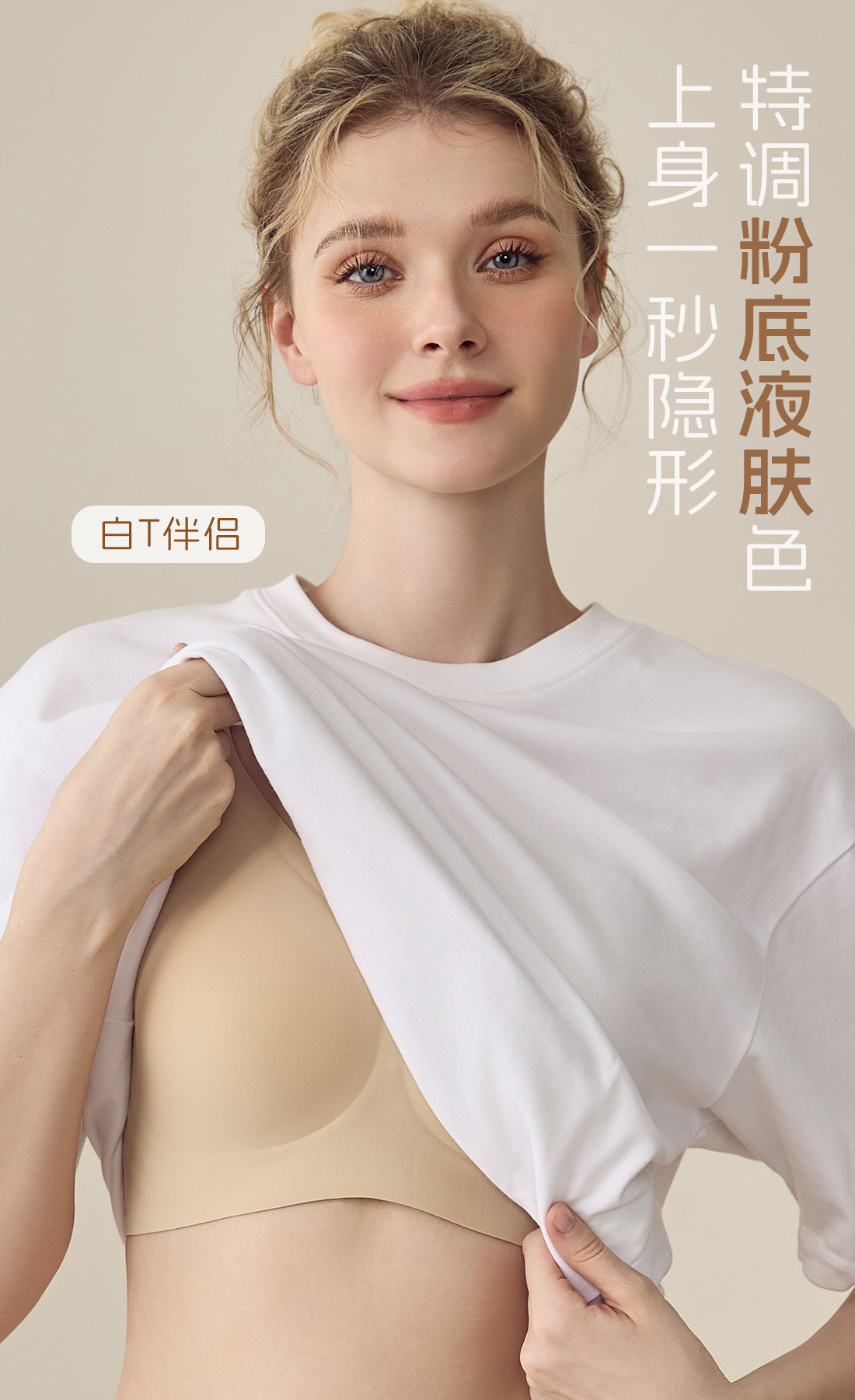 원활한 액체 재단 속옷 여성의 여름 얇은 큰 가슴 작은 조끼 아름다운 등 피부 색 투과성 보이지 않는 플러스 사이즈 브래지어스토어 가기