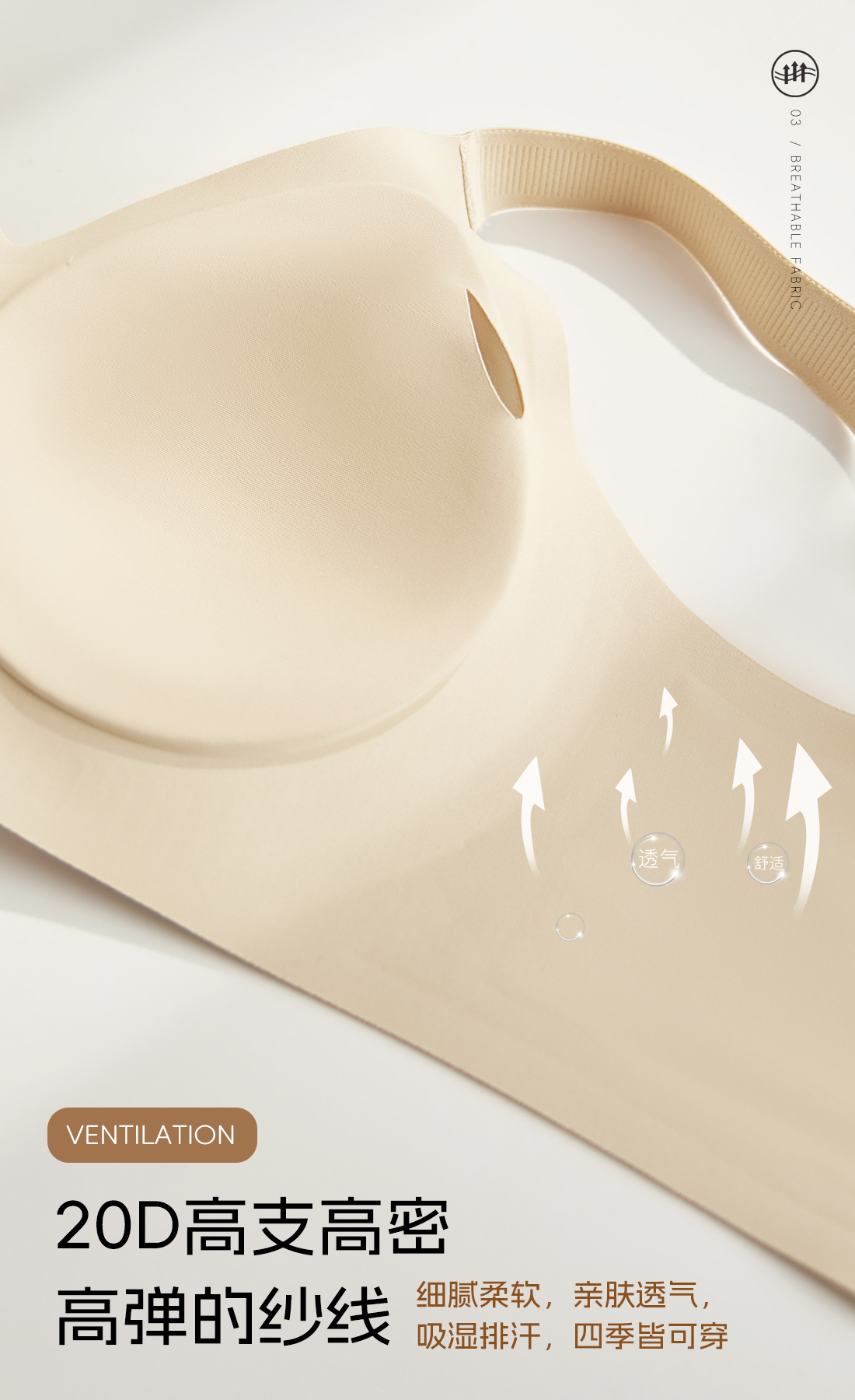 원활한 액체 재단 속옷 여성의 여름 얇은 큰 가슴 작은 조끼 아름다운 등 피부 색 투과성 보이지 않는 플러스 사이즈 브래지어
