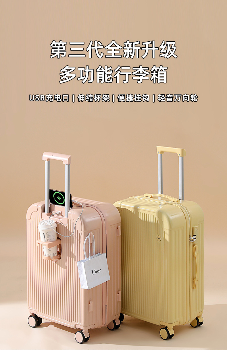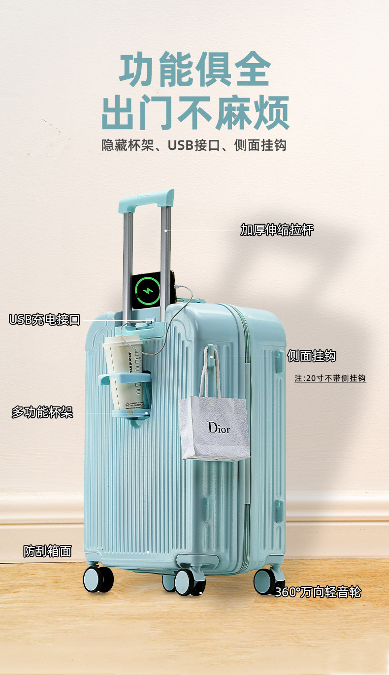 새로운 수하물 케이스 여성용 트롤리 케이스 대용량 자동 범용 휠 지퍼 다기능 가방 비밀번호 가죽 케이스