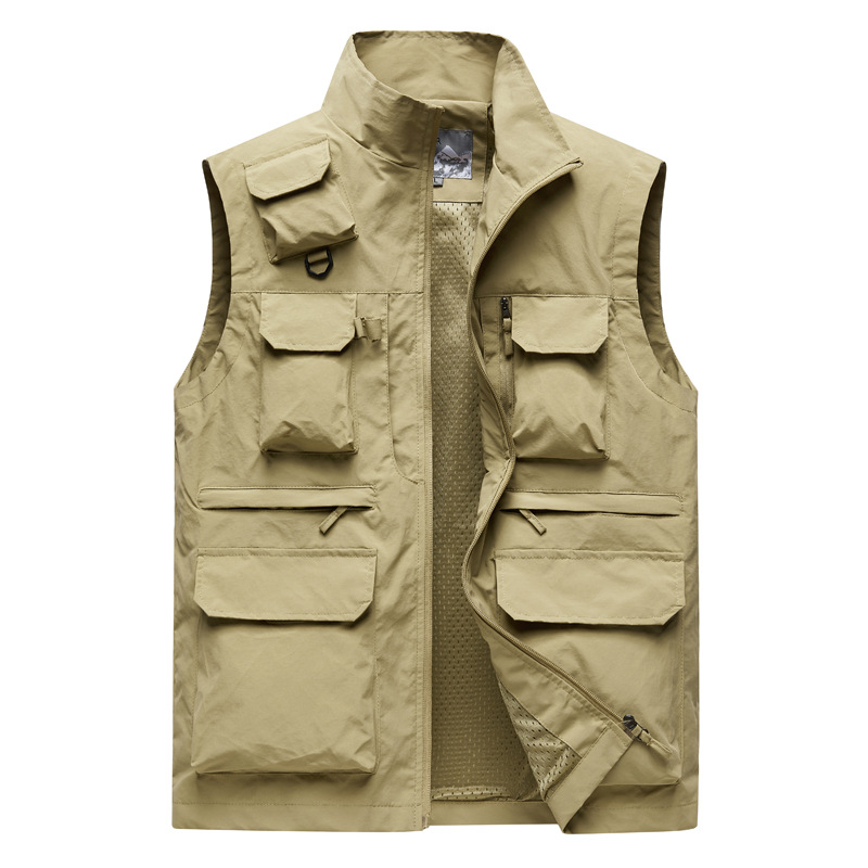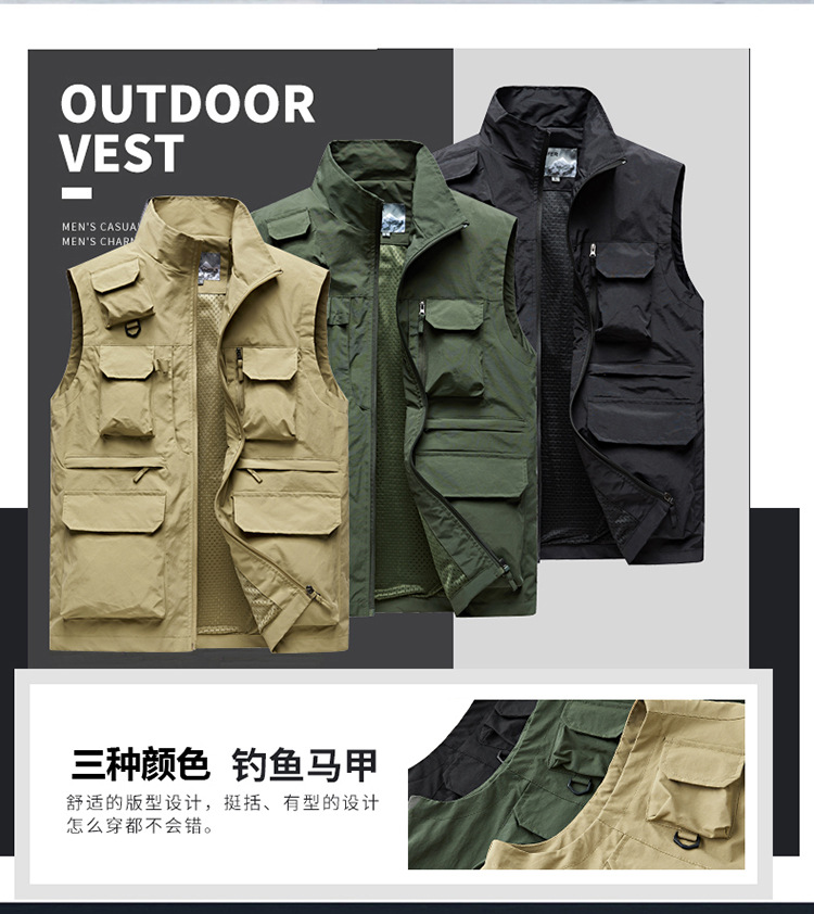 새로운 조끼 남자 야외 캐주얼 플러스 사이즈 봄과 가을 멀티 포켓 툴링 말 클립 등산 낚시 작업 옷 조끼스토어 가기