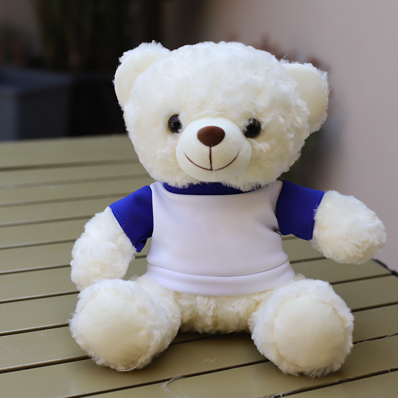 • O-칼라 블루 화이트 티셔츠 화이트 베어