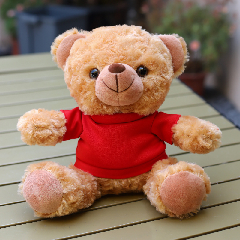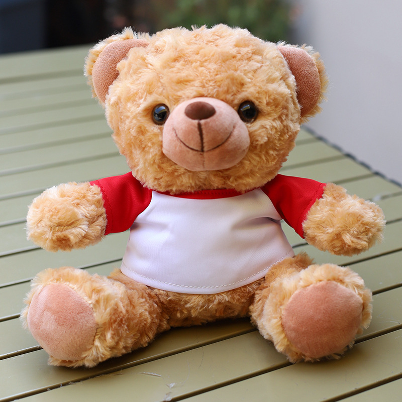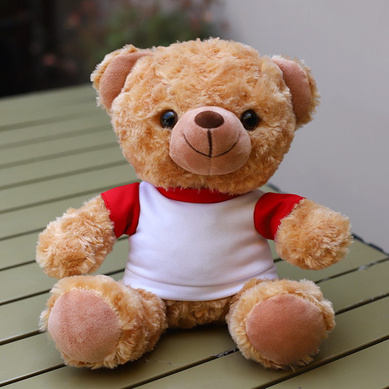 • O 칼라 빨간색과 흰색 티셔츠 다크 브라운 곰