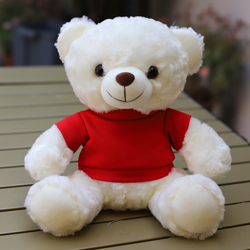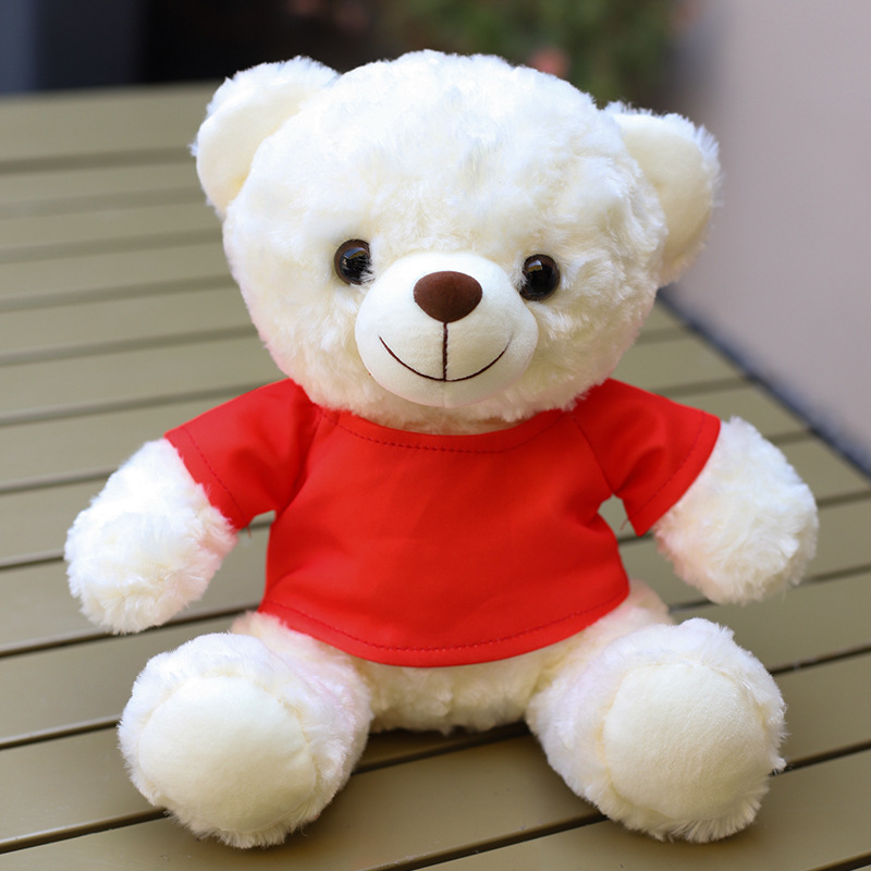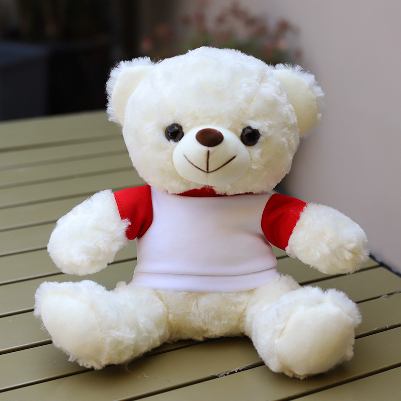 • O 칼라 빨간색과 흰색 티셔츠 흰색 곰