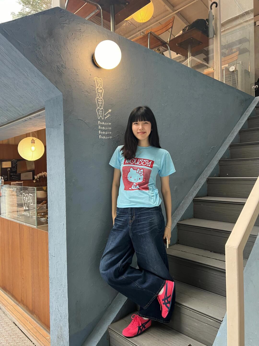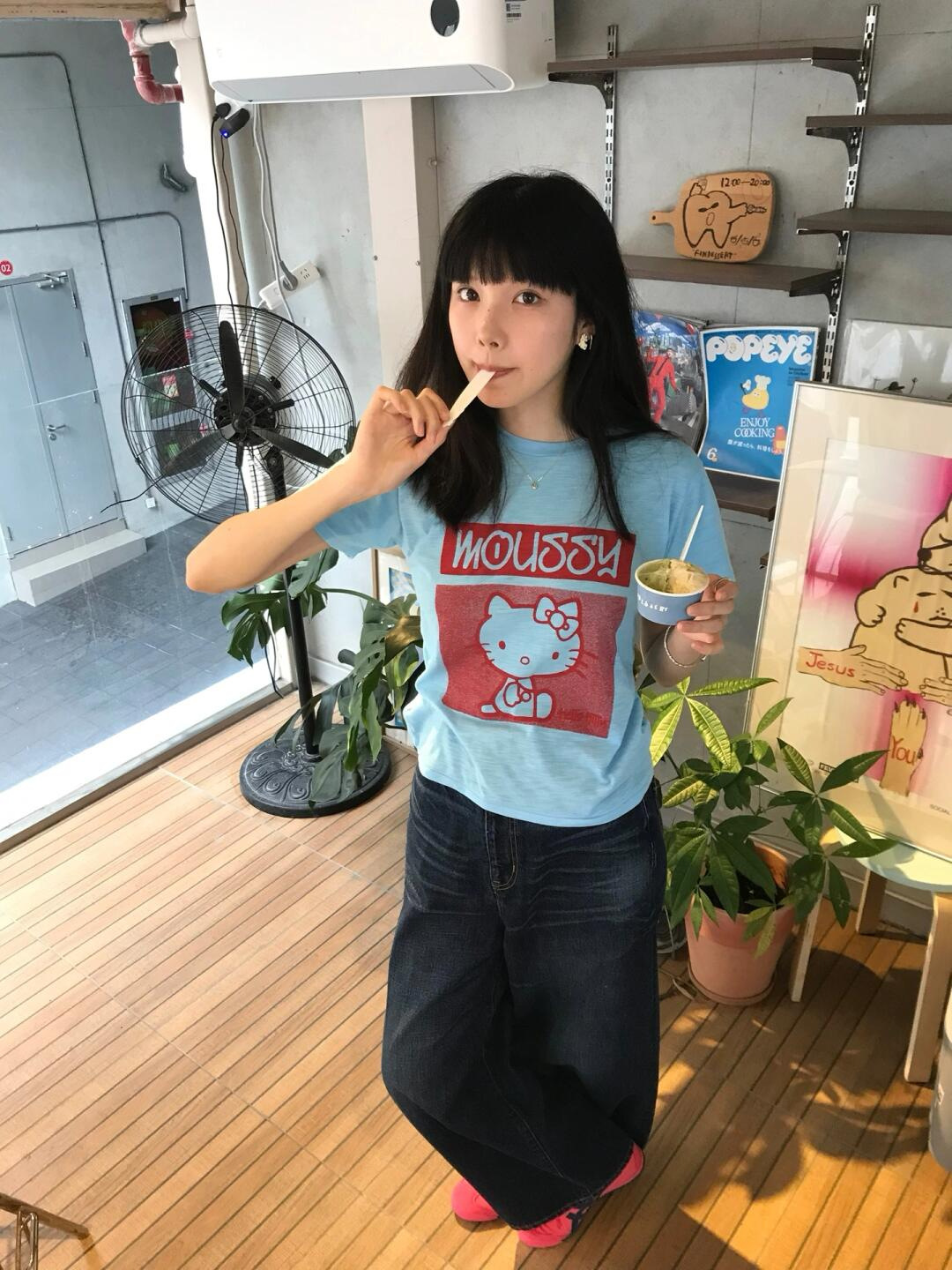 [40 빗질 면 95% + 5% 스판덱스 백 칼라] 슬림 핏 슬림 숄더 반팔 티셔츠 여성용 여름 라이트 블루스토어 가기