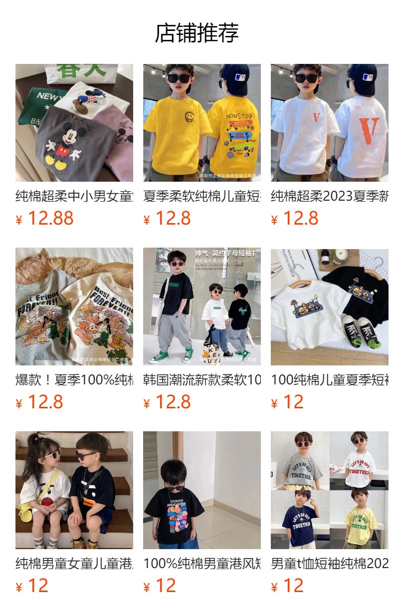 어린이 만화 반팔 티셔츠 여름 한국식 아동복 소년과 소녀 둥근 목 느슨한 캐주얼베이스 셔츠 탑스토어 가기