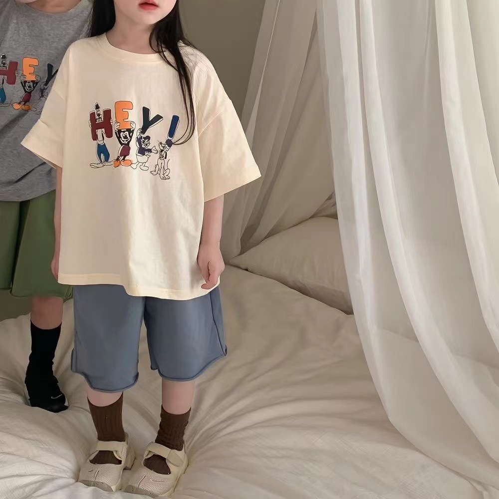 어린이 만화 반팔 티셔츠 여름 한국식 아동복 소년과 소녀 둥근 목 느슨한 캐주얼베이스 셔츠 탑