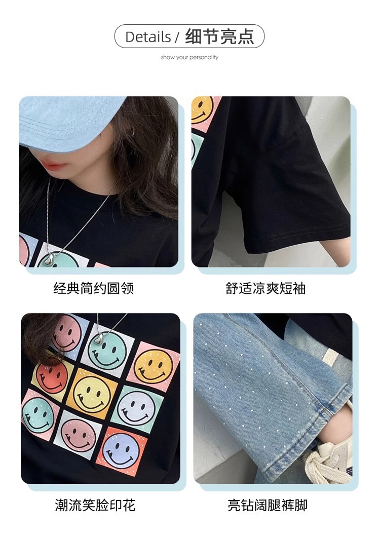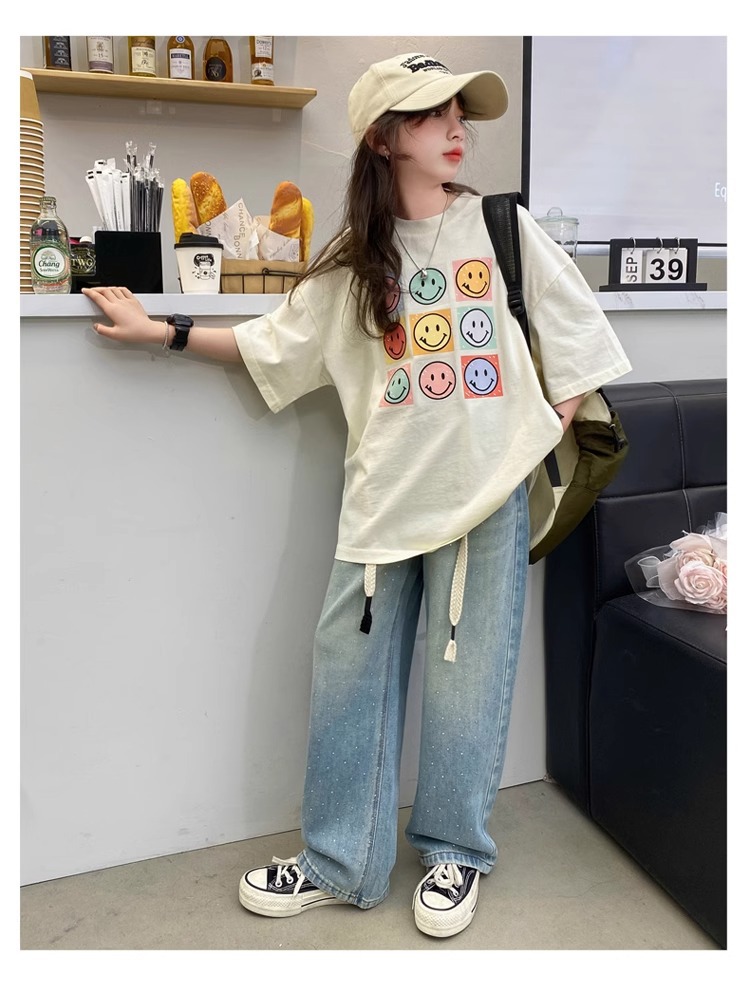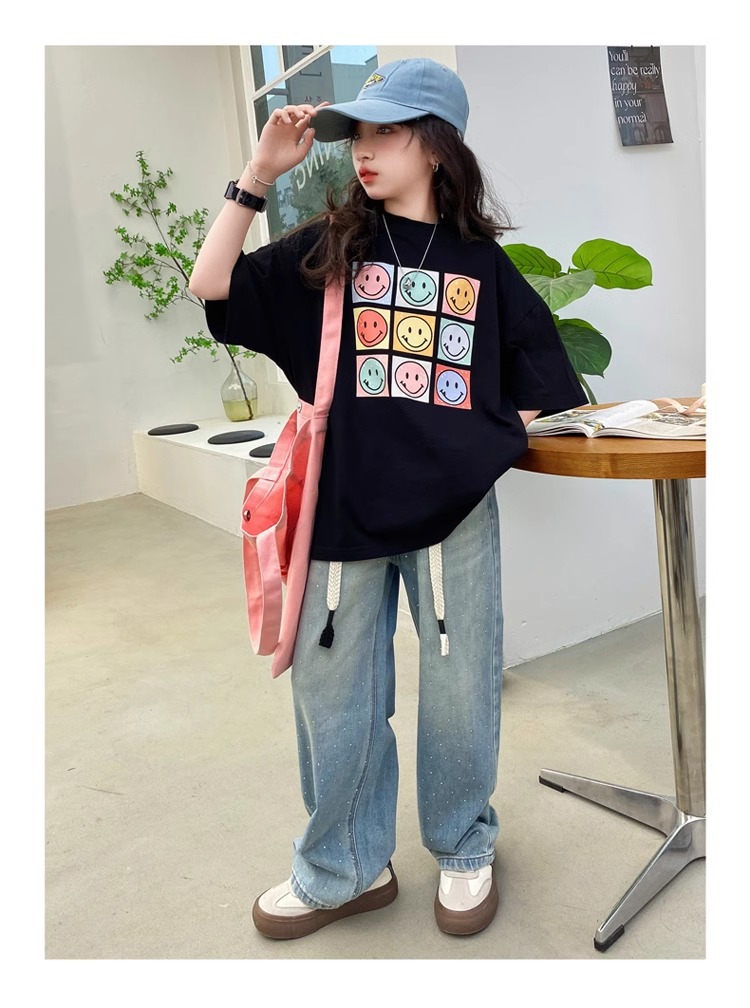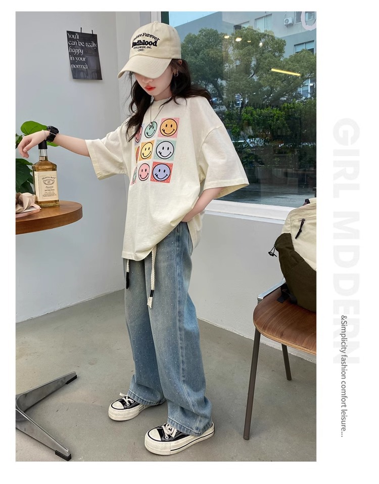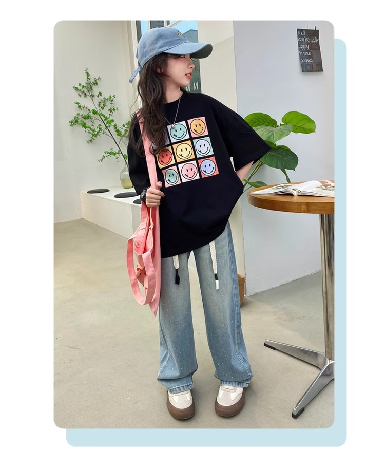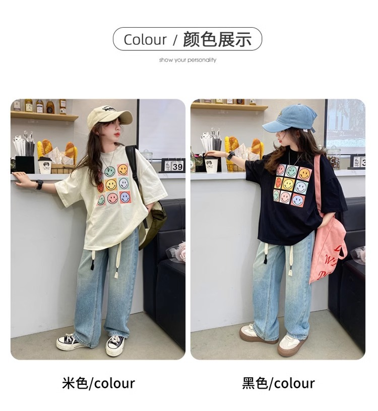 여자 여름 코튼 티셔츠 유행 캐주얼 어린이 서양식 짧은 소매 느슨한 큰 어린이 여름 한국 스타일 탑 티셔츠