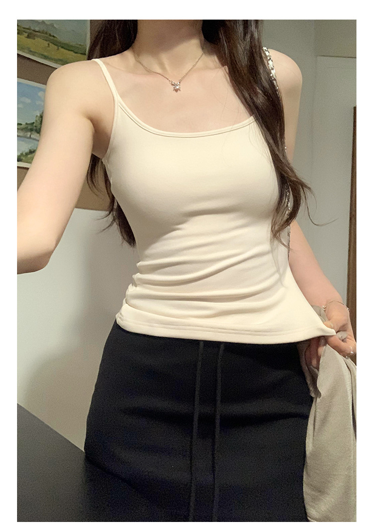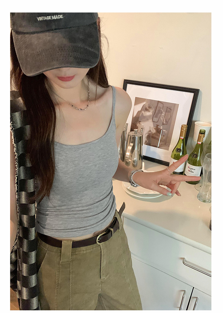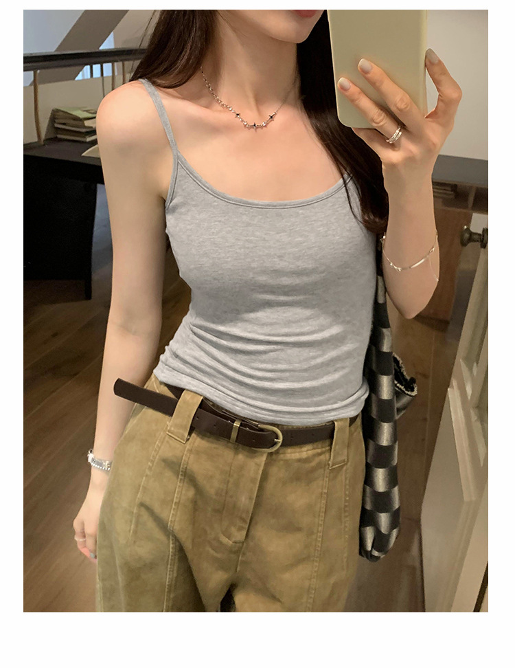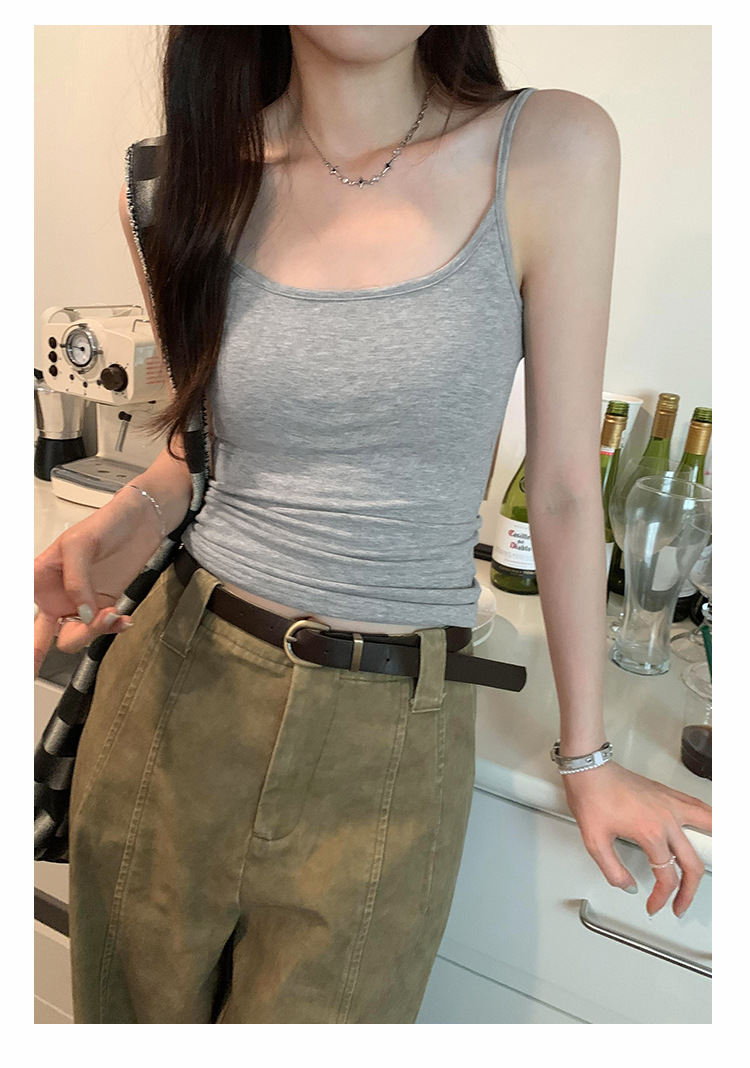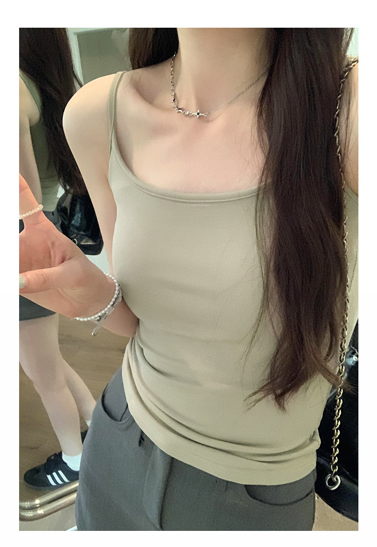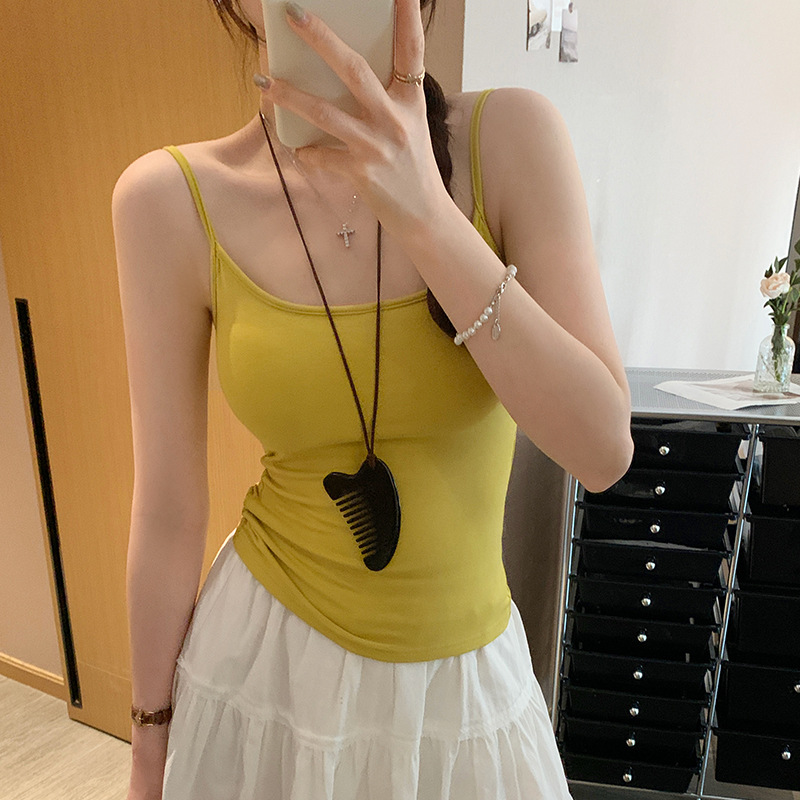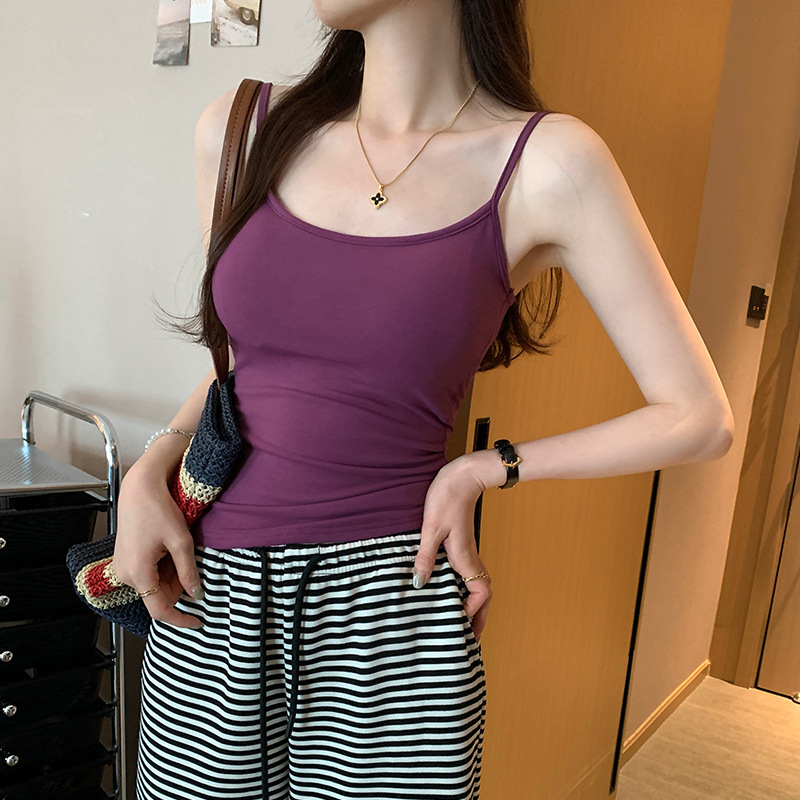 홍콩 스타일 하이 엔드 디자인 센스 핫 걸 세련된 가슴 패드 작은 슬링 여성 여름 2024 새로운 민소매 아우터 내복