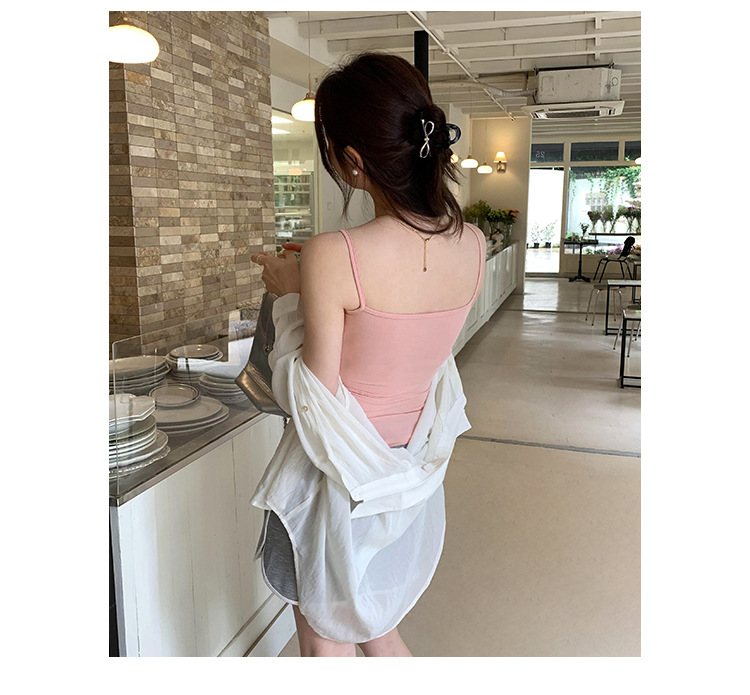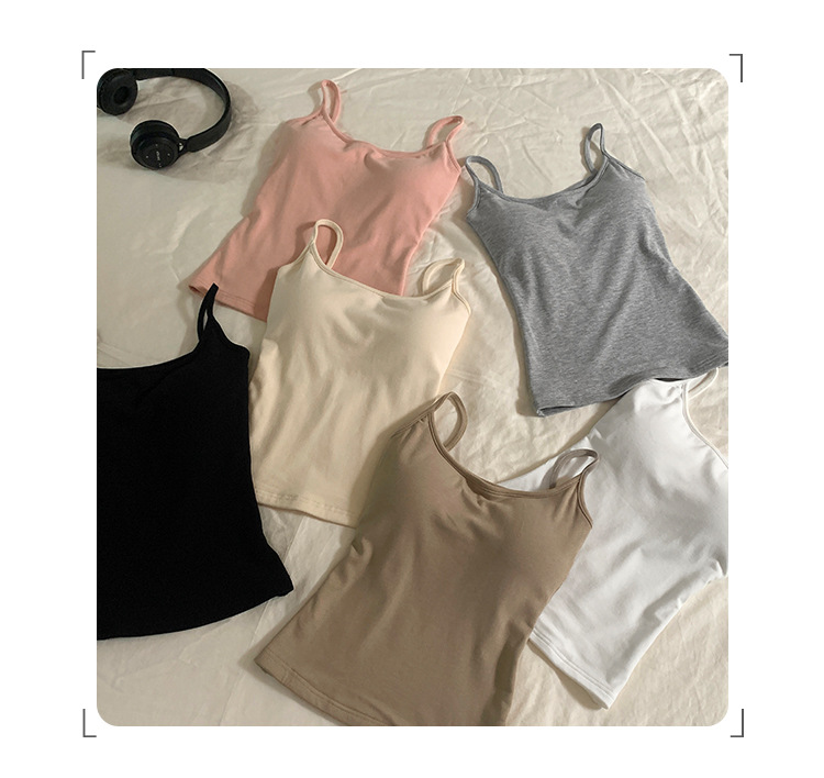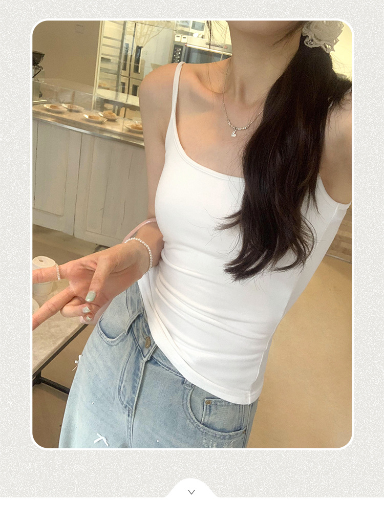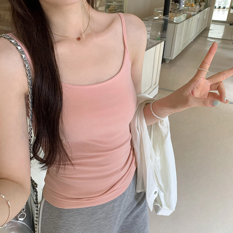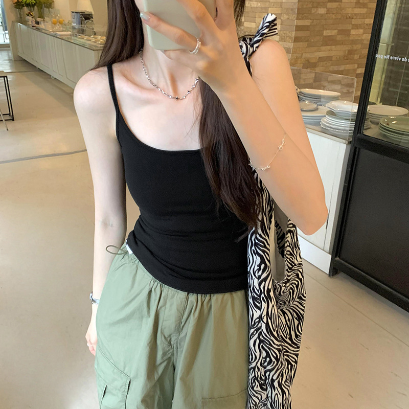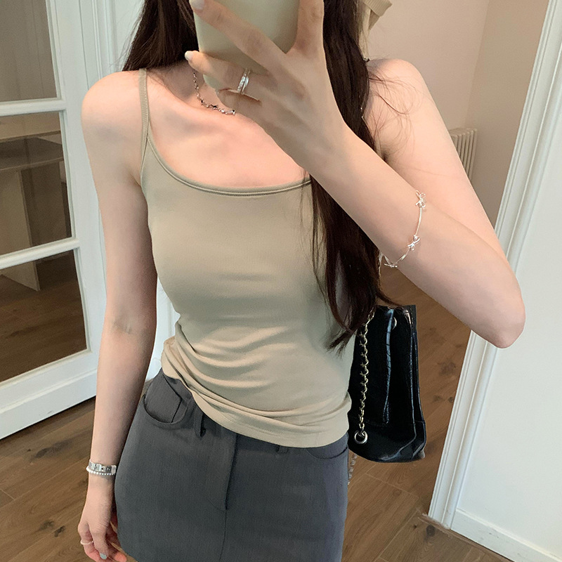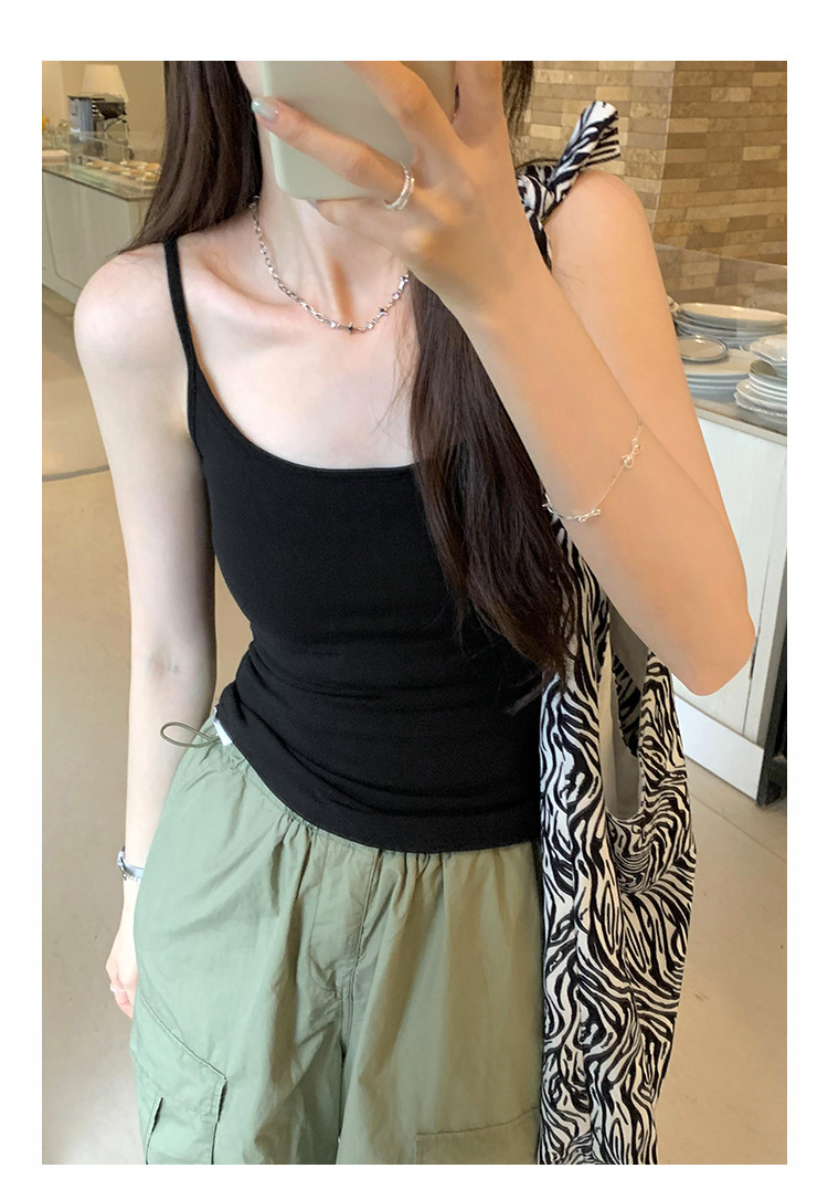 홍콩 스타일 하이 엔드 디자인 센스 핫 걸 세련된 가슴 패드 작은 슬링 여성 여름 2024 새로운 민소매 아우터 내복스토어 가기