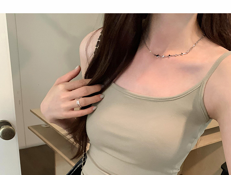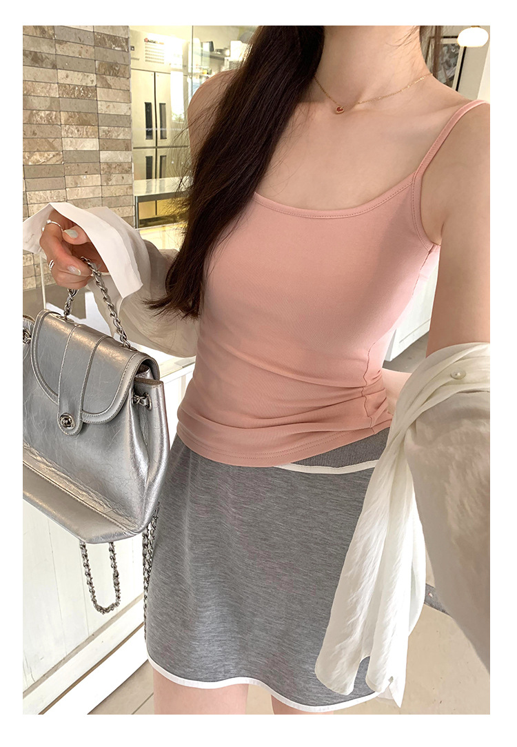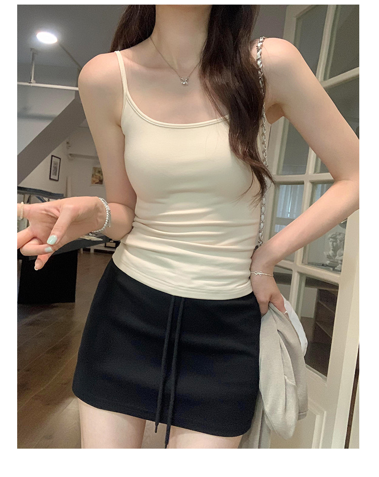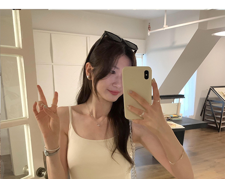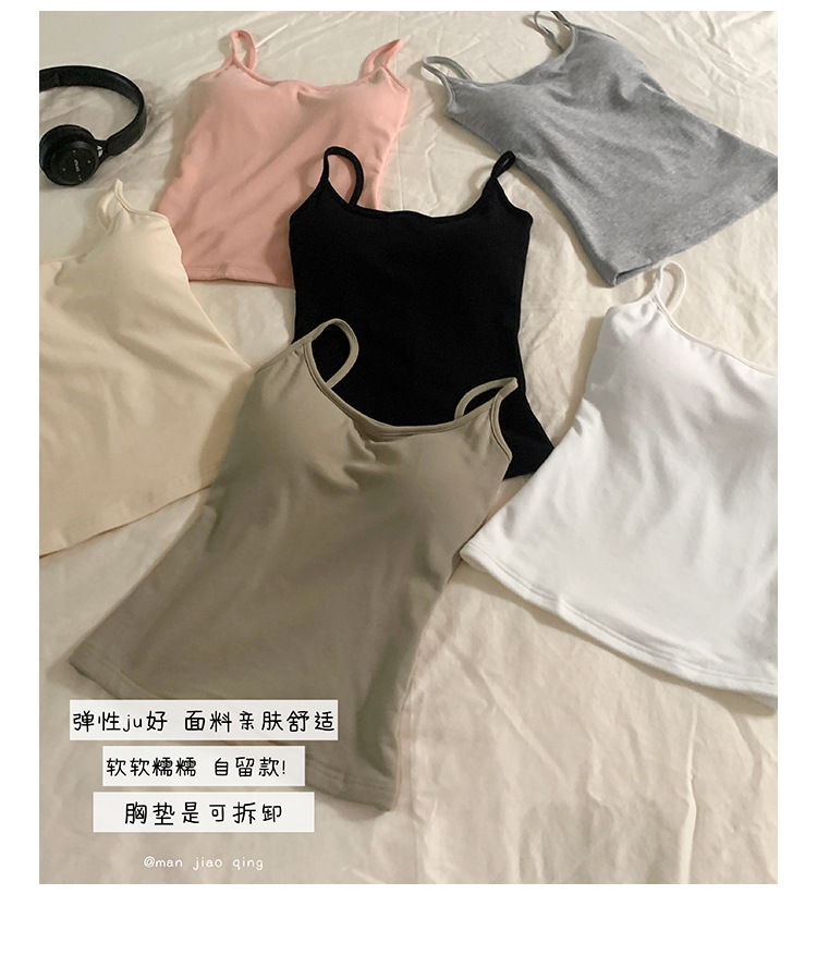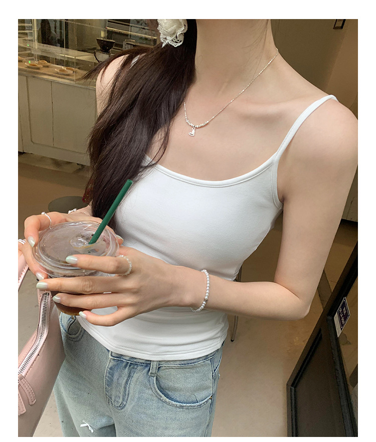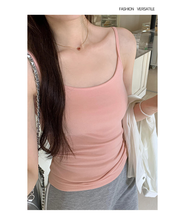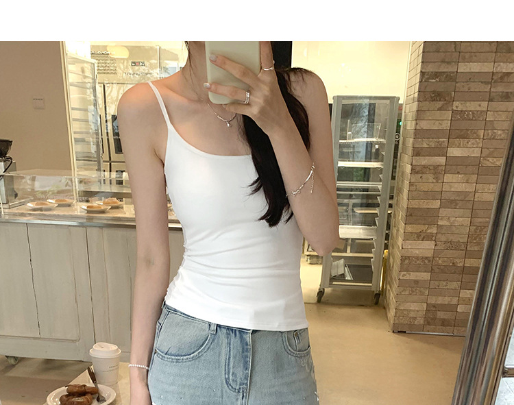 홍콩 스타일 하이 엔드 디자인 센스 핫 걸 세련된 가슴 패드 작은 슬링 여성 여름 2024 새로운 민소매 아우터 내복스토어 가기