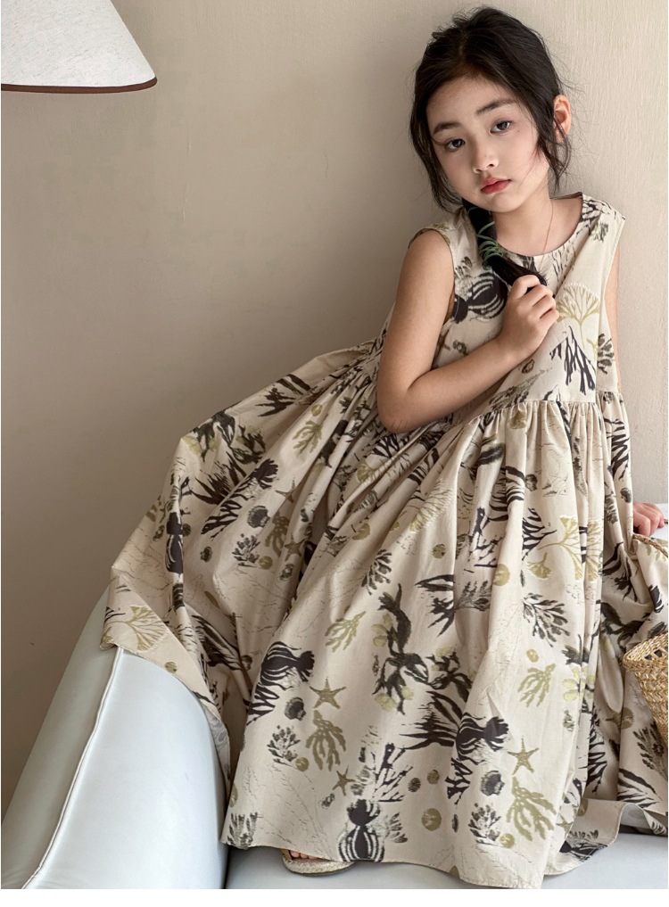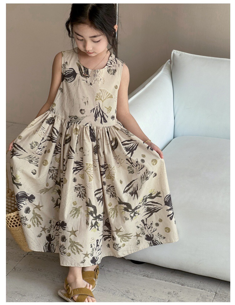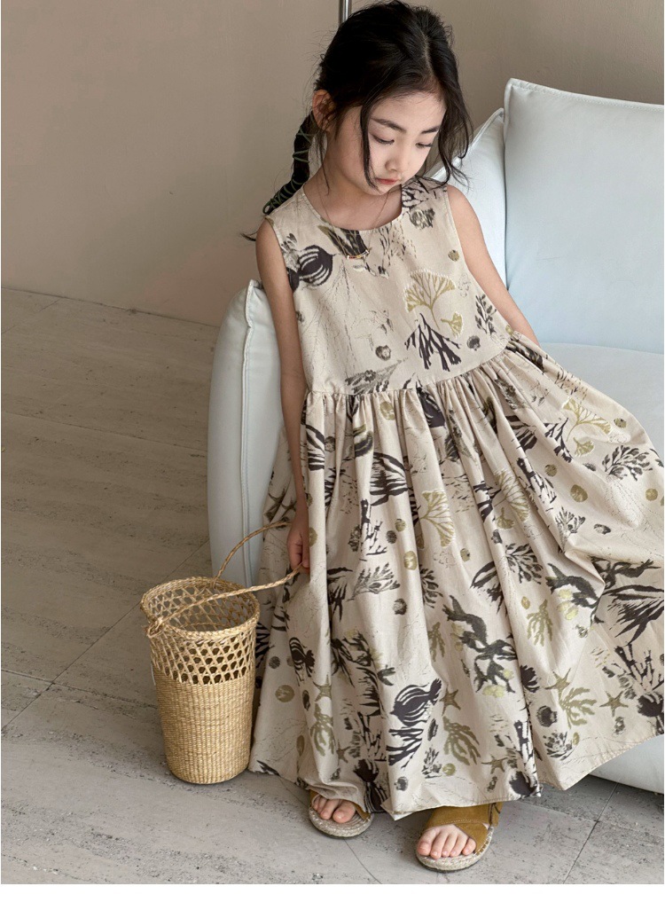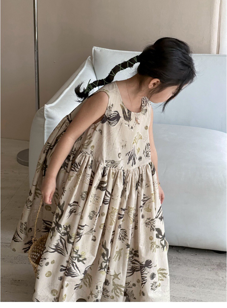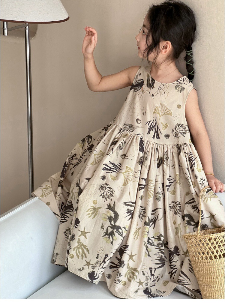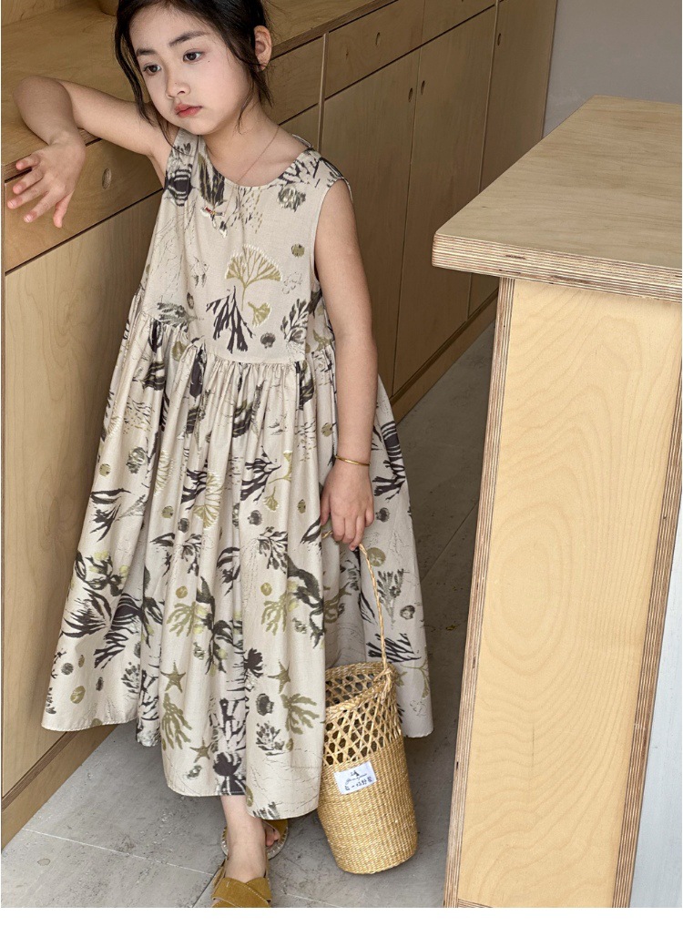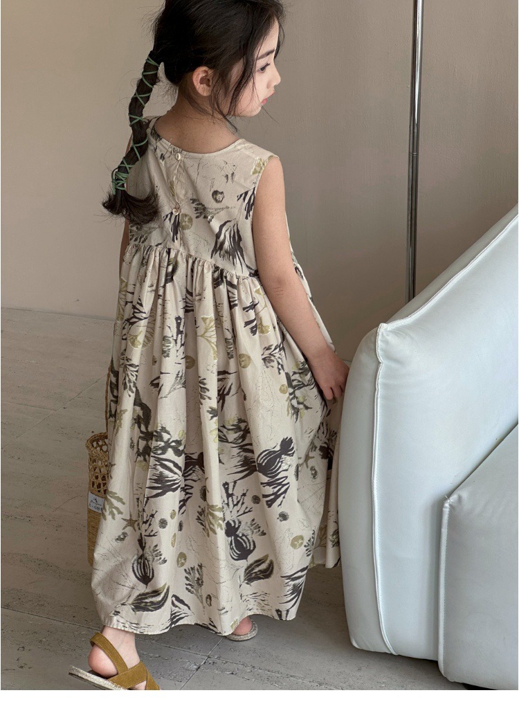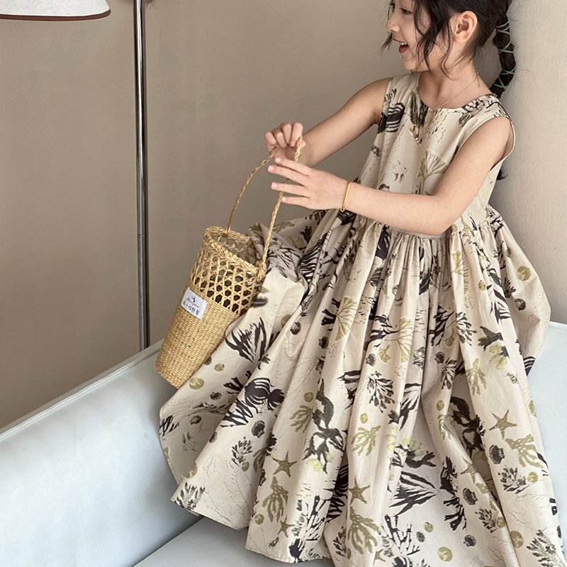 여자 원피스 서양식 여름 소녀의 꽃 원피스 어린이 원피스 공주 원피스 민소매 조끼 긴 원피스 비치 원피스