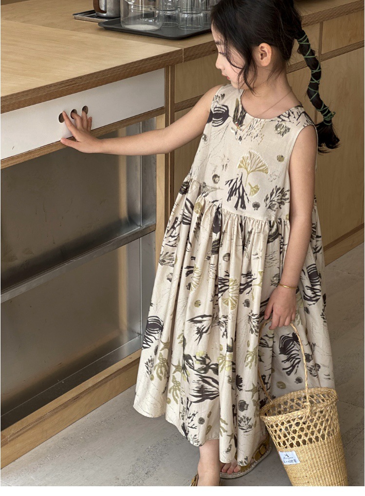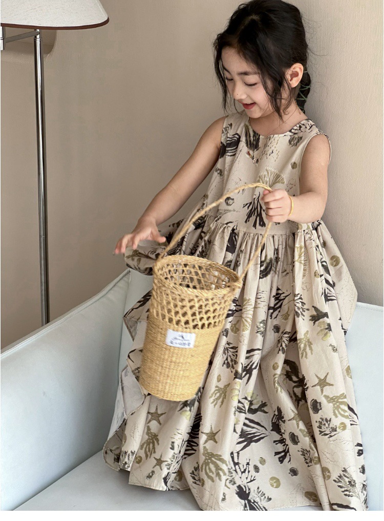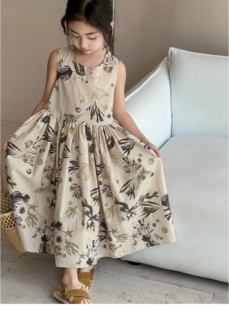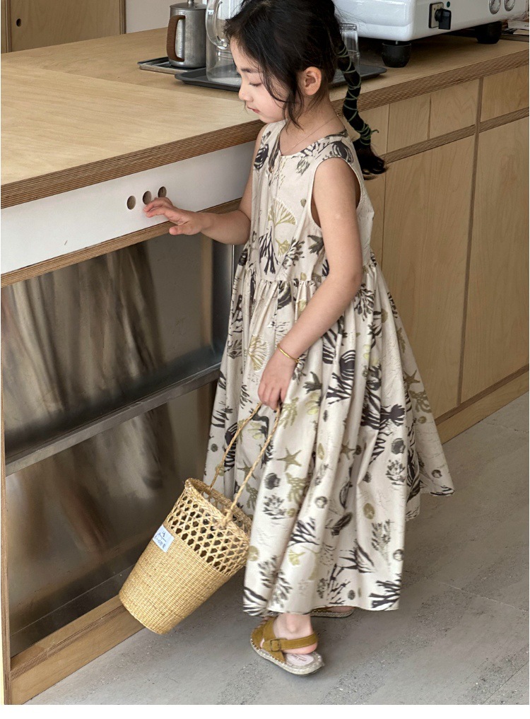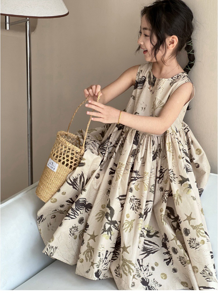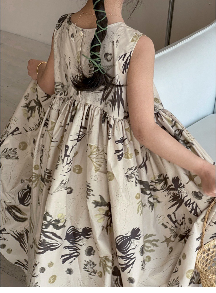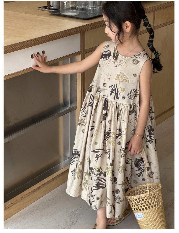 여자 원피스 서양식 여름 소녀의 꽃 원피스 어린이 원피스 공주 원피스 민소매 조끼 긴 원피스 비치 원피스