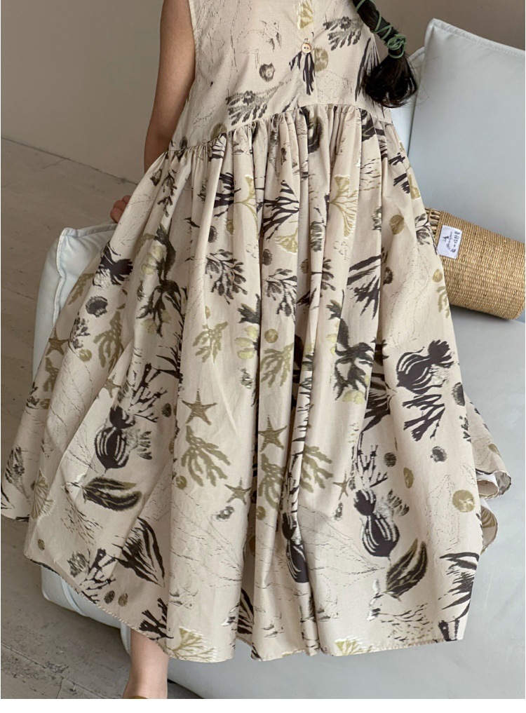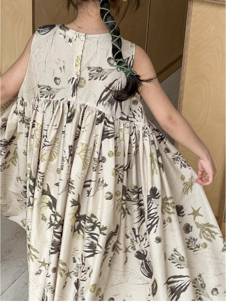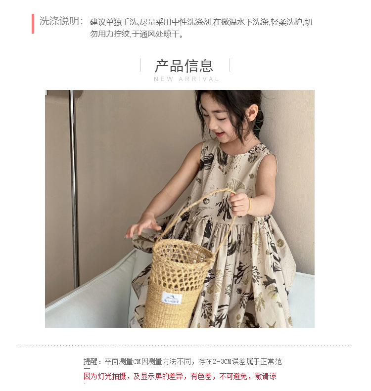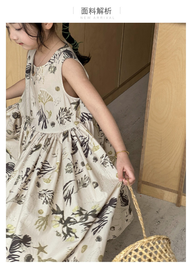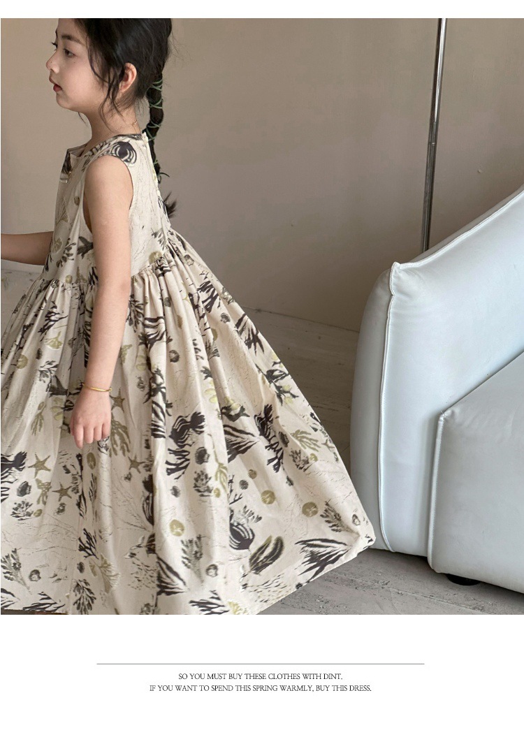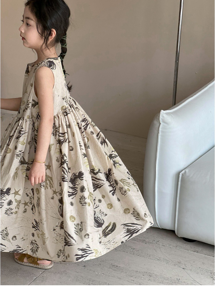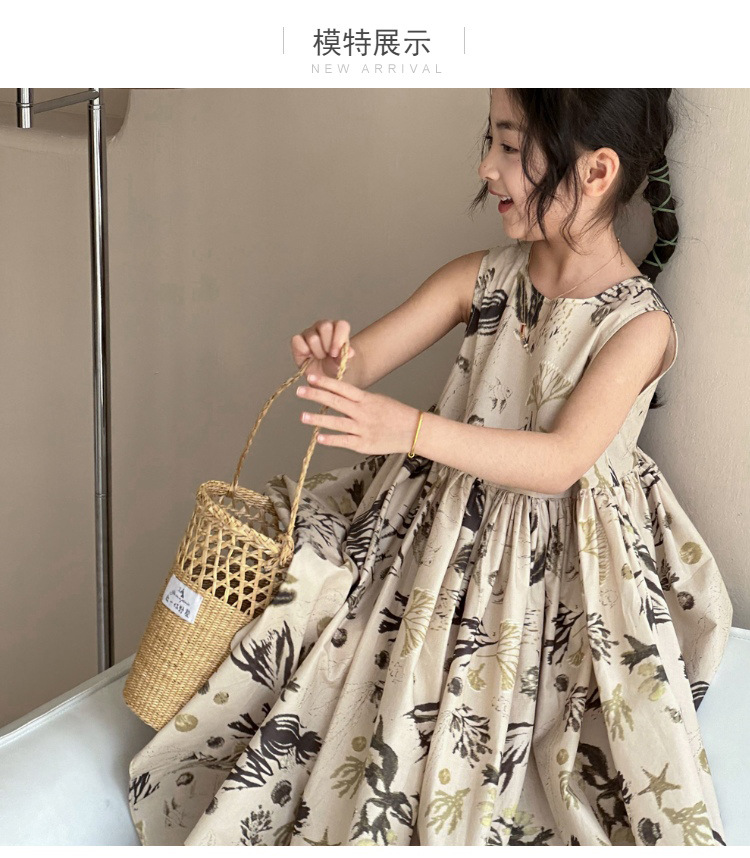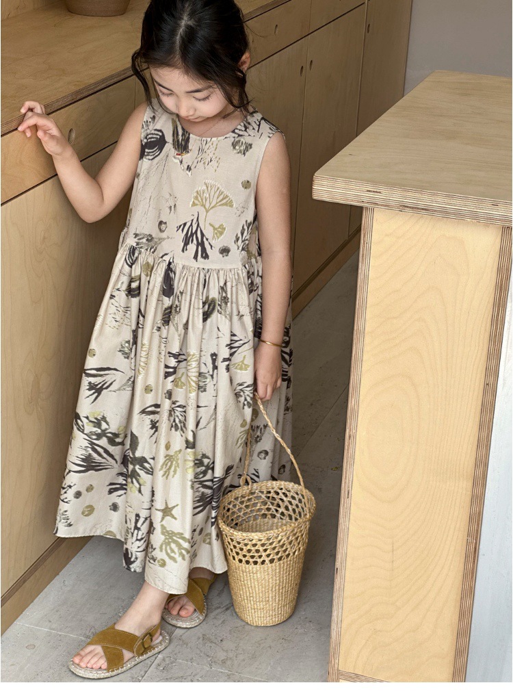 여자 원피스 서양식 여름 소녀의 꽃 원피스 어린이 원피스 공주 원피스 민소매 조끼 긴 원피스 비치 원피스