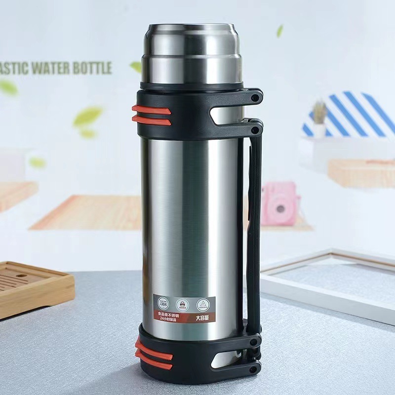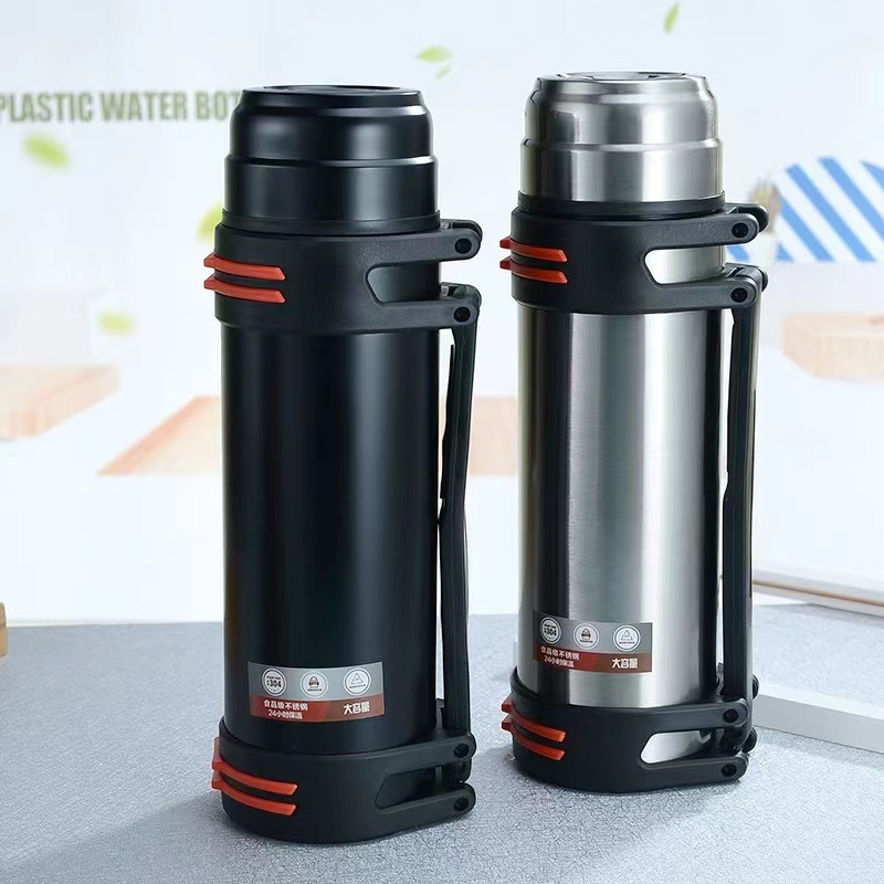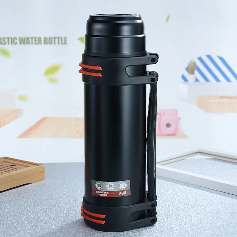 2.0L 더블 레이어 열 절연 여행 냄비 대용량 야외 스포츠 주전자 스트랩 등산 휴대용 열 절연 냄비