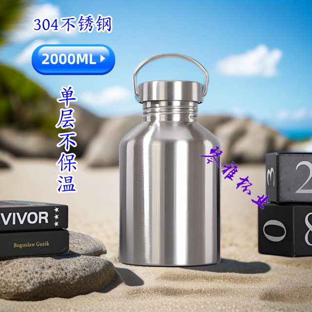 304 스테인레스 스틸 여행 주전자 대용량 단일 층 냉수 주전자 모든 스틸 빈 컬러 병 편리한 스포츠 주전자