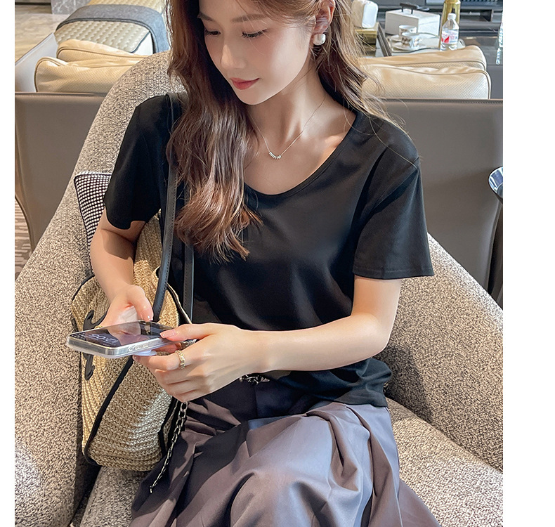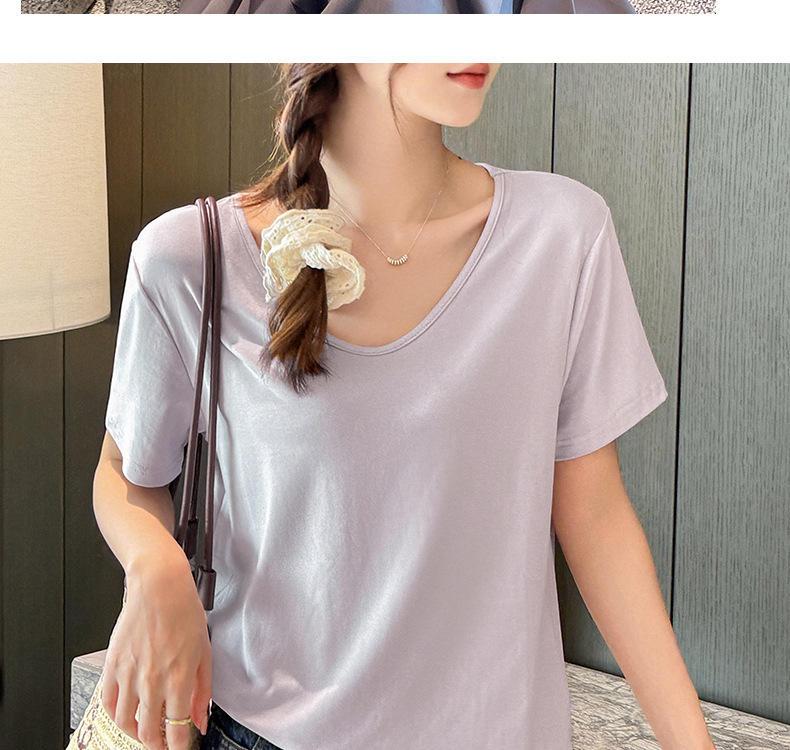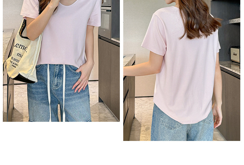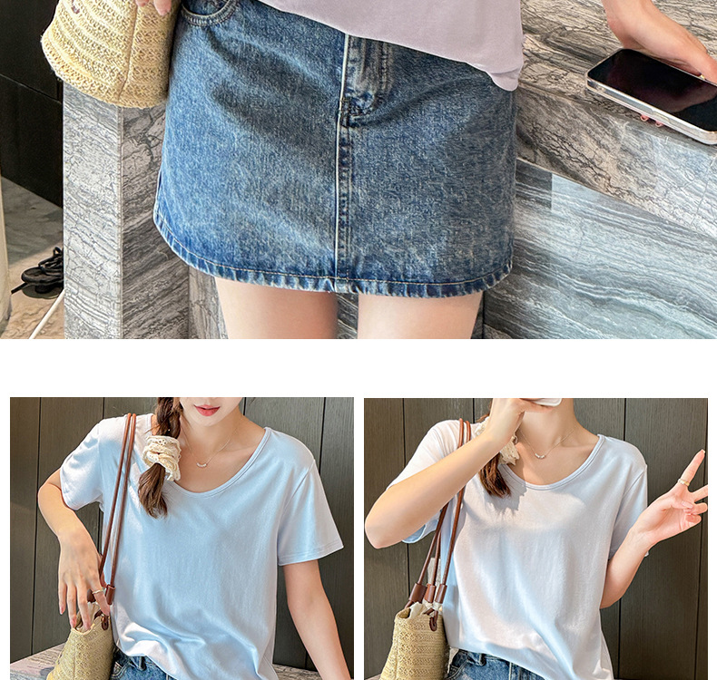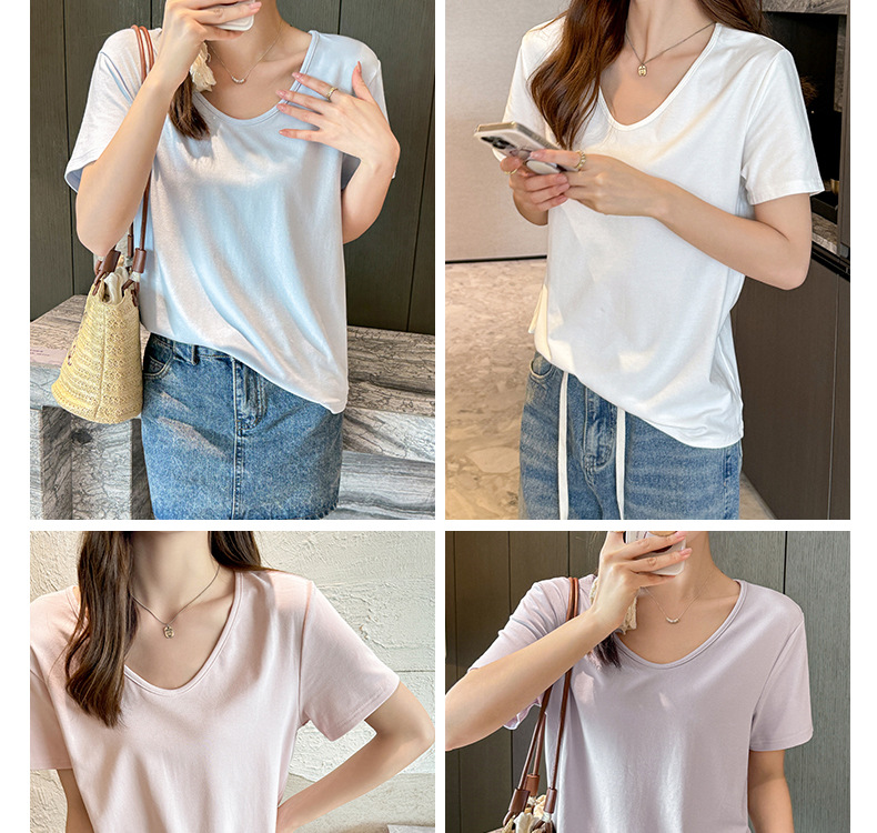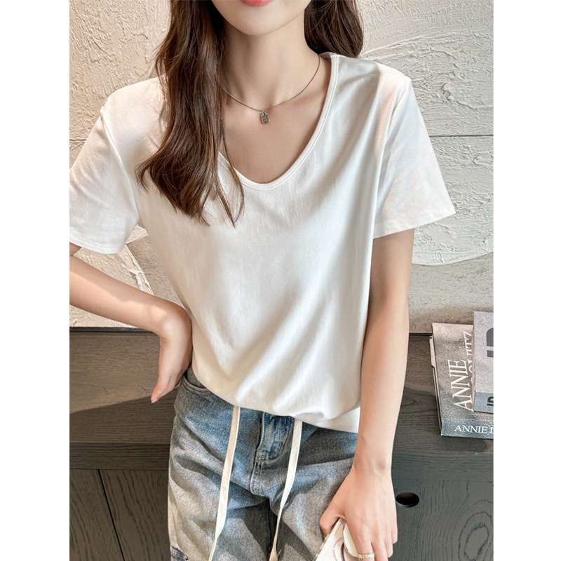 2026년 신상 루즈핏 V넥 숏슬리브 티셔츠 여성용 여름 빅사이즈 티셔츠 고급스러운 느낌의 배를 가려주는 티셔츠스토어 가기