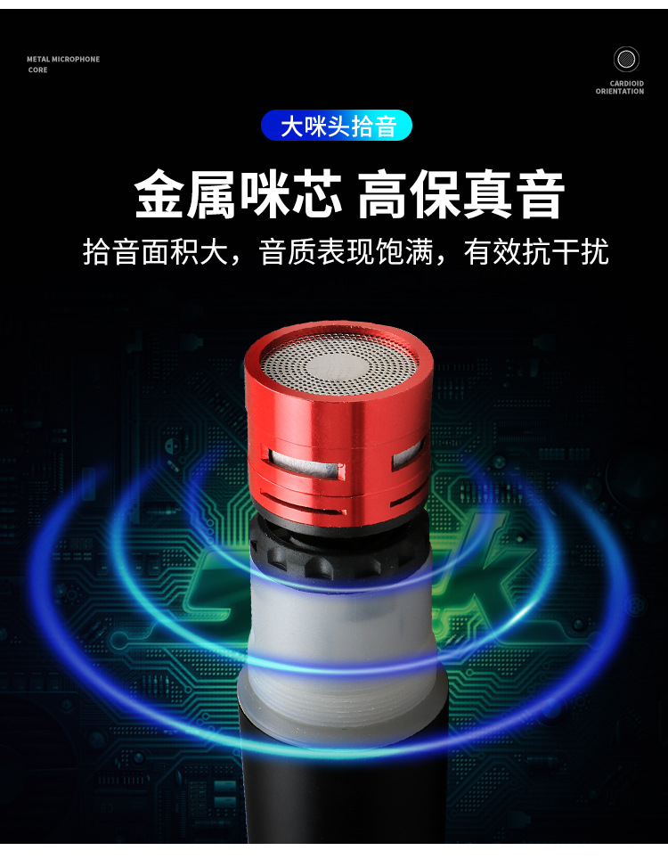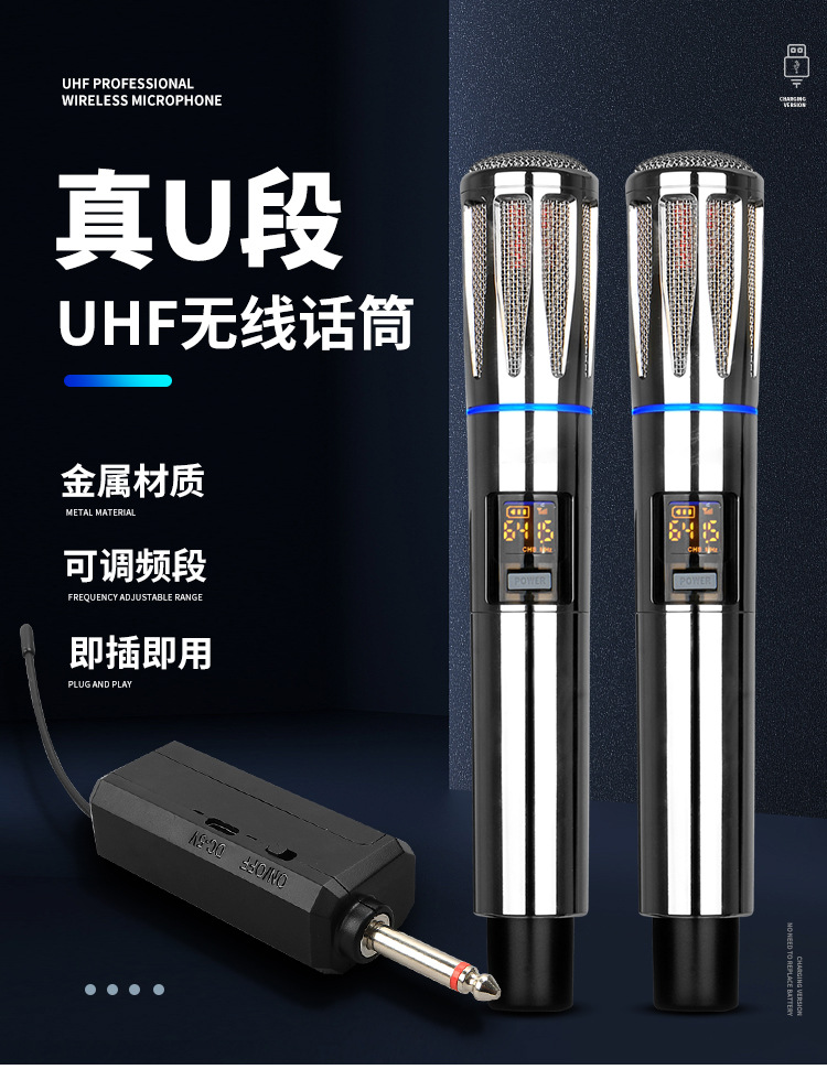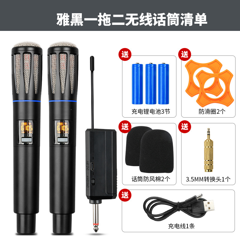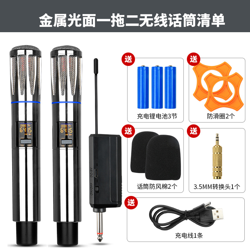 신형 금속 무선 마이크 1대2 가정용 야외 오디오 노래방 무대 사운드 카드 FM 전문 마이크