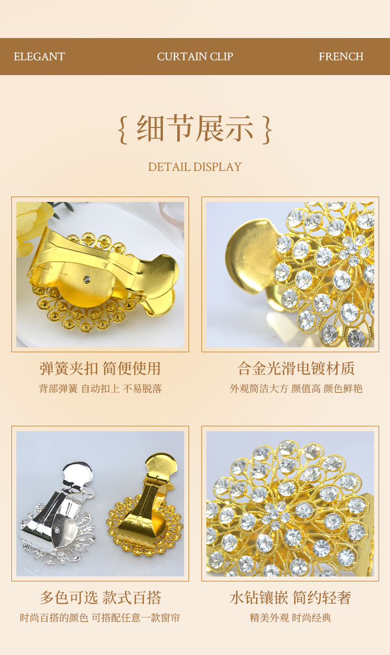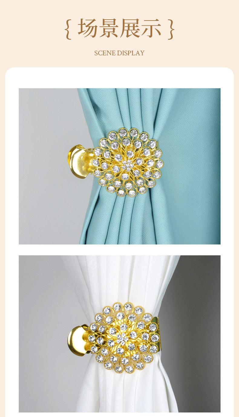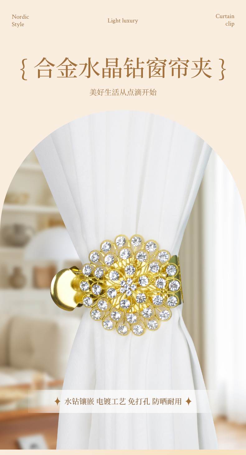유럽과 미국의 국경 합금 커튼 클립 라이트 럭셔리 크리스탈 드릴 커튼 버클 펀치 프리 커튼 고정 크리에이티브 홈 장식