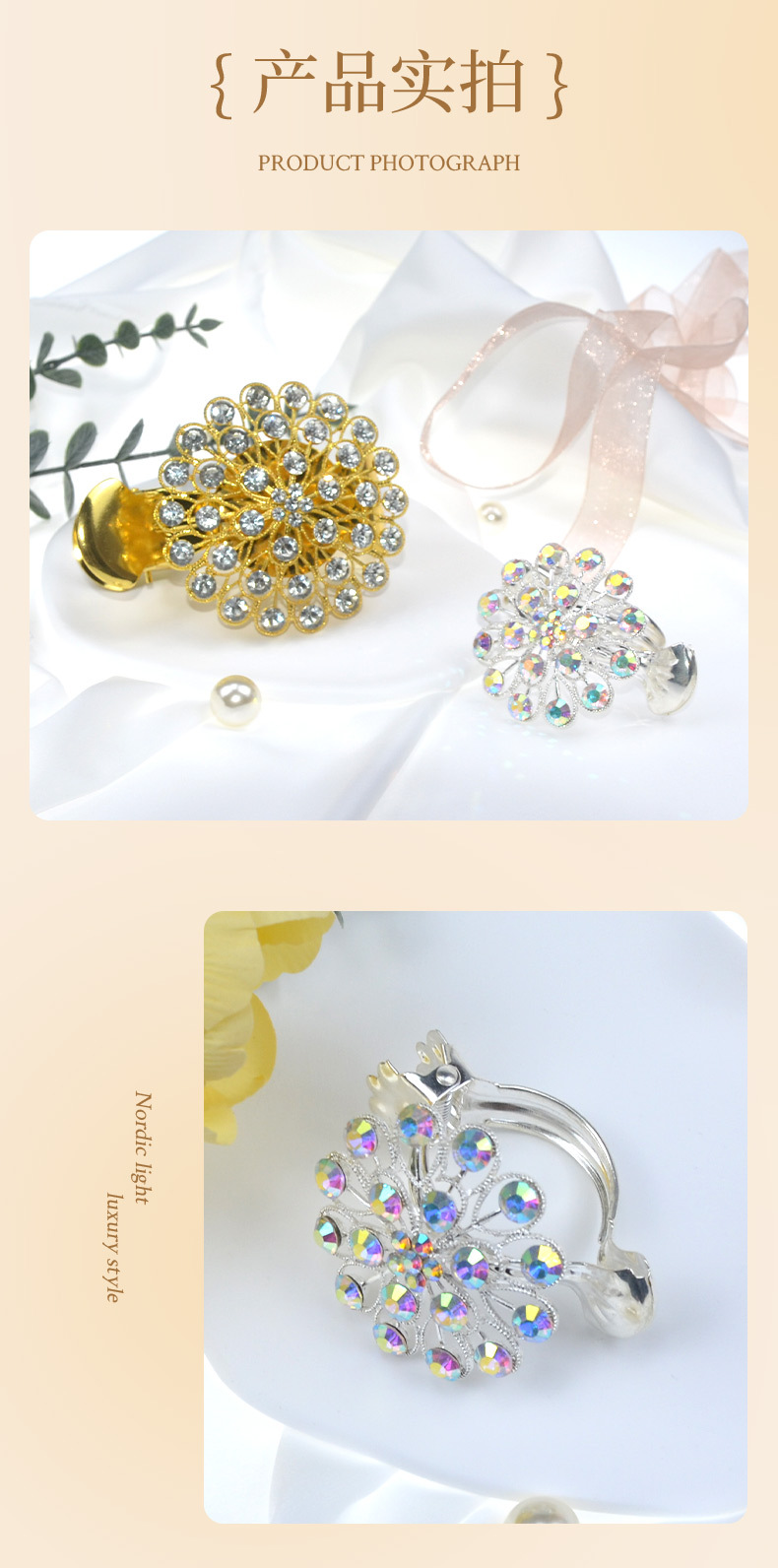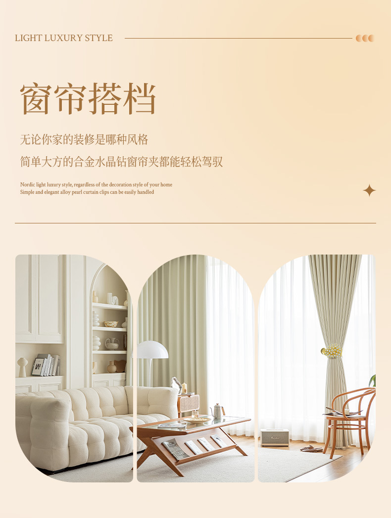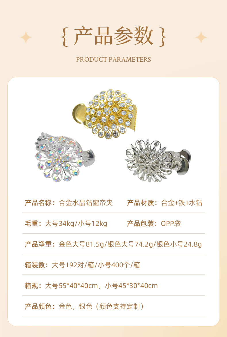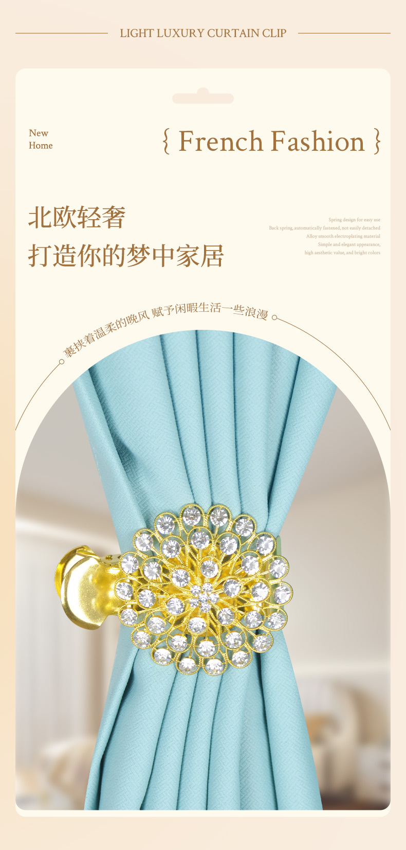 유럽과 미국의 국경 합금 커튼 클립 라이트 럭셔리 크리스탈 드릴 커튼 버클 펀치 프리 커튼 고정 크리에이티브 홈 장식