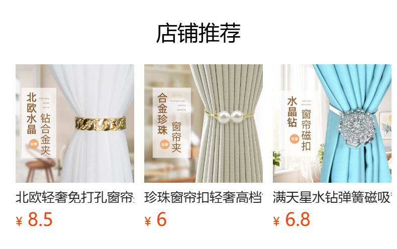 유럽과 미국의 국경 합금 커튼 클립 라이트 럭셔리 크리스탈 드릴 커튼 버클 펀치 프리 커튼 고정 크리에이티브 홈 장식스토어 가기