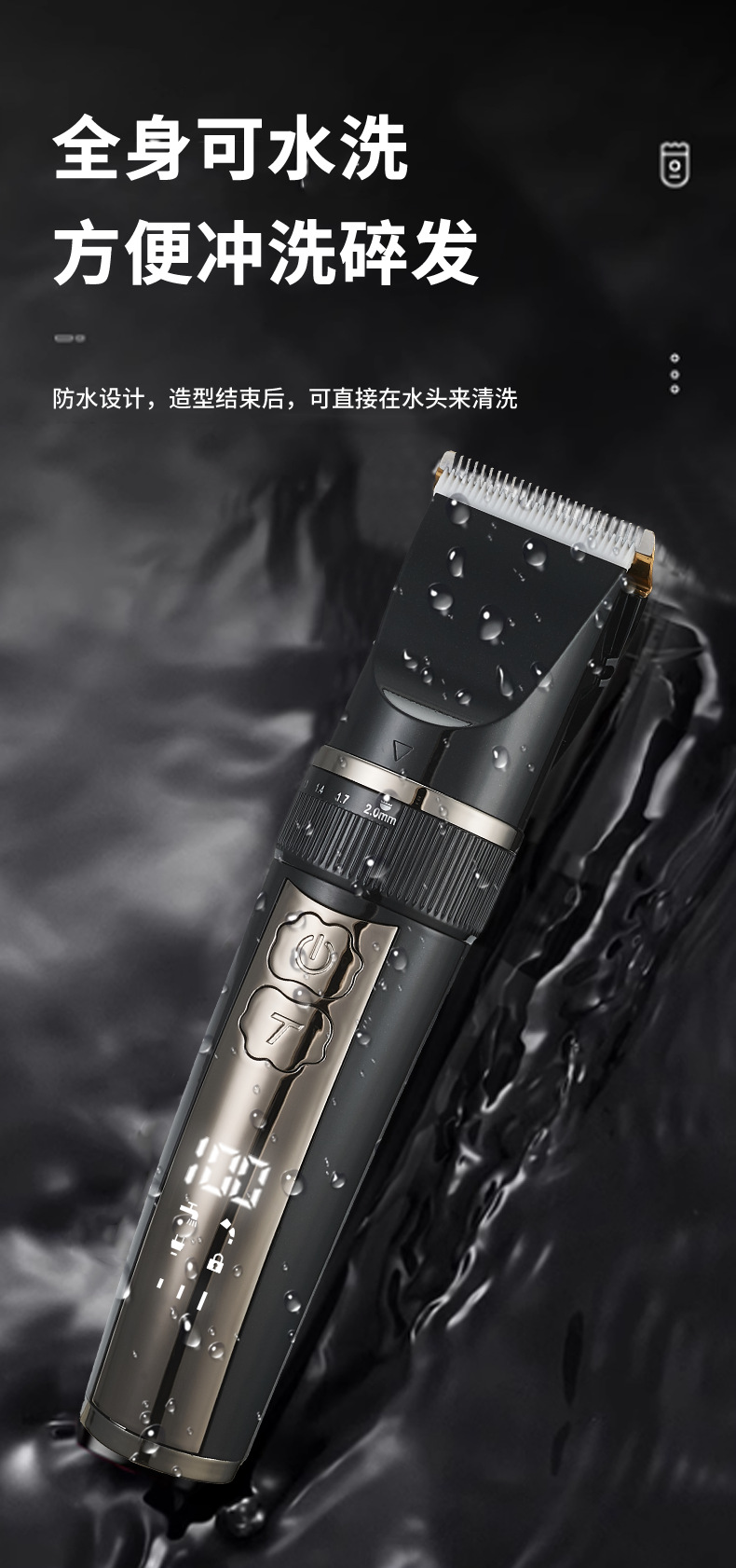 방수 헤어 클리퍼 전기 클리퍼 매우 조용한 헤어 클리퍼 헤어 도구 면도기 LCD 세라믹 커터 헤드 충전 가위