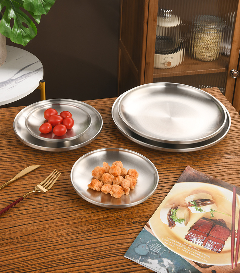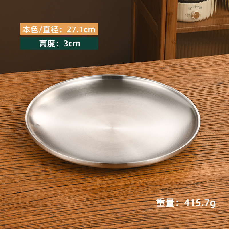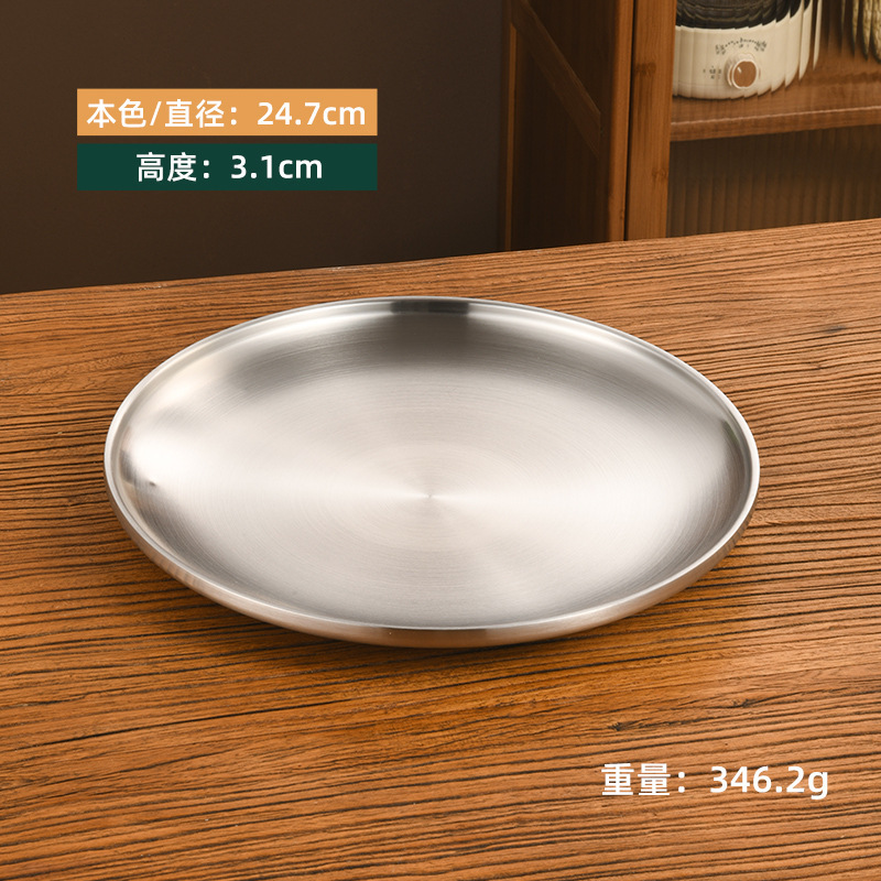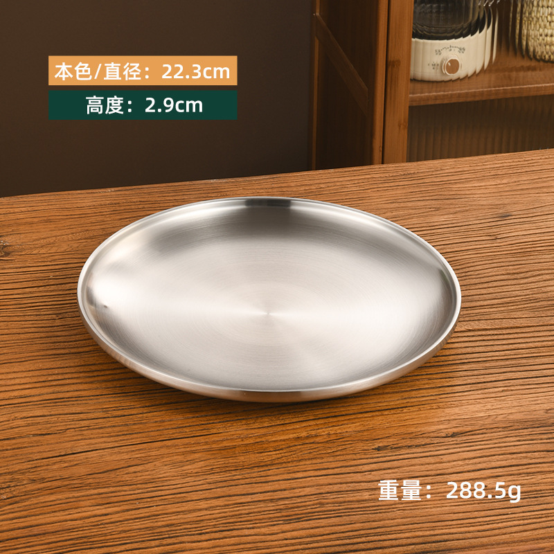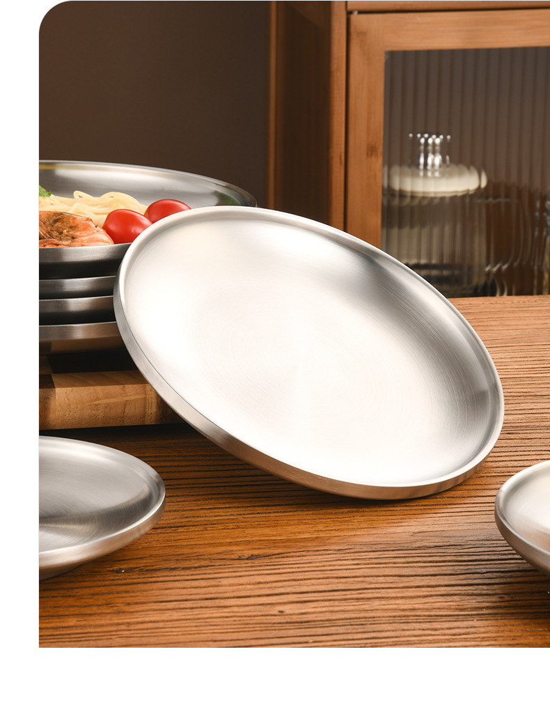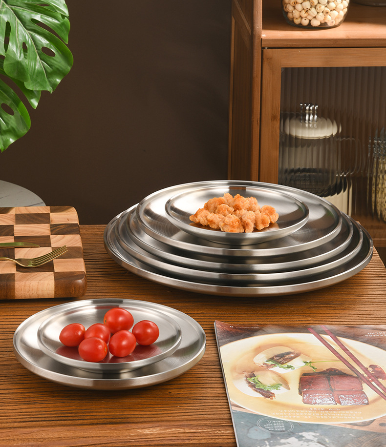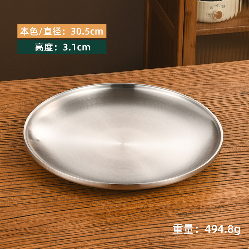 한국 스타일 두꺼운 스테인레스 스틸 더블 레이어 바베큐 플레이트 상업용 가정용 디저트 샵 바베큐 트레이 크리에이티브 라운드 웨스턴 푸드 플레이트스토어 가기