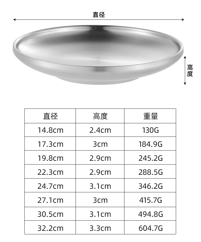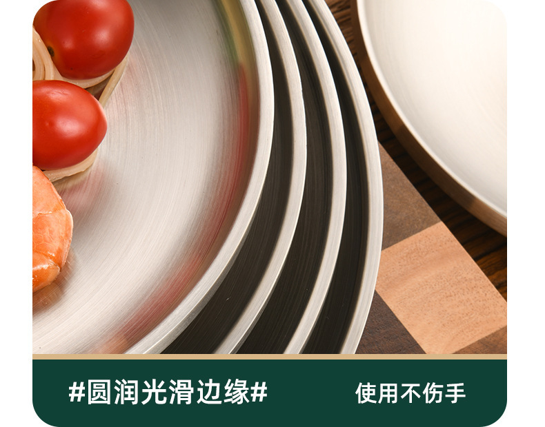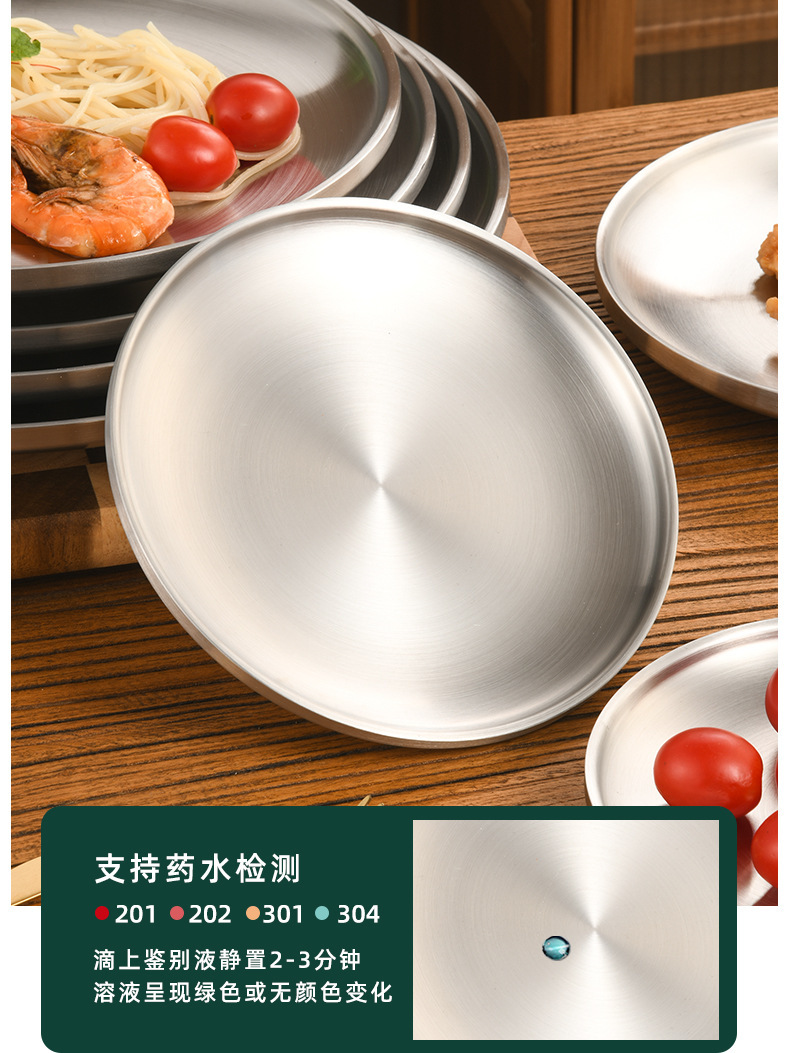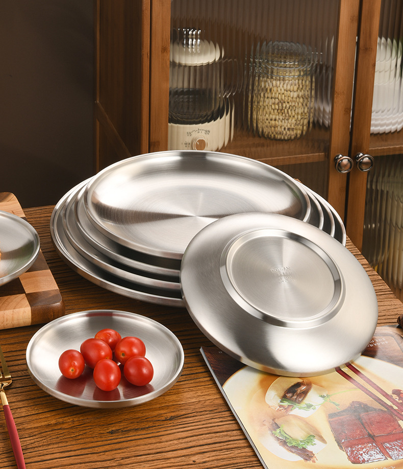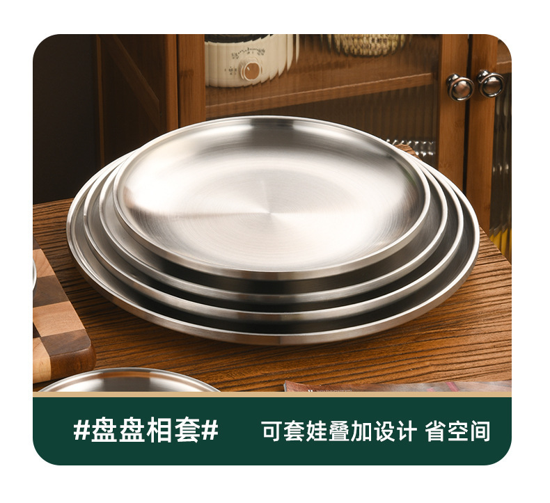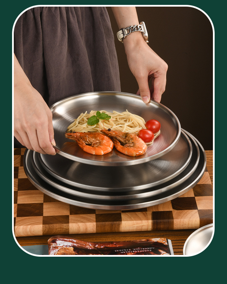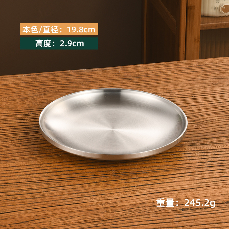 한국 스타일 두꺼운 스테인레스 스틸 더블 레이어 바베큐 플레이트 상업용 가정용 디저트 샵 바베큐 트레이 크리에이티브 라운드 웨스턴 푸드 플레이트스토어 가기