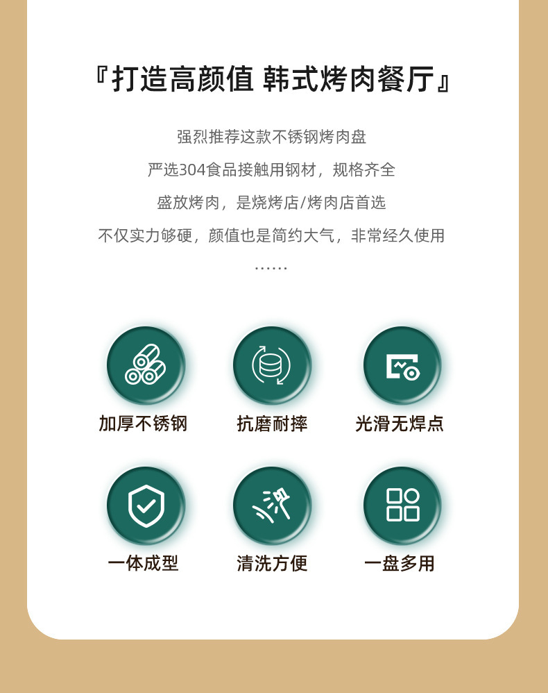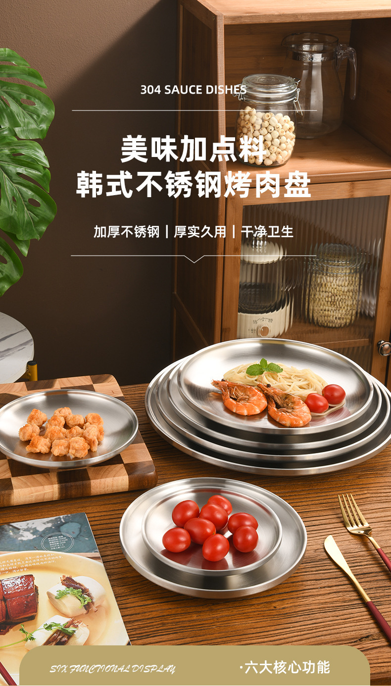 한국 스타일 두꺼운 스테인레스 스틸 더블 레이어 바베큐 플레이트 상업용 가정용 디저트 샵 바베큐 트레이 크리에이티브 라운드 웨스턴 푸드 플레이트