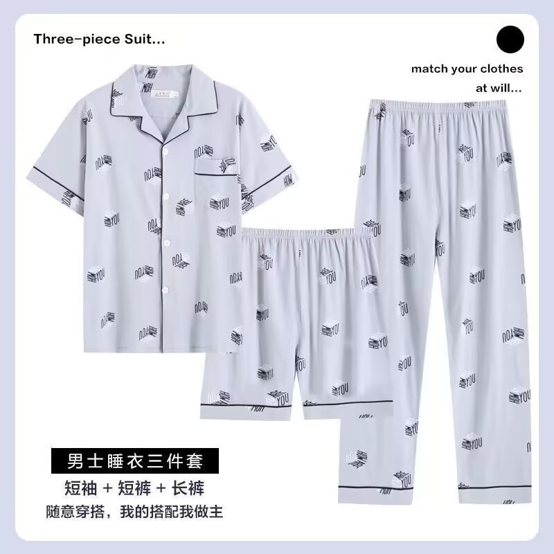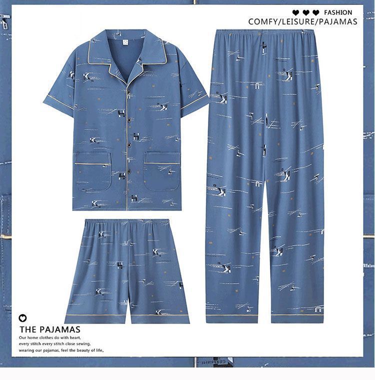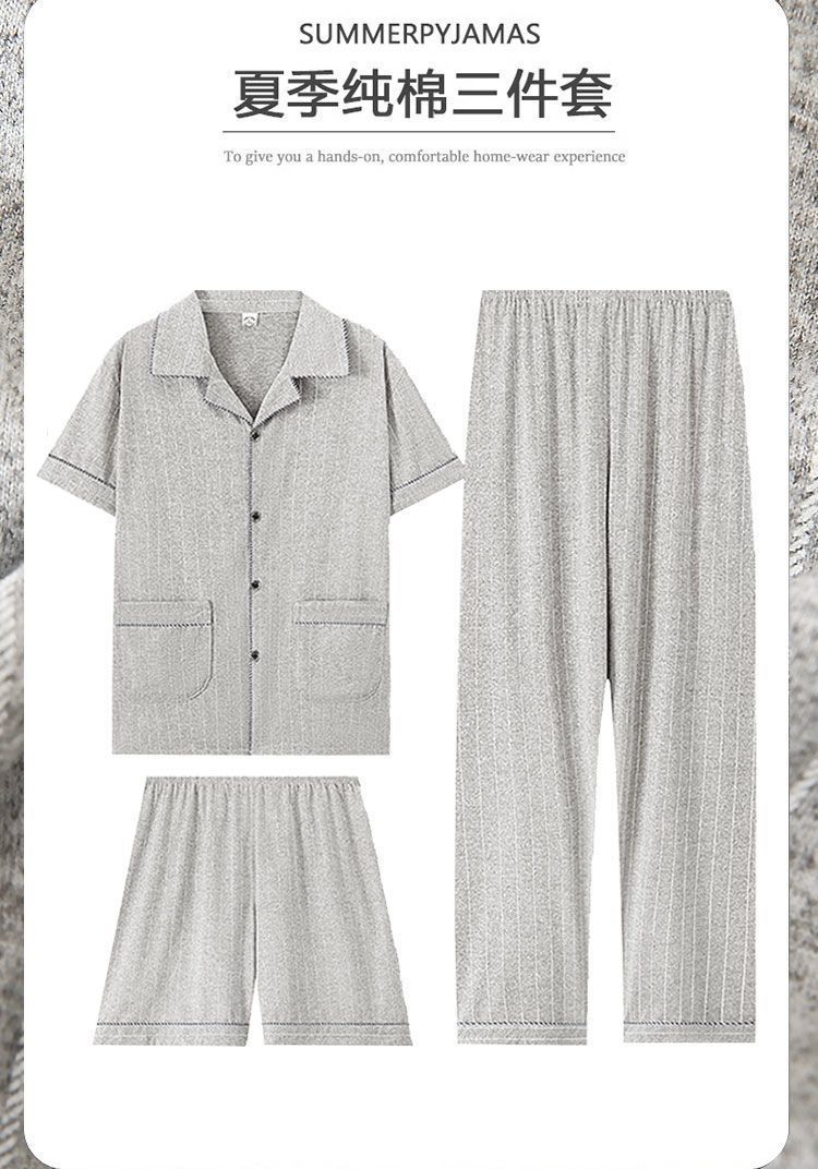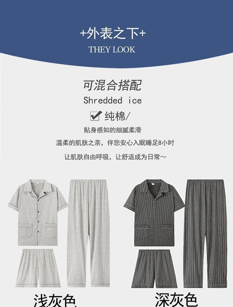 순면 잠옷 남자 여름 2024 새로운 중년 및 노인 반팔 얇은 봄과 가을 남자 캐주얼 홈 의류 세트스토어 가기