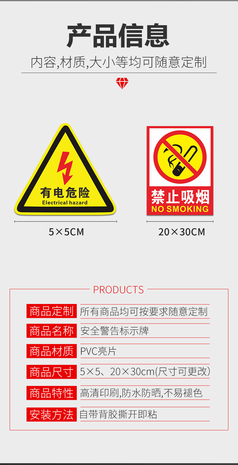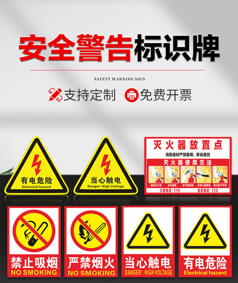 전기 위험 경고 표지판이있는 PVC 화재 예방 표지판, 감전, 금연, 불꽃 놀이, 표지판에주의하십시오스토어 가기