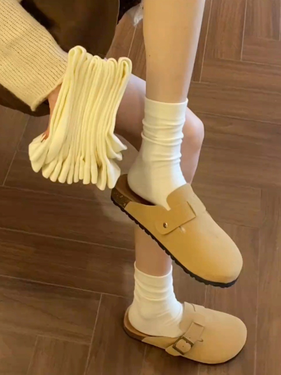 Yuezi 양말 여름 여성용 코튼 얇은 중간 튜브 루즈 핏 짧은 주지 땀 흡수 통기성 얕은 샌들 데오도란트스토어 가기