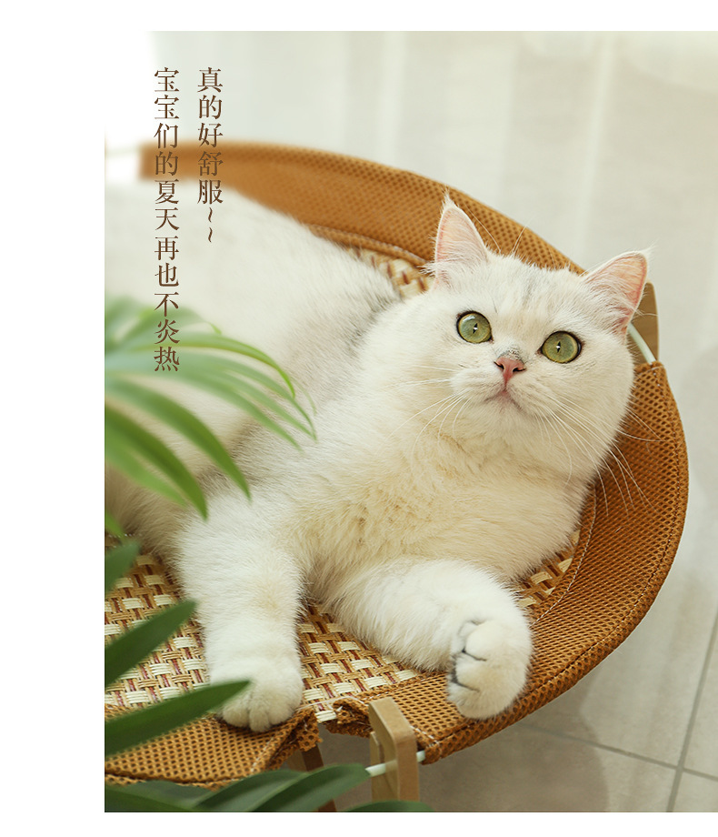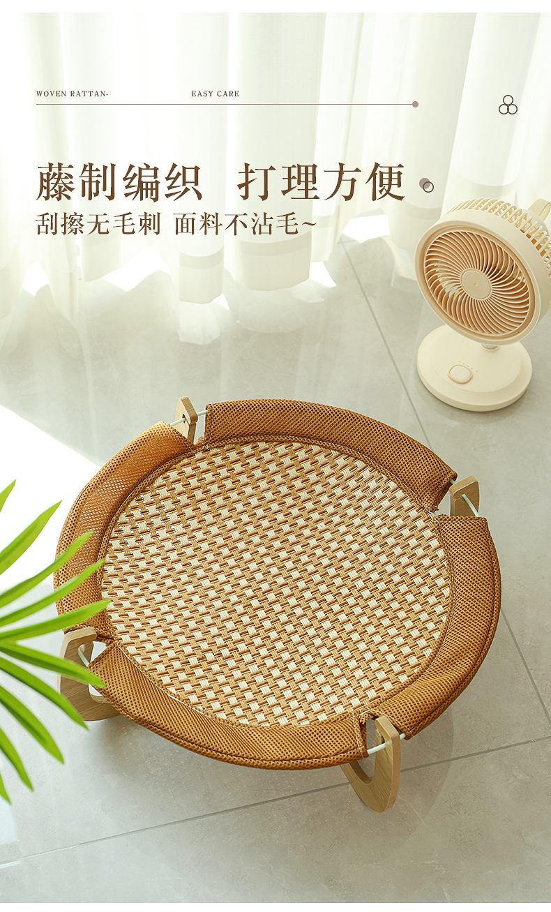 여름 매트 둥근 발 캠프 침대 고양이 침대 시원한 느낌 등나무 침대 시원하고 편안한 고양이 통기성 밤새스토어 가기