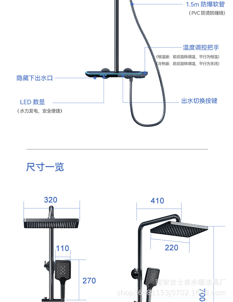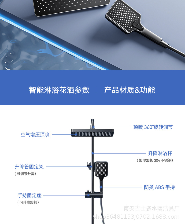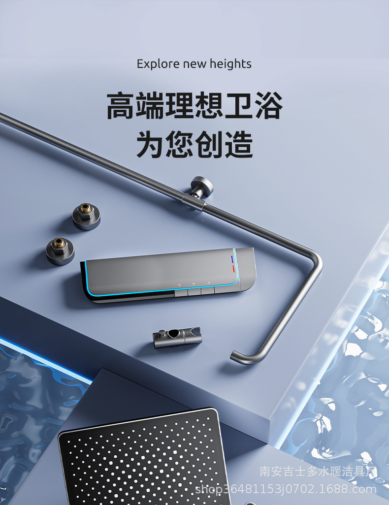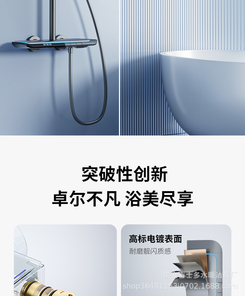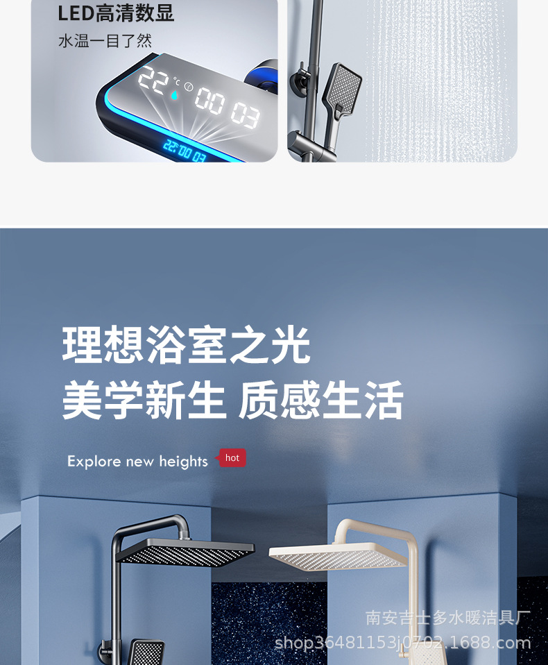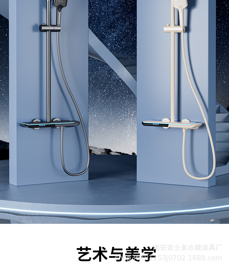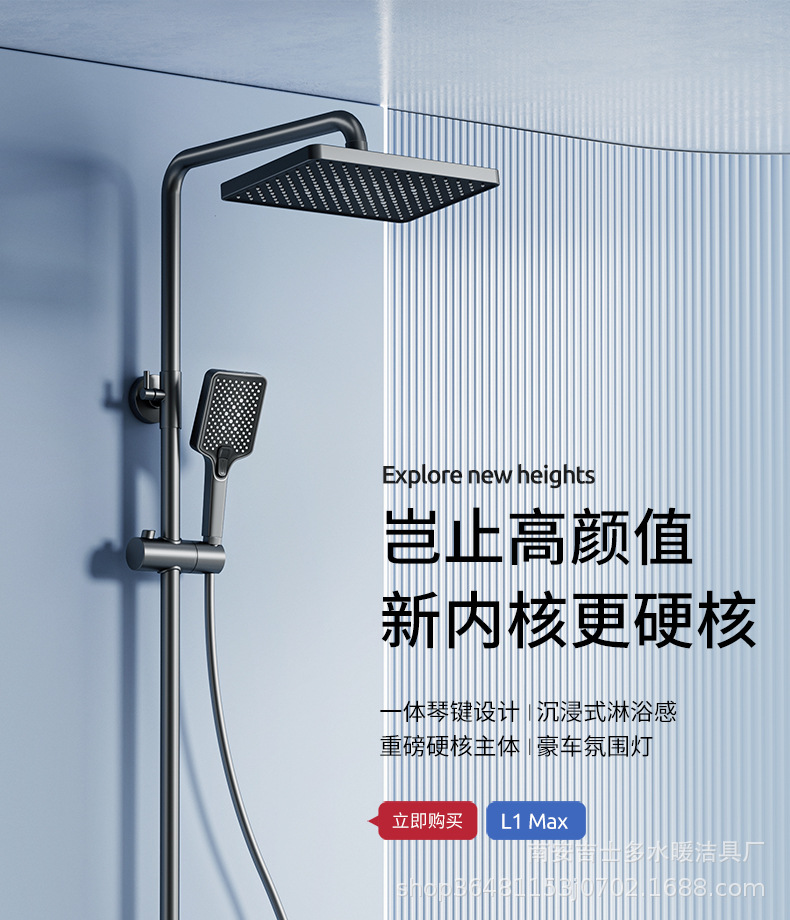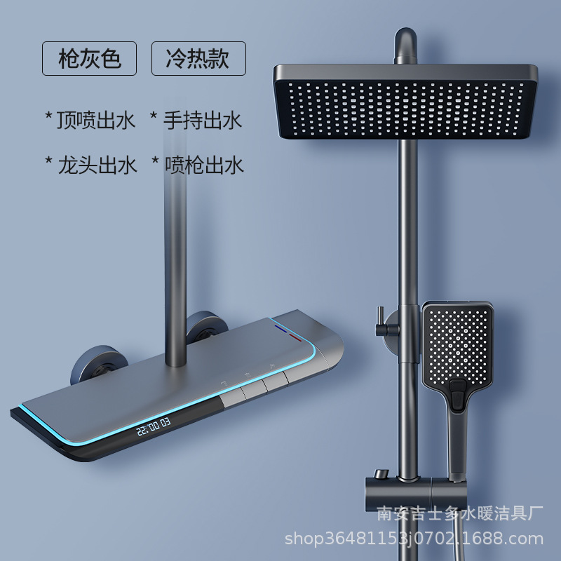 독일 총 회색 피아노 키 일정한 온도 샤워 샤워 세트 욕실 디지털 디스플레이 빗속에서 가구 가압 입욕스토어 가기