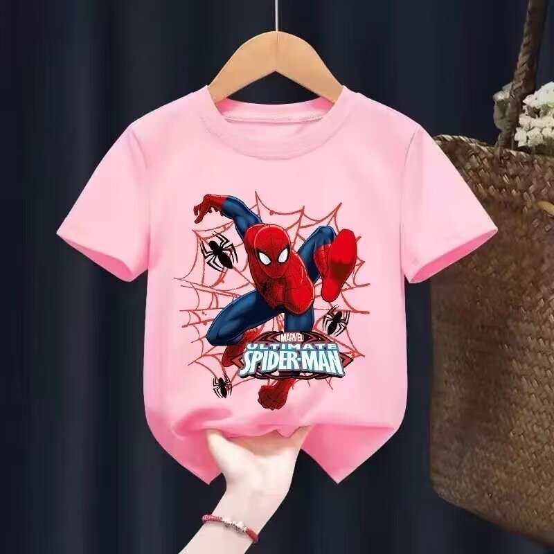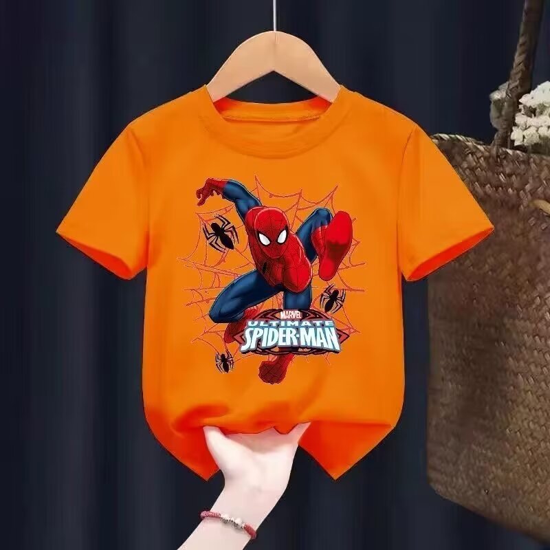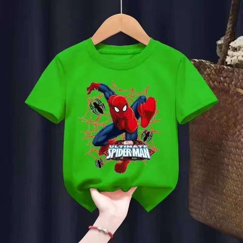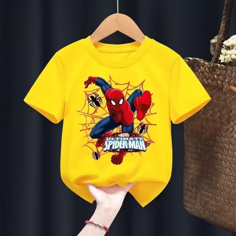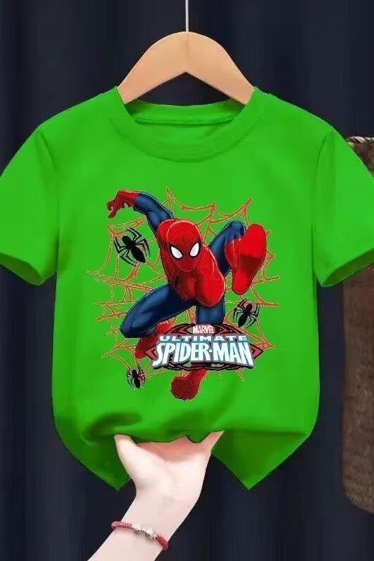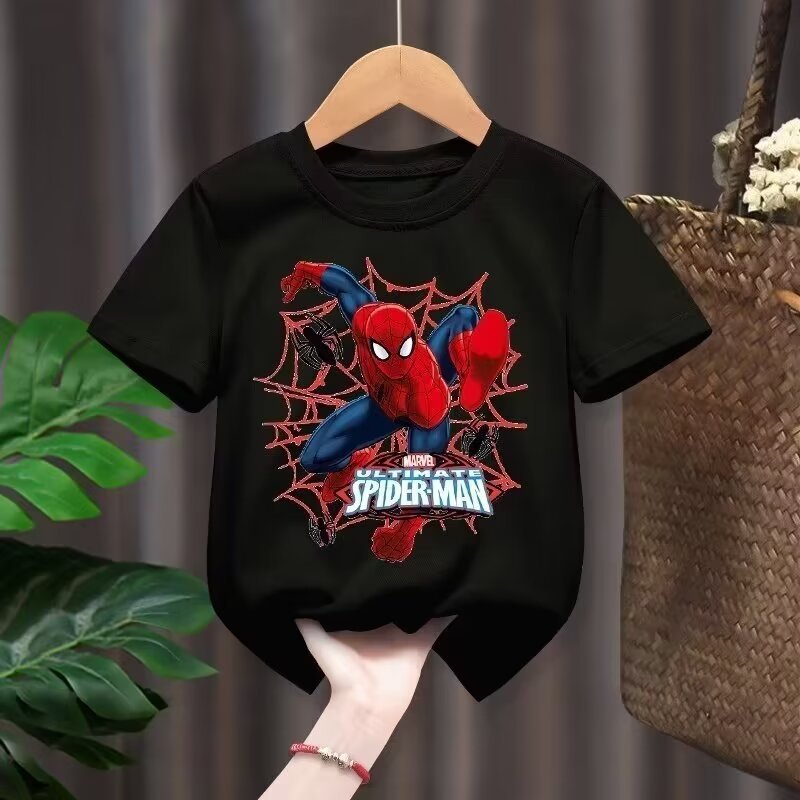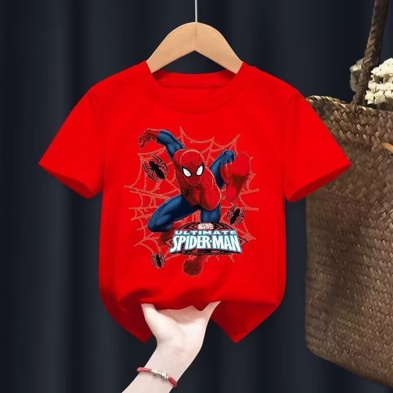 2024 새로운 아동복 반팔 티셔츠 소년 패션 브랜드 유럽과 미국의 힙합 만화 스파이더 탑 여름 반소매 셔츠