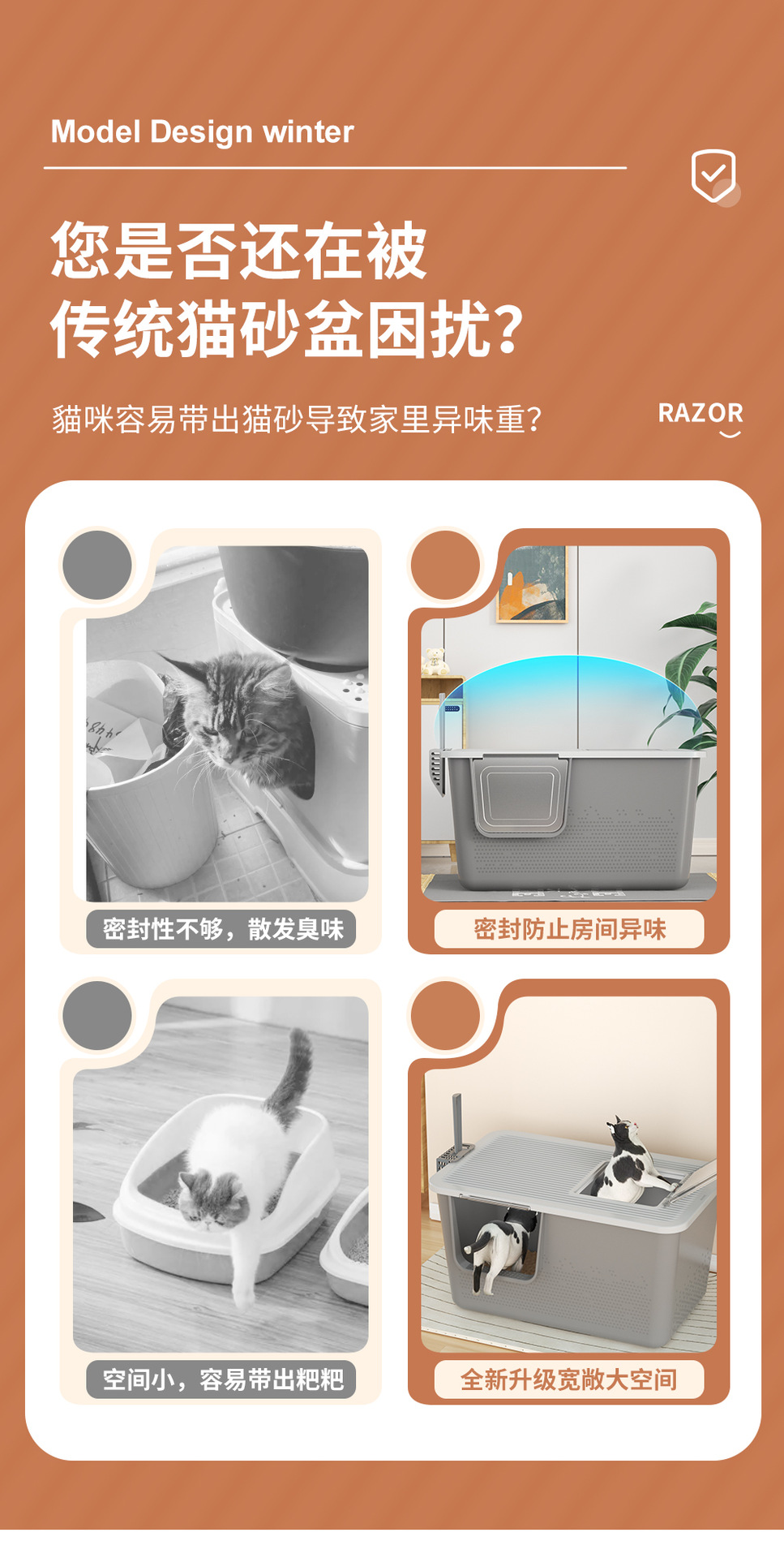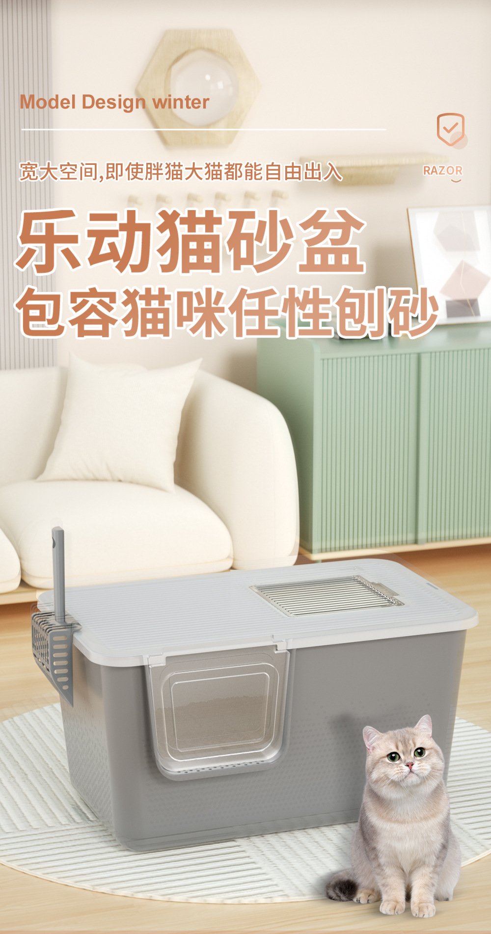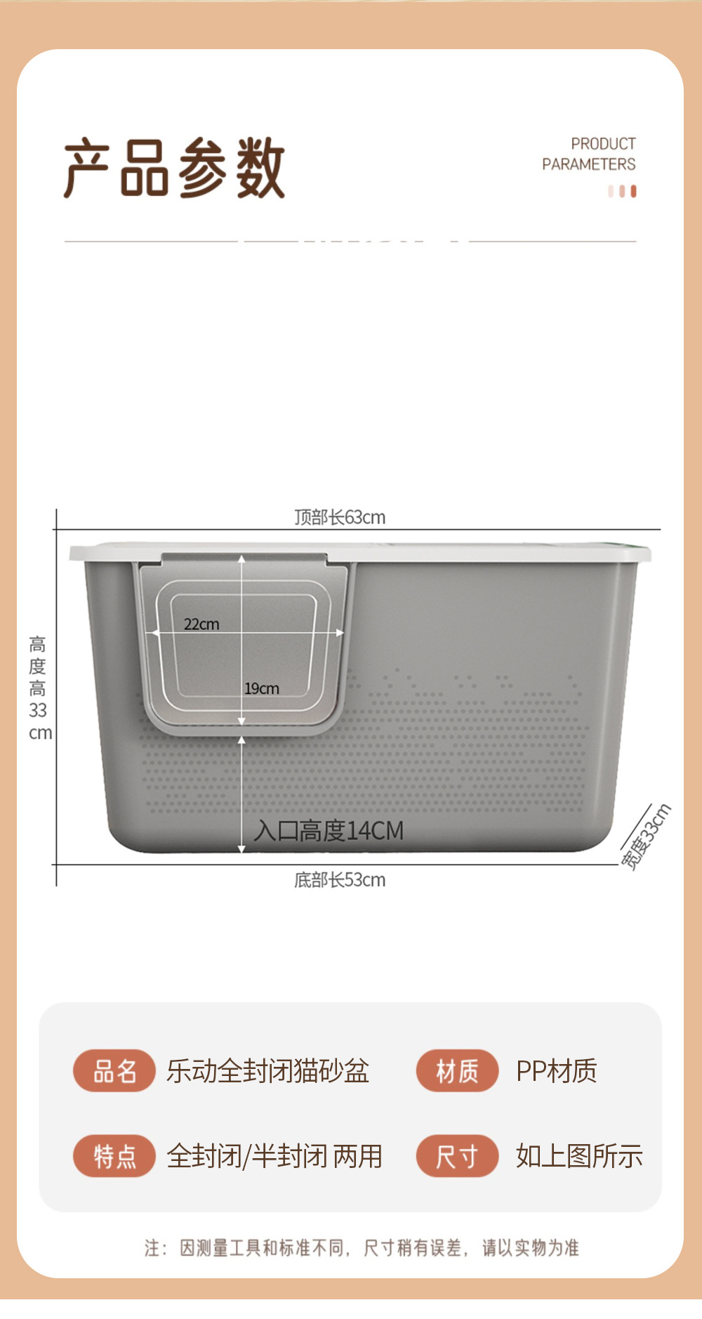 -产品名称 : 大猫全封闭(半封闭)猫砂盆