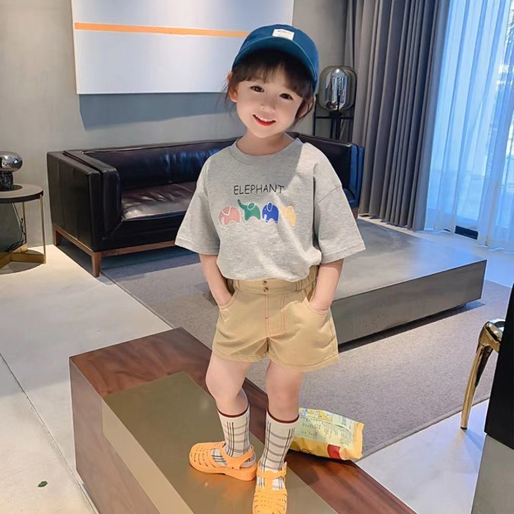 여자 반팔 티셔츠 한국 스타일 2024 여름 새로운 아기 스타일 캐주얼 탑 어린이 만화베이스 셔츠 얇은스토어 가기