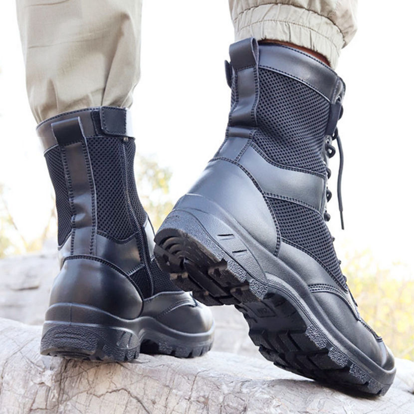 여름 통기성 부츠 남성 메쉬 작업복 부츠 지퍼 하이 탑 마틴 부츠 보안 신발 보안 체크 남성 및 여성 노동 보호