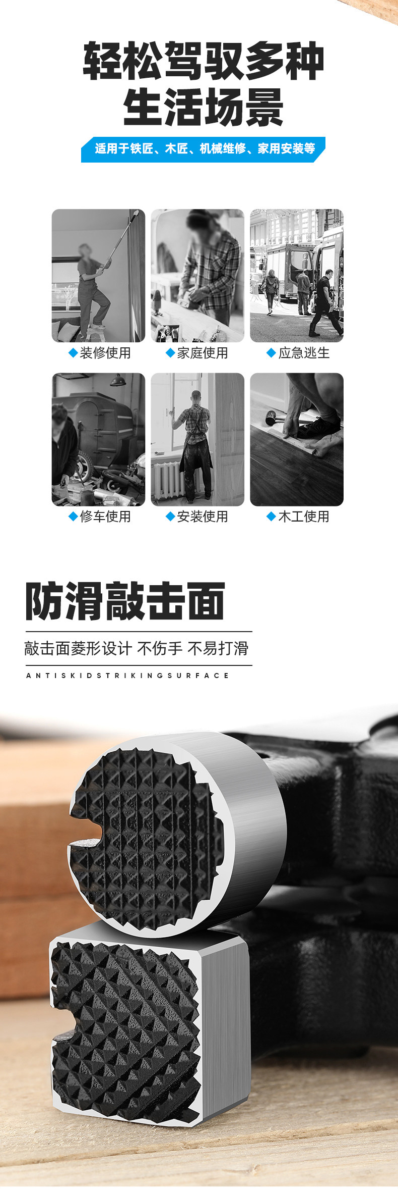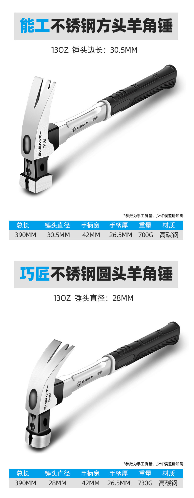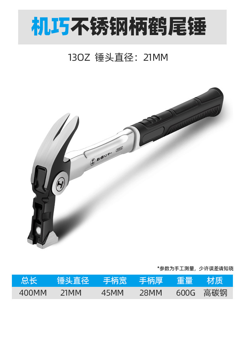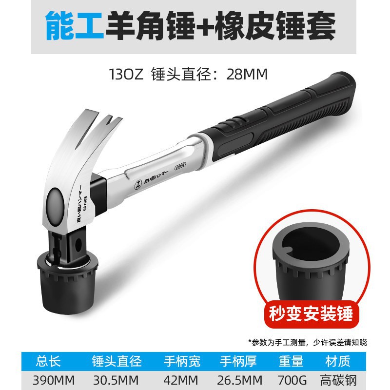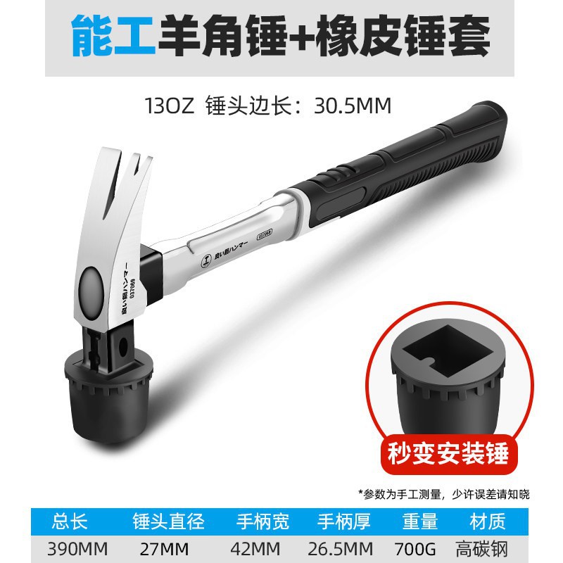• [하나의 해머 겸용] 13OZ 사각 헤드 스테인레스 스틸 핸들 + 고무 해머 헤드