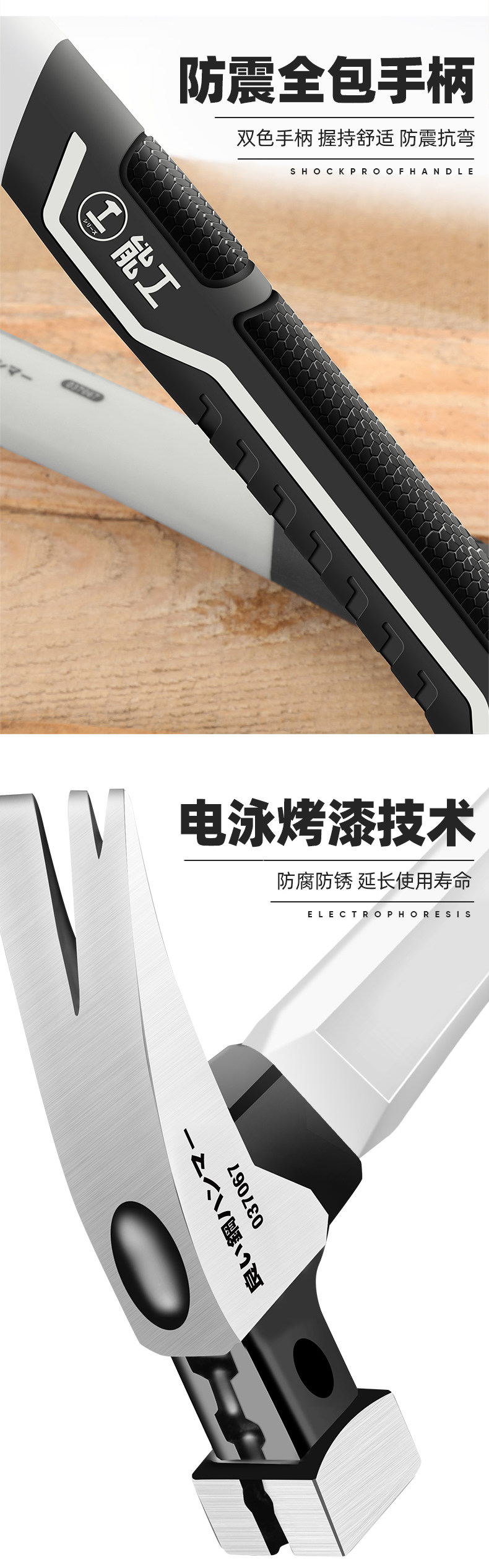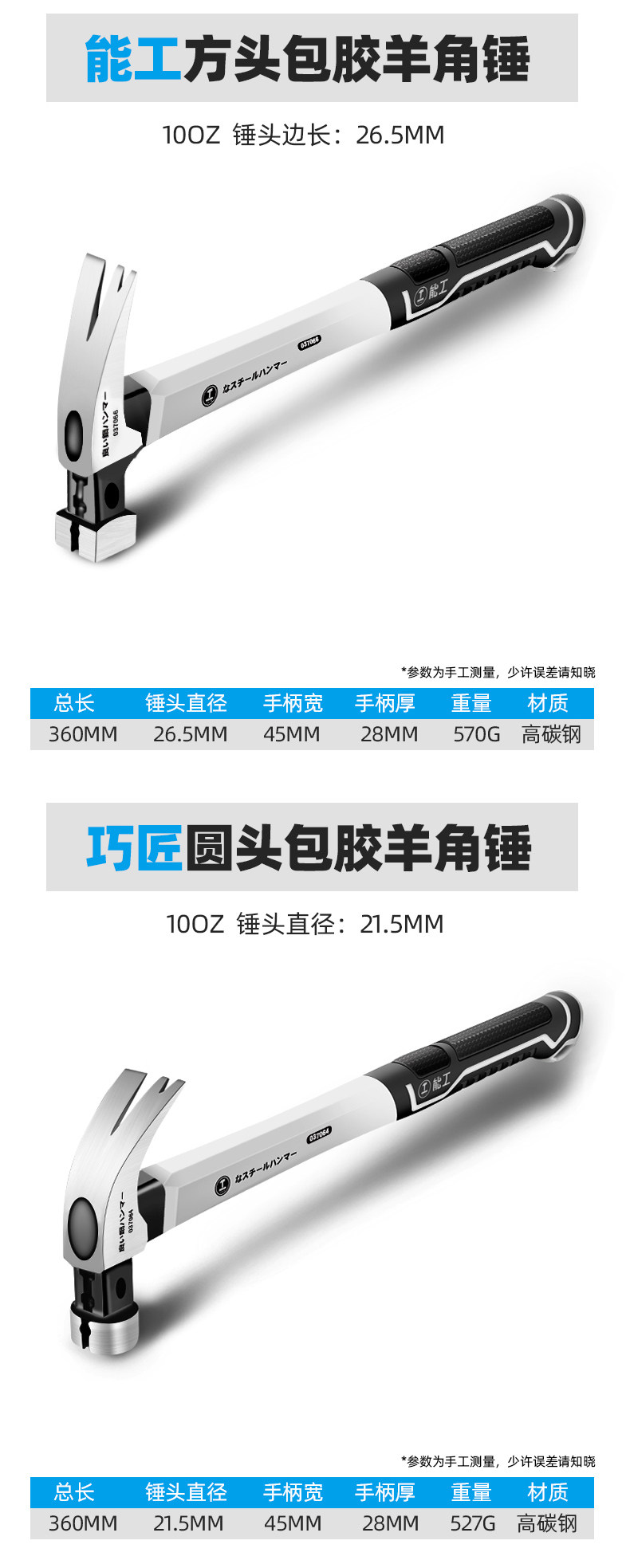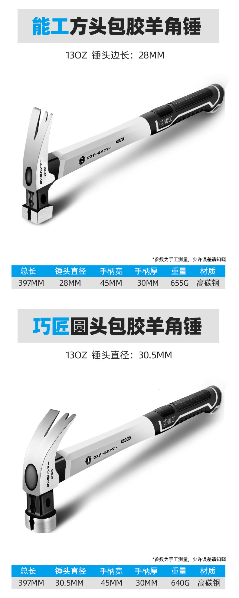 • [하나의 해머 겸용] 13OZ 사각 헤드 스테인레스 스틸 핸들 + 고무 해머 헤드