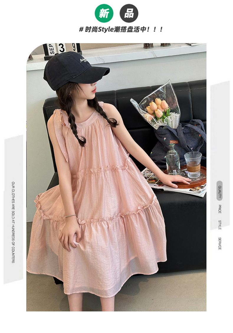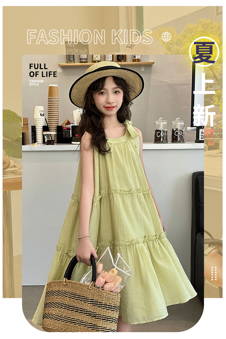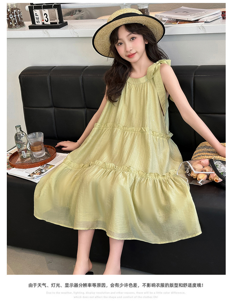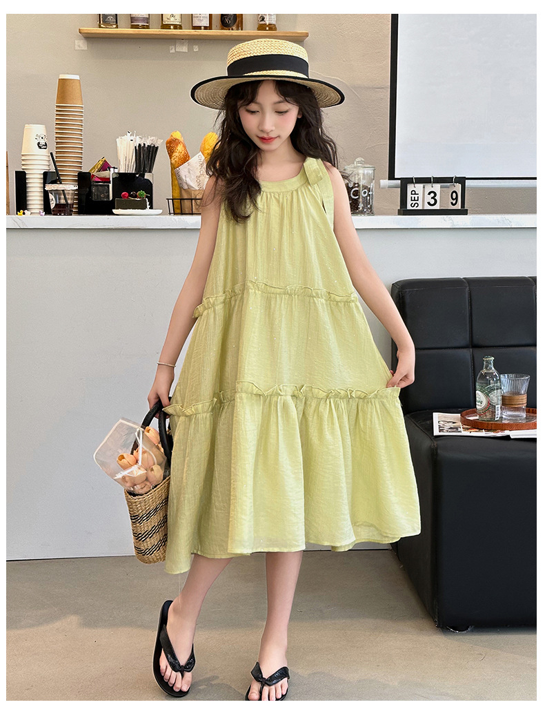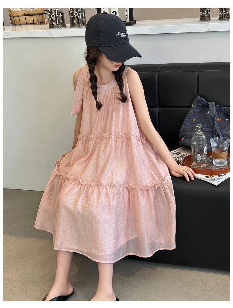 소녀의 큰 소년의 원피스 여름 2024 새로운 어린이 소녀 스타일리스트 조끼 공주 치마 시폰 긴 치마 여름 원피스스토어 가기