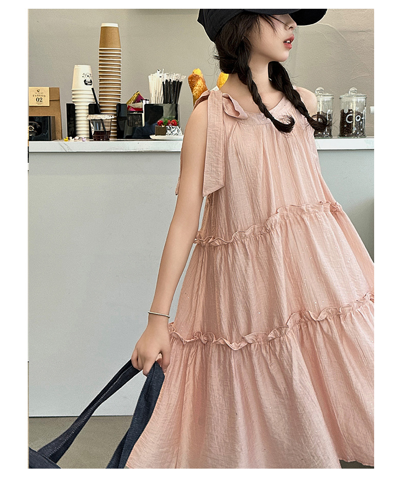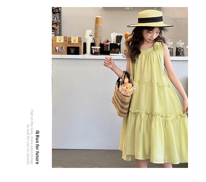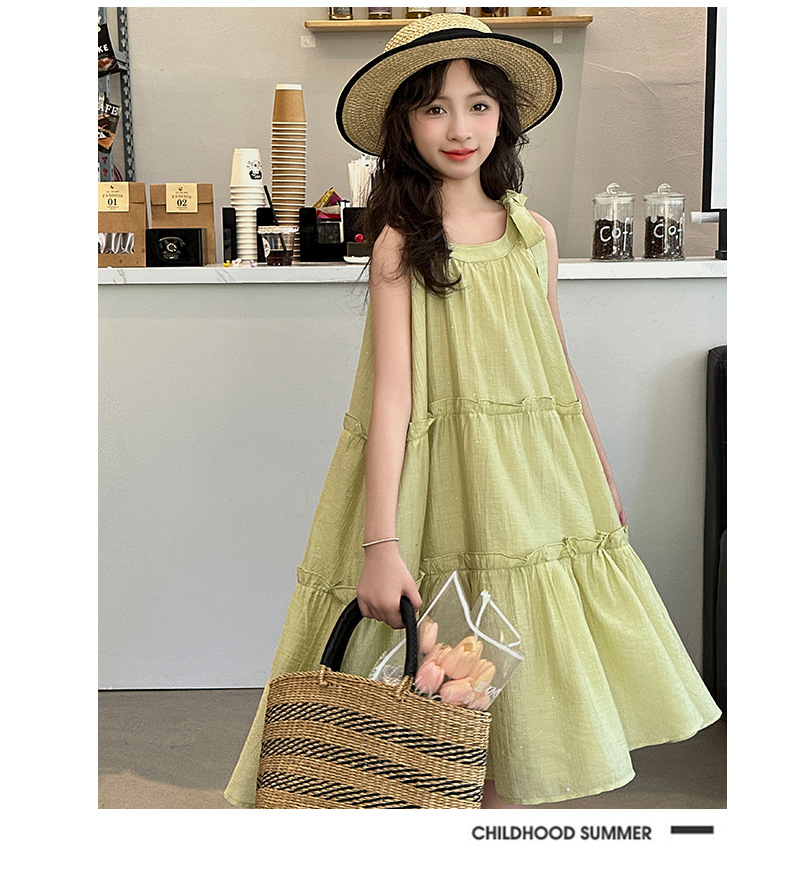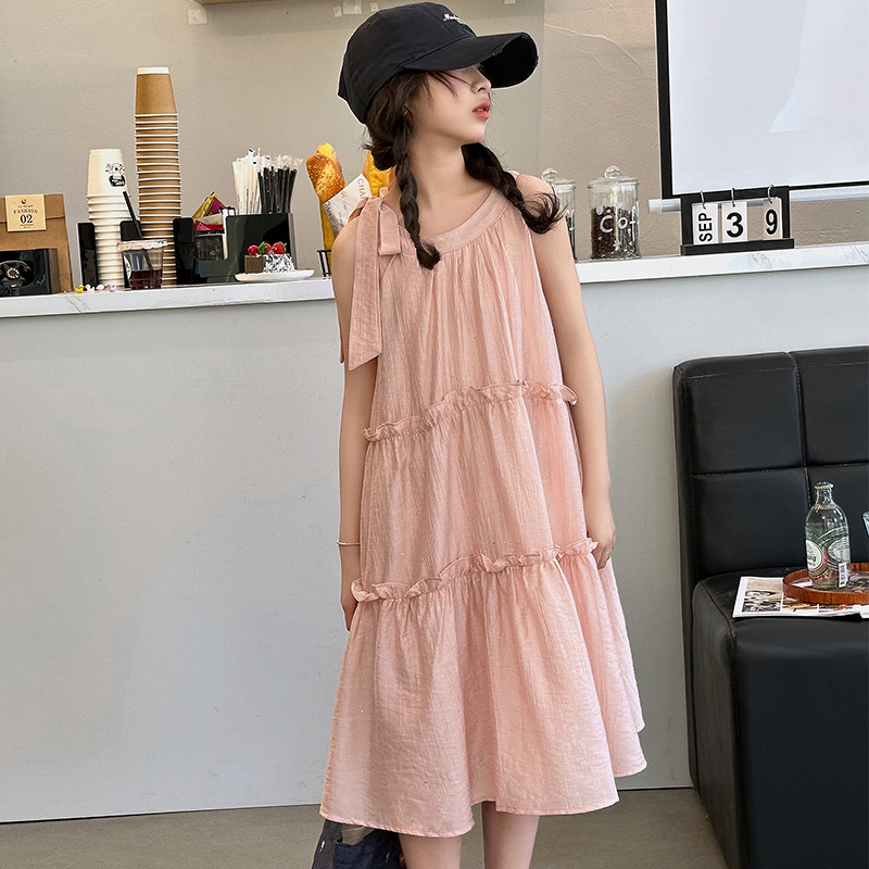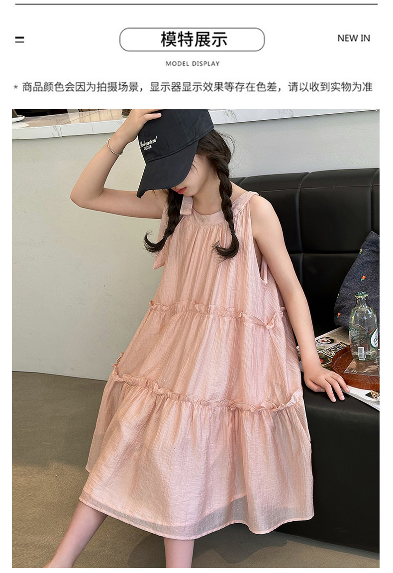 소녀의 큰 소년의 원피스 여름 2024 새로운 어린이 소녀 스타일리스트 조끼 공주 치마 시폰 긴 치마 여름 원피스스토어 가기