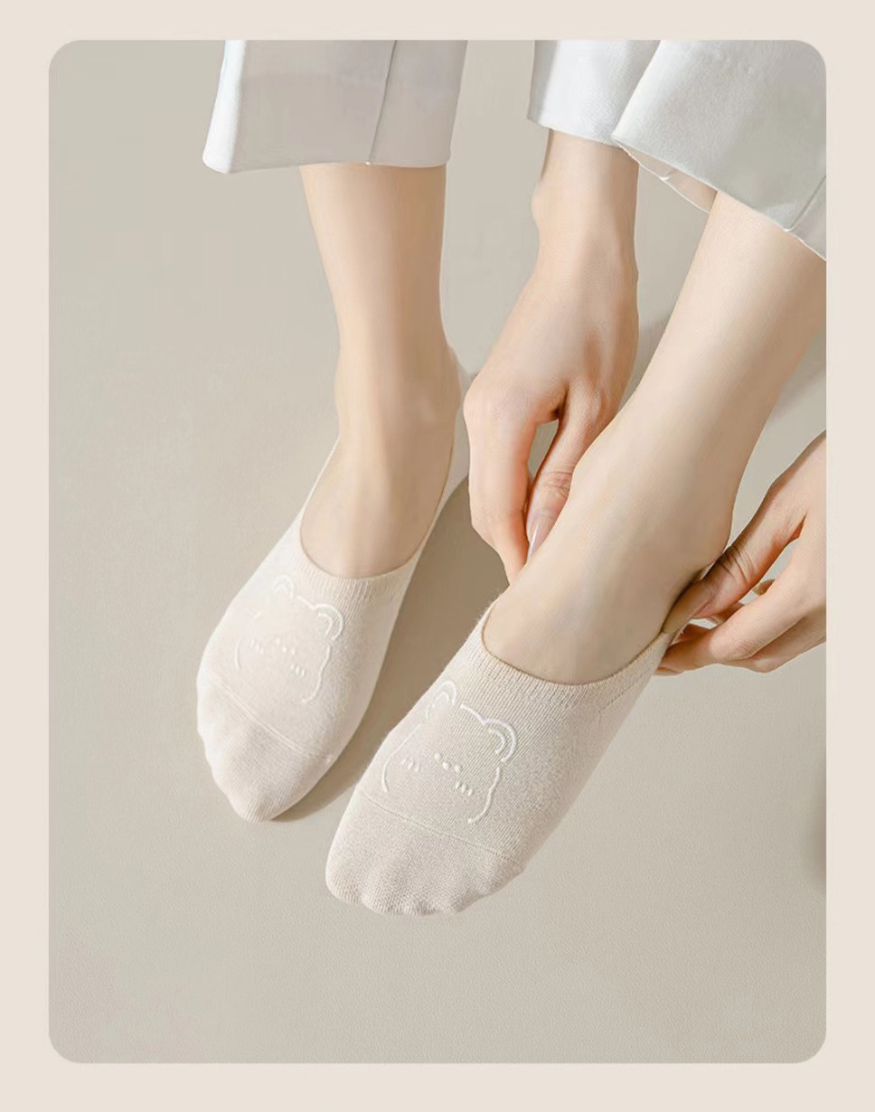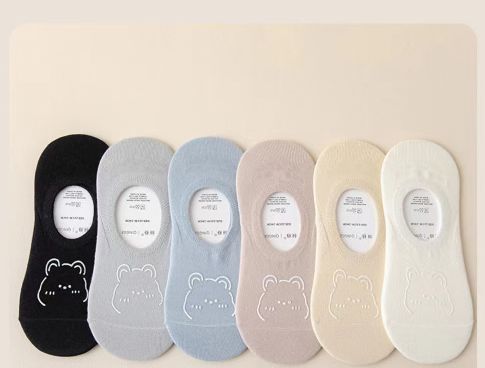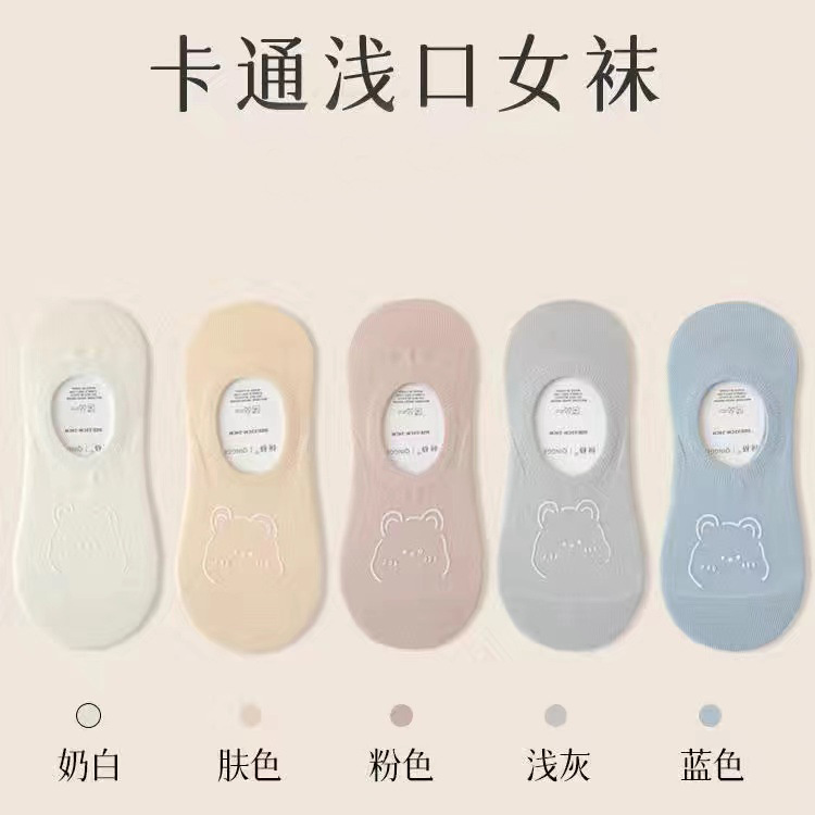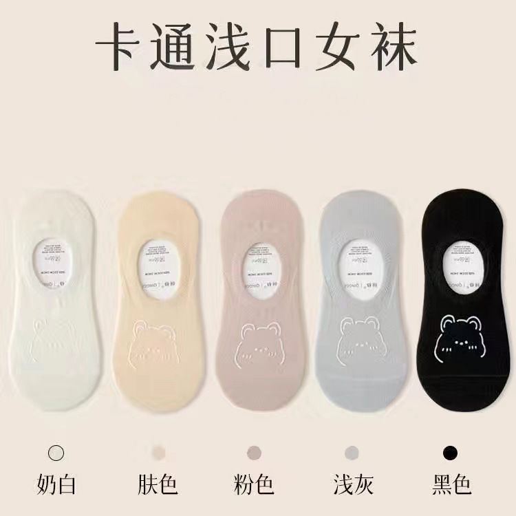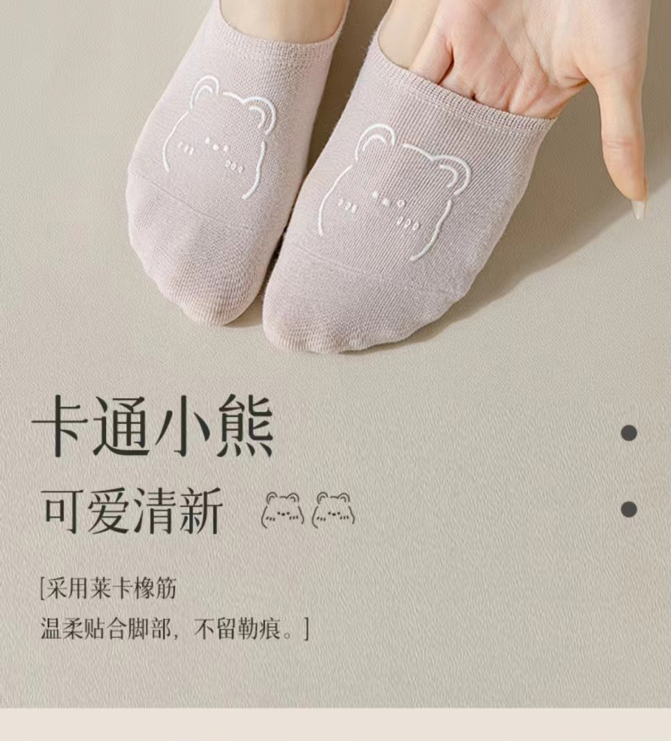여름 보트 양말 보이지 않는 양말 여성 울트라 얇은 만화 곰 양말 한국 스타일 땀 흡수 통기성 로우 탑 여성 양말