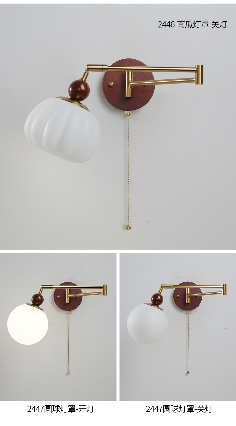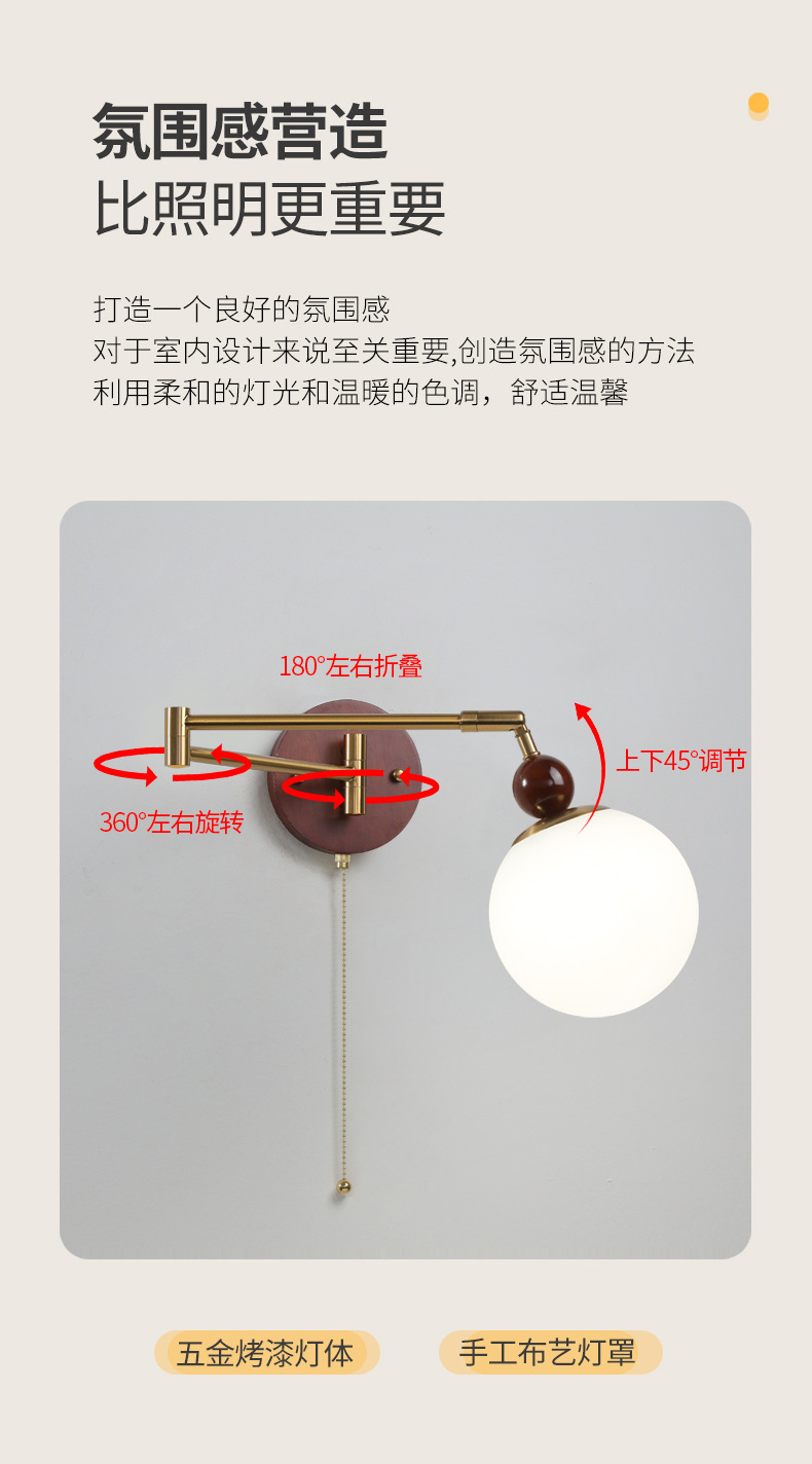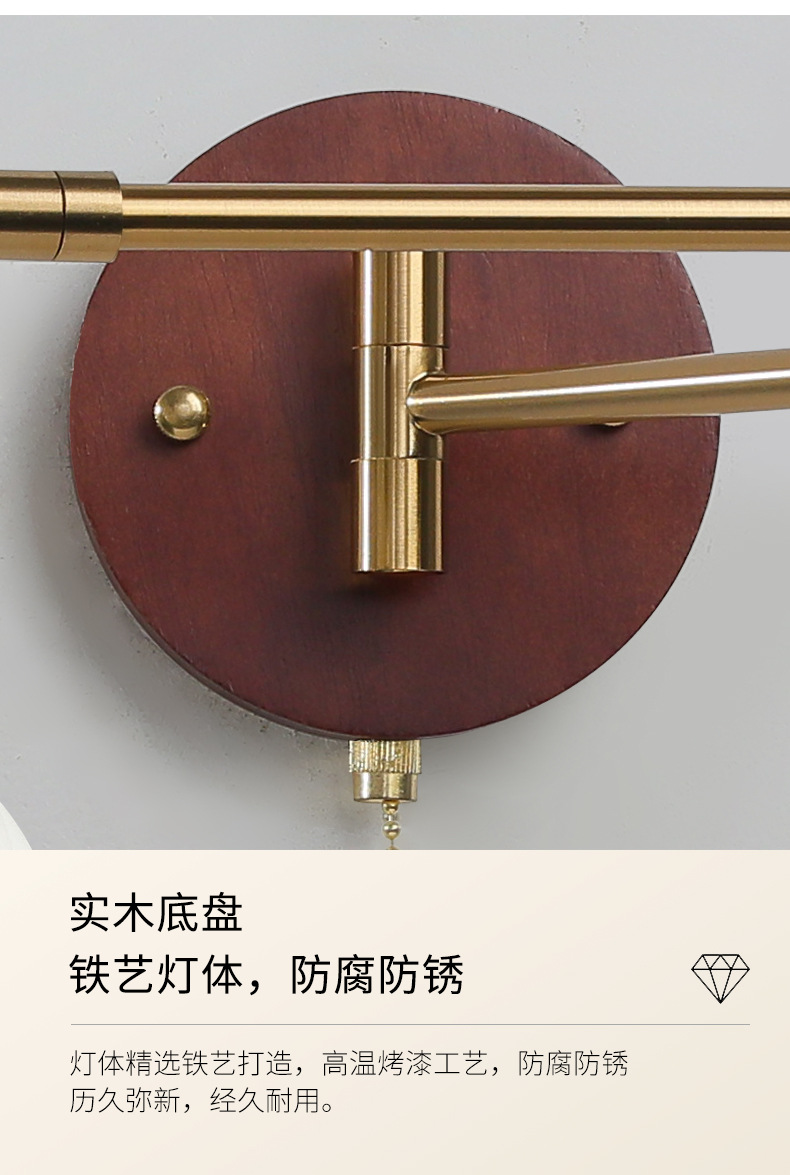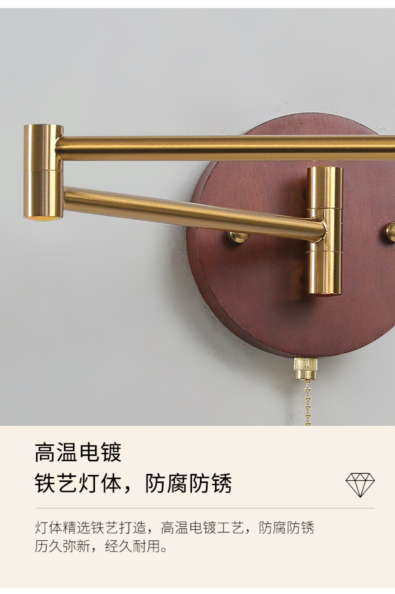 중간 고대 스타일의 침실 침대 옆 벽 램프 변위 가능한 로커 램프 크림 바람 접이식 개폐식 연구 독서 램프