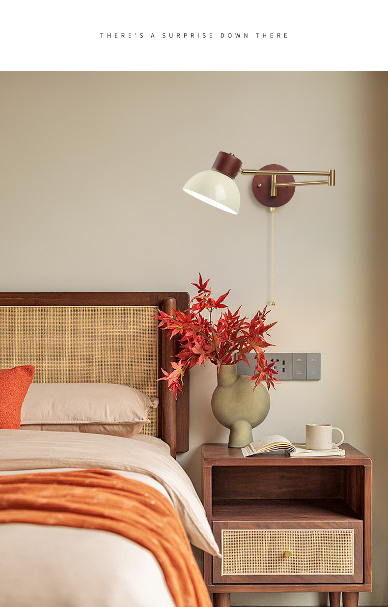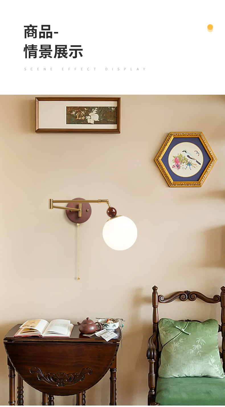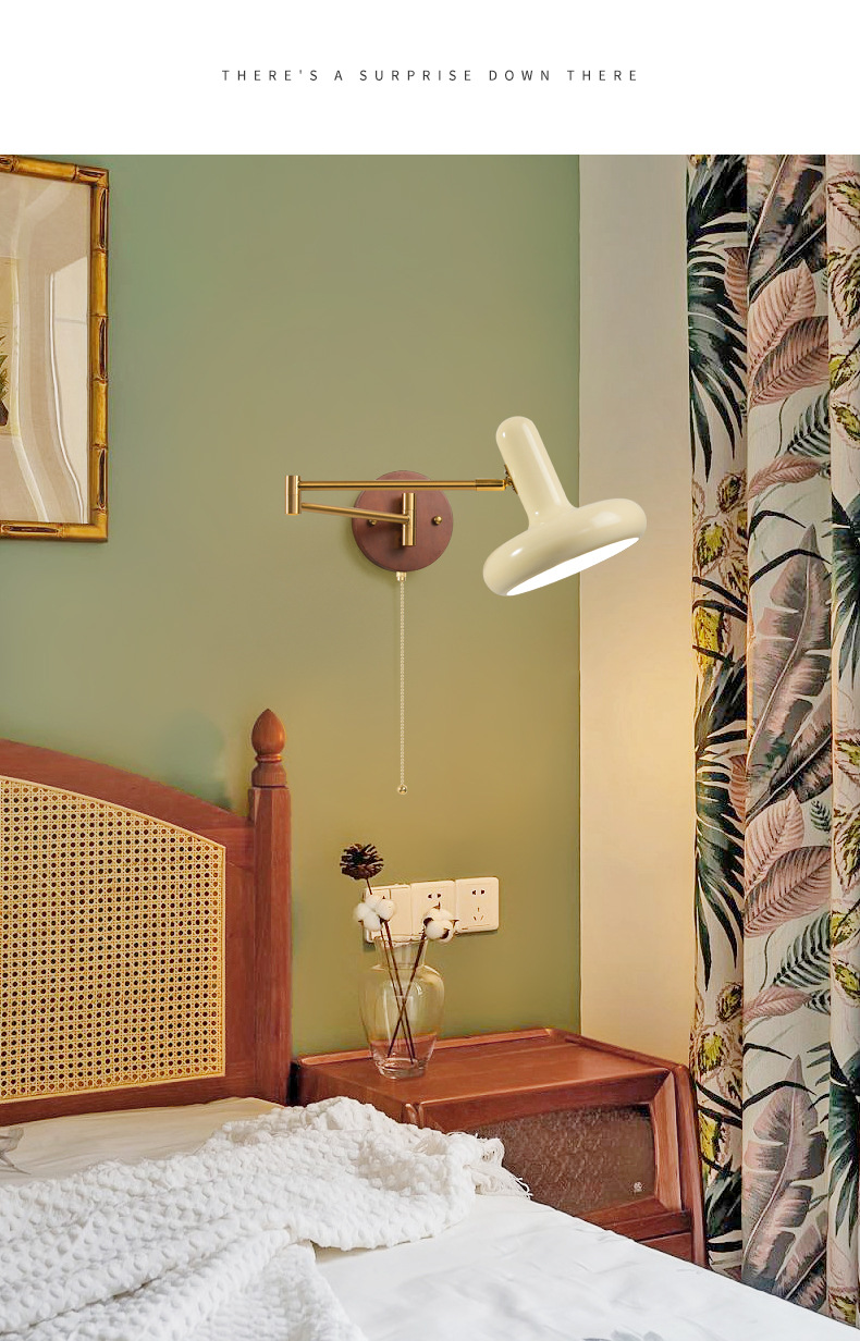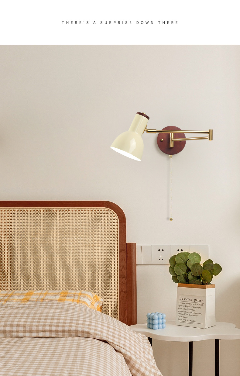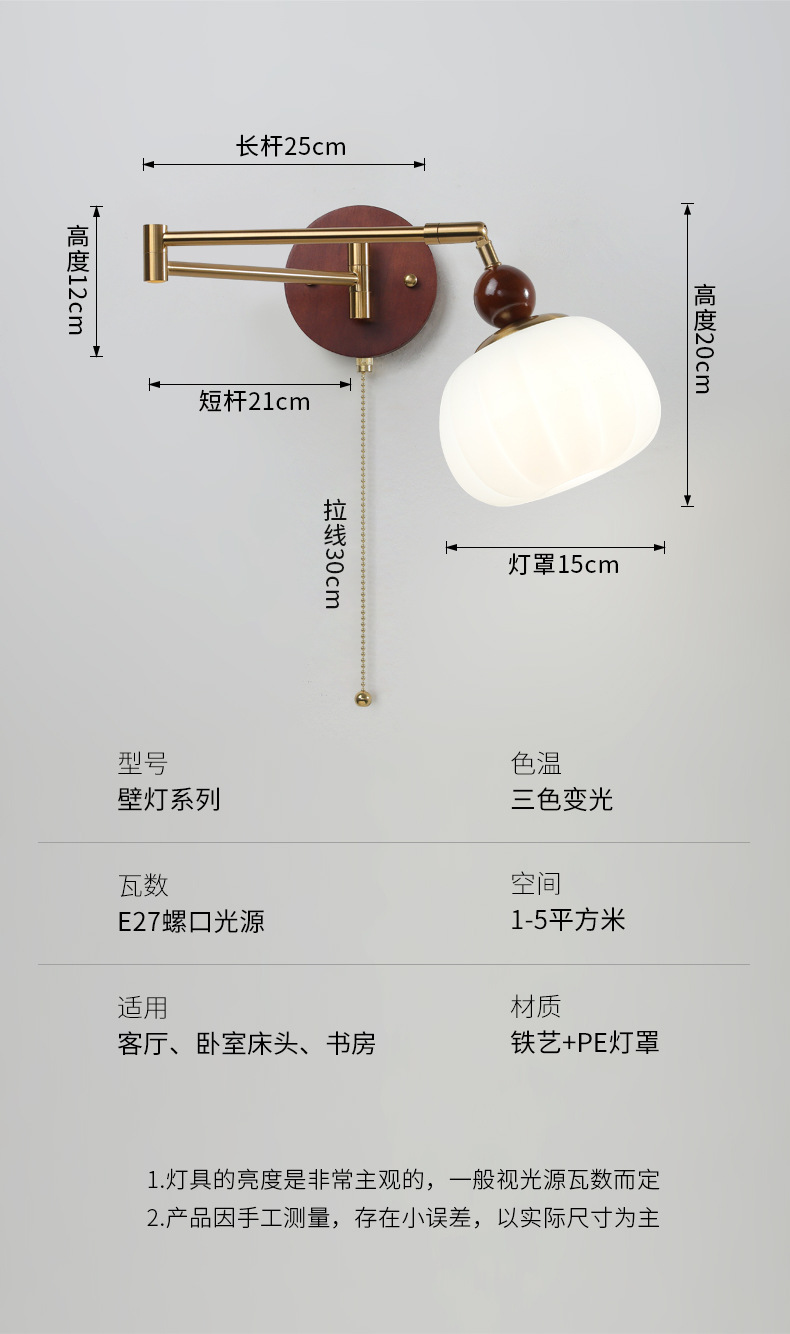 중간 고대 스타일의 침실 침대 옆 벽 램프 변위 가능한 로커 램프 크림 바람 접이식 개폐식 연구 독서 램프