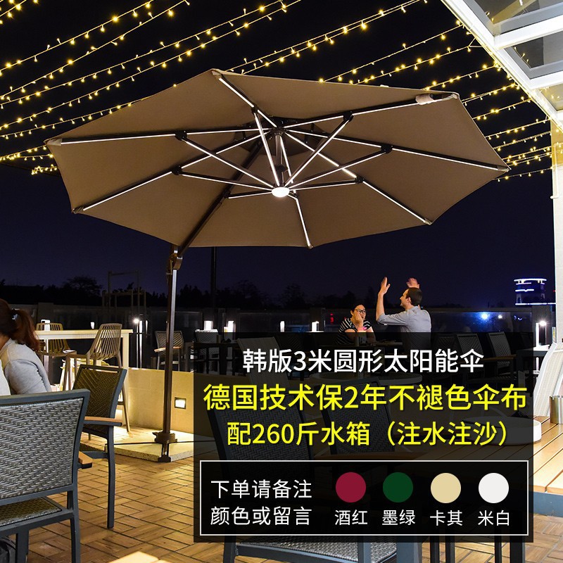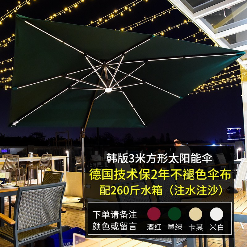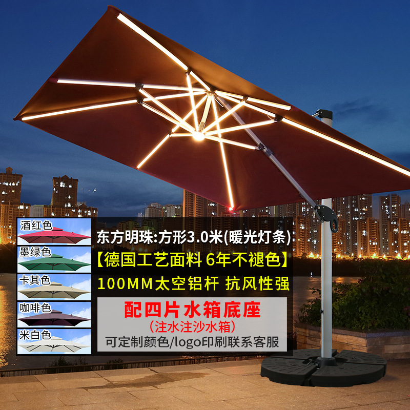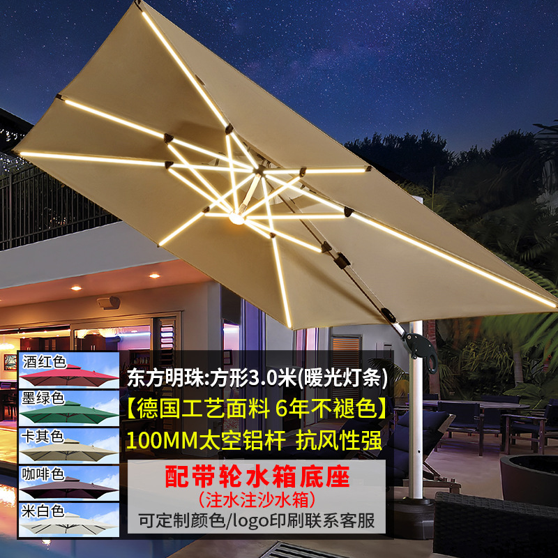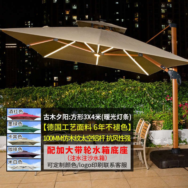 • [우드 그레인 컬러 대형 우산] 광장 3*4 m [따뜻한 빛 스트립] [물 주입 모래 주입 탱크 증가]]