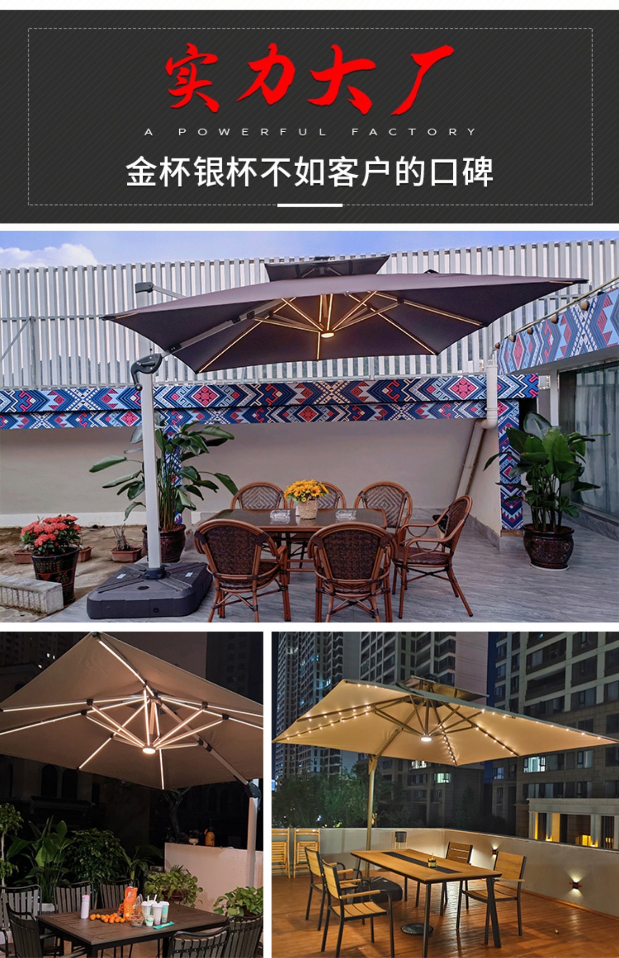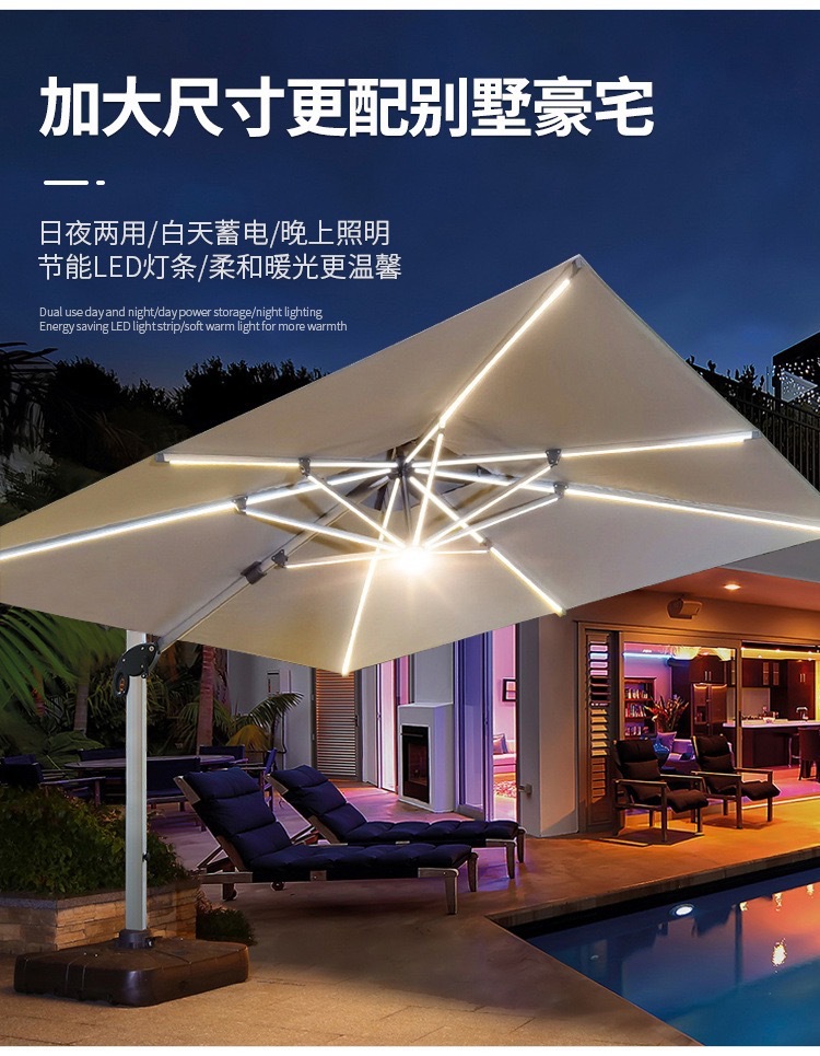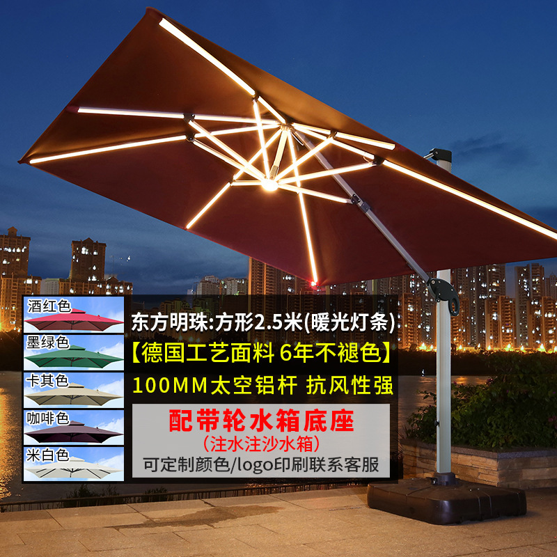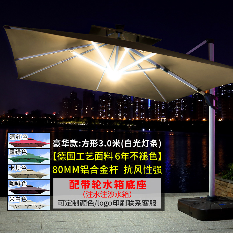 • [우드 그레인 컬러 대형 우산] 광장 3*4 m [따뜻한 빛 스트립] [물 주입 모래 주입 탱크 증가]]